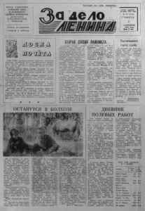 Пролетарии всех стран, соединяйтесь! ОР ГАН С Е В Е Р Н О Г О РАЙКОМА КПСС И РА ЙО ННО Г О СОВЕТА Н А РО Д НЫ Х Д Е ПУ Т А Т ОВ Н ОВ О С И Б И Р С КО Й ОБЛАСТИ Выходит но вторникам, четвергам и с у б б о т а м . Газета основана 20 мюля 1935 года № 106 ( 6 1 7 4 ) С У Б Б О Т А 5 С Е Н Т Я Б Р Я 1987 г о д а Цена 3 кон. Совет РАПО. президиум райкома профсоюза работников агропрома рассмотрели итоги социалистического соревнования колхозов, звеньев на уборке у рож а я по состоянию на 31 августа 1987 года и постановили занести на районную Доску почета: Коллектив колхоза «Наша Родина», убравший 65 про центов зерновых при урожайности 12 центнеров с гектара, скосивший 71,3 процента силосных культур при у р о ж а й ности 116 центнеров с гектара . Коллектив колхоза «Память Ленина», убравший 52 процента зерновых при урожайности 15,7 центнера с гектара, скосивший 67 процентов силосных культур при урожайности 140 центнеров с гектара. Коллектив колхоза имени К. Маркса, убравший 51 ■ процент зерновых при урожайности 12,9 центнера с гектара, скосивший 48 процентов силосных культур при урожайности 140 центнеров с гектара. Коллектив звена Н. А. Куликова из колхоза «Наша Родина», намолотивший 6968 центнеров зерна. Выработка на каждого члена звена составила 1742 центнера. Коллектив звена П. В. Закамского из колхоза имени Калинина, убравший 300 гектаров силосных и заложивший 5326 тонн зеленой массы. Выработка на комбайн составила 2663 тонны. ----------------- ★ ★ ★ ________________ ВТОРАЯСЕСИЯ РАЙСОВЕТА Состоялась вторая сессия районного Совета народных д е путатов, на которую были приглашены председатели колхозов, руководители предприятий, секретари партийных организаций, председатели групп народного контроля, члены районного ко митета народного контроля. С информацией о выполнении решений одиннадцатой сессии районного Совета девя тн а дц а то го созыва, критических за м е ч а ний, высказанных депутатами, и о работе исполкома в межсессионный период выступила секретарь исполкома Виноградова Н. В. С отчетом, о деятельности районного комитета народного контроля, выступил его председатель Иванов А. А. , с с одокладом комиссии по социалистической законности и охране общественного порядка — д е путат Соловьев Г. С. В прениях выступили председатель исполкома Чувашинского сельсов е т а Ф и л и п п п о в Ф. Е. , депутаты бухгалтер колхоза имени К- Маркса Подрядчикова А. И, ( дорожный мастер Гриц И. А. .учитель Гражданцевской восьмилетней школы А. П. Анилин, секретарь парторганизации колхоза «Борьба за мир» В. Е. Капориков, д оярка колхоза «Путь к коммунизму», председатель группы народного контроля Налимова Н, А. , прокурор района Симбирцев В. А. , председатель группы народного контроля колхоза «Восход Гончаренко Н. И. По обсуждаемому вопросу выступил председатель исполкома райсовета Федулов А. В. На сессию поступило два депутатских запроса. Первый — о продаже фруктов и комбикорма в районе, второй — по поводу строительства водопровода и магазина в селе Граж- данцево. На них были даны ответы. Сессия решила ор ганизационный вопрос. В связи с выездом за пределы района сняты о б я занности депутата районного Совета с Кормачевой Г. И. Утверждена повестка дня на третью сессию 'районного .Совета народных депутатов д в а д цатого созыва. Сессия приняла соответствующие постановления по об с у ж д а емым вопросам. Увеличивают с д а ч у х л е б а За после