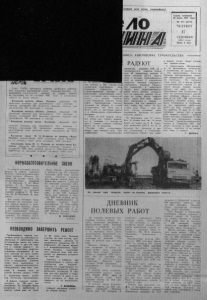 Совет РАПО , прези диум райкома профсою за р а б о т ни ков агропрома рассмотрели итоги' социалистическог о с о ревнования к о л х о з о в , зв еньев на уборк е у р о ж а я по состоянию на 14 сентября 1987 года и постановили занести на Д о с к у почета: К о л л е к т и в к о л х о з а « Н а ш а Р один ах ) , убравший 100 процентов зерновых при у р ож айн ости 12,4 центнера с гектара, скосивший 100 процентов силосных культур при урож айности 109 центнеров с гектара. К о л л е к т и в к о л х о з а « П а м я т ь Л е н и н а » , убравший 100 процентов зерновых при ур ож а й н о сти 15,2 центнера с гектара, скосивший 95 ,9 процента силосных культур при урож айн ости 158 центнеров с гектара . К о л л е к т и в к о л х о з а им е н и К а л и н и н а , убравший 90 ,3 процента зерновых при урож айн ости 10,1 центнера с Гектара, скосивший 100 процентов силрсных культур выполнивший план п р о д аж и зерна г о с у д а р с т в у на 101 5 процента. Г а з е т а о с н о в а н а 20 и ю л я 1935 г о д а № 111 (6179) ЧЕТВЕРГ 17 СЕ НТ ЯБ Р Я г - 1УВ7 г о д а Цена 8 коп. Л ОСА: З А В Е Р ШЕ Н И Е СТРОИТЕЛЬ СТВА РАДУЮТ К 18 а в г у с т а т о к п о л о с ы в 2 5 0 м е т р о в б ь г п о п Н ф и ь ю ; п о д г о т о в л е н п о д п о к р ы т и е а с ф а л ь т о м , н о к щ ф а л ь т и р о в а н и ю м а с т е р а н е п р и с т у п а л и : о т с у т с т в о в а л а о с н о в н а я с о с т а в н а я ч а с т ь а с ф а л ь т н о й м а с с ы — м е л к и й щ е б е н ь - о т с е в , О ж и д а н и е с н и з и л о т е м п ы р а б о т . П р и в л е ч е н н у ю т е х н и к у о т о з в а л и н а у б о р к у . А о т с е в а п о - п р е ж н е м у н е т . Н е т у е г о в Д С У - 2 , н е т в н а с т о я щ е е в р е м я и в о б ъ е д и н е н и и « Н о в о с и б и р с к - а в т о д о р » . — Е с л и на э т о й н е д е л е п о с т у п и т о т с е в , м ы п о л о с у д о д е л а е м , а п о з д н е е — п о г о д а н е д а с т , — г о в р и т г л а в н ы й и н ж е н е р Д С У - 2 А . А . Б у з е н и у с . П о г о д а у ж е и с п о р т и л а с ь , д о ж д и и д у т к а ж д ы й д е н ь . О н и с д е р ж и в а ю т с т р о и т е л ь с т в о ! р у л е ж н о й д о р о ж к и ( 1 4 0 м ) и п а с с а ж и р с к о г о п е р р о н а п л о щ а д ь ю 60 к в а д р а т н ы х м е т р о в . В т а к и х у с л о в и я х Д С У - 2 п р и с т у п и л о к у к л а д к е ж е л е з о б е т о н н ы х п л и т на д о р о г е . С т е х н о л о г и е й п о к р ы т и я п л и т а м и д о р о ж н и к и с т о л к н у л и с ь в п е р в ы е . П р о ц е с с Это н е п р о с т о й и н е б ы с т р ы й . П о с л е в с е х п о д г о т о в и т е л ь н ы х р а б о т п л и т ы д о л ж н ы у к л а д ы в а т ь с я на и д е а л ь н о р о в н у ю « п о д у ш к у » и з п е с к а , п о т о м с в а р и в а ю т с я , з а т е м э т о т ш о в з а л и в а е т с я р а с т в о р о м и с в е р х у — б и т у м о м . В с е э т о д е л а е т с я д л я т о г о , ч т о б ы п о д п л и т ы н е п р о н и к а л а в о д а . В о д а — в р а г д о р о г и . С е й ч а с о с н о в н ы е с и л ы у п р а в л е н и я б р о ш е н ы н а с т р о и т е л ь с т в о д о р о г и . Н а к а л е н д а р е у ж е 17 с е н т я б р я . А о т с е в а в с е н е т . И к о г д а б у д е т н е з н а ю т н и Е. В. Г р и г о р о в , н а ч а л ь н и к Д С У - 2 , н и А , А . Б у з е н и у с . И х п о м ы с л ы и ч а я н и я у с т р е м л е н ы к « Н о в о с и б и - р с к а в т о д о р у » . Т о л ь к о т а м з н а ю т и в е д а ю т к о г д а б у д е т о т п р а в л е н щ е б е н ь - о т с е в . С н а ч а л ь н и к о м о б ъ е д и н е н э л А . И . Б у л г а к о в ы м п о г о в о р и т ь , к с о ж а л е н и ю , н е у д а л о с ь , а в о г с е г о з а м е с т и т е л е м А л е к с е е м И л ь и ч е м К а й г о р о д ц е в ы м к о р о т к и й т е л е ф о н н ы й р а з г о в о р в с е ж е с о с т о я л с я . И з к о т о р о г о с т а л о я с н о , ч т о в к о н ц е д о р о ж н о - с т р о и т е л ь н о 
