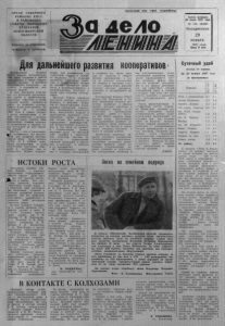 ОР ГАН С Е В Е Р НОГ О РАЙКОМА КПСС И РАЙОННОГ О СОВЕТЫ НА Р О Д НЫХ ДЕПУТАТ ОВ НОВ ОС ИБ И Р С К О Й ОБЛАСТИ В ы х о д и т по в т о р н и к а м , ч е т в е р г а м и с у б б о т а м . Пролетарии всех стран, соединяйтесь! А О А О Газета основана 20 июля 1935 г од а № 141 (6 2 0 9 ) В о с к р е с е н ь е 2 9 НОЯБ Р Я 1987 г о д а Цена 3 коп. Для дальнейшего развития кооперативов• Центральный Комитет КПСС принял постановление «Об опыте создания и работы кооперативов в сфере общественного питания и бытового обслуживания населения, з а готовки и переработки вторичного сырья». В этом документе отмеча ется, что выполняя постановления партии и пра вительства, партийные, советские и х о зя й ственные органы развернули работу по развитию кооперативных форм деятельности. По состоянию на 1 октября 1987 года в стране создано 8 тыся ч кооперативов с общей численностью I зан яты х более 88 тысяч человек. Ими произведено товаров народного потребления и оказано услуг населению на 134 миллиона рублей. Вместе с тем в постановлении у к а зы в а е т с я , что во зможности для развития коопера-, тинных-* форм труда используется не в полной мере. Вклад кооперативов в д е л о , , обеспечения на селения това-'.' рами и услугами еще не значителен. Крайне неравномерно они развиваются по территории страны и особенно медленно — в сельской местности. Отдельные советские и хозяйственные органы на местах проявляют инертность и безынициативность, с предубеждением относятся к самой идее создания кооперативов. Местные Советы народных депутатов нередко допускают волокиту в решении вопросов по предоставлению кооперативам помещений, укр еп лению материально-технической базы, обеспечению сырьем и транспортом, нарушают у с т а новленные сроки регистрации Устава. Нет влияния на онределение производственной направленности кооперативов, в том числе по ремонту и строител ьству жилищ, оказанию у слуг по обустройству садовых и приусадебных участков, закуп ки из- л и ш к о в сельскохозяйственной продукции у на селения, в колхозах и совхозах и ее переработке. Не выполняются требования о создании кооперативов в основном из числа г р аж дан, не зан ятых в общественном производстве, а т а к же по вып у ску кооперативами товаров и оказанию услуг з а счет привлечения дополнительных местных продовольственных и материальных ресурсов. Центральный Комитет КПСС обязал ЦК Компартий и Советы Министров союзных республик, крайкомы и обкомы партий, местные советские и хозяйственные органы в соответствии с требованиями июньского ( 1 9 8 7 г.) Пленума ЦК КПСС принять решительные меры, обеспечивающие дальнейшее развитие кооперативных форм д е я те ль н о сти, рост их в к л а д а в ув ели чение товарных ресурсов и услуг в каждом районе. Необходимо коренным 061- разом улучшить руководство кооперативным движением, оперативно р а з р еш а т ь возникающие вопросы, строго соблюдать установленный порядок создания и д е я те ль н о сти кооперативов, разви ти я в них демократических начал, соблюдения принципов социальной справедливости. Осо-' бое внимание КИкно обр атить на развитие кооперативов в тех сф ер ах д е я те ль н о сти, где существует неудовлетворенный спрос в товарах и услугах. При этом они д о л жны ire зам ен ять , а доцолПять сеть государственных предприятий. Перед министерствами и ведомствами СССР . Сов е т а ми Министров союзных р е с публик по