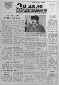 ОРГАН СЕ ВЕ Р НОГ О РАЙКОМА КПСС И РАЙОННОГО СОВЕТЫ НАРОДНЫХ ДЕПУТАТОВ НОВОСИБ ИР СКОЙ ОБЛАСТИ Выходит но вторникам, четвергам и субботам. Пролетарии всех стран, соединяйтесь! л е л о Газета о снована 20 ию ля 1935 года № 3 ( 6 2 2 7 ) Ч Е Т В Е Р Г 7 ЯНВАРЯ 1 9 8 8 г о д а Цена 3 коп. ПОБЕДИТЕЛИ С М О Т Р А -КОНКУРСА Как известно, в районе был объявлен смотр-конкурс на постановку и хранение с ел ь скохозяйственной техники. Его це ль — улучшить организаторскую работу по обеспечению сохранности техники, сократить за т р а ты на ее содержание, продлить срок службы, повысить инженерную к ул ь туру производства. Совет РАПО и президиум рай кома профсоюза работников агропрома рассмотрели итоги смотра-конкурса и постановили присудить первое место колхозу «П амять Л е пина» (гл. иияюнер Н. А. Герлиц, зав. машинным двором П. К. Васильев). В кол хозе имеются огороженный машинный двор, ангар для зеон о зы х крмбайнов, т еп л а я стоянка^ для тракторов и а в то мобилей, ремонтная мастерская, квасный уголок. Хороню работает звено по ремонту техники. Техника хранится согласно ГОСТу. Колхоз получает из фонда РАПО трактор Т-16. Реком ен довано правлению кол хо за выделить 150 рублей для поощрения инженерной службы и механизаторов. Второе место присуждено колхозу имени М Горького (гл. инженер И. И. Лещинский, зав. машинным двором В. М. Демьянов). В колхозе машинный двор огорожен, техника поставлена по всем правилам, есть, теплый гараж, .мастерская, типовая запра-< вочная станция, красный уголок. Колхозу выделен из фонда РАПО сварочный трансформатор. Рекомендовано выделить сто рублей д л я поощрения инженерной службы и механизаторов. Тре тье место з а н я л колхоз « З а в е т ы Ильича» (исполняющий обязанности главного инженера В. С. Черноз, зав. машинным двором А. А. Еду- тенко). В колхозе построен ангар для зерновых и силосных комбайнов, им еется г а раж, типовая зап р авоч ная станция. Строится новый м ашинный двор с разгрузочной площадкой. В знак поощрения колхозу вы д ел я е т с я заточный станок. Рекомендовано правлению колхоза выдать 75 рублей д л и премирования инженерной сл ужбы и механизаторов. Отмечена положительная работа по постановке сельскохозяйственной техники колхозов «Н аша Родина» и имени XXII с ъ е з д а КПСС. Для н у ж д населения В районном управл ении бытового обслуживания есть такое подразделение, как л е соучасток . Его небольшой коллектив з ан ят в основном заготовкой и вывозкой дров для населения. Непосредственно в д еляне находятся з а готовители В. К. Кайгородов, В. Г. Иванов и М. И. Коновалов. Вывозят дрова т р ак тори сты В. Л. Егоров и Н. Ф. Косс, шоферы В. Е. Чалков и М. К. Кайгородов. Тр ак то ристам, чтобы успеть сходить в деляну , вернуться и р а з гру зи т ь с я у заказчиков , приходится выходить на работу в шесть ут ра. ' Как известно, жители н а ших отдаленных сел и д е р е вень смотрят только первую программу Централ ьного т е левидения. Дел а е тс я это с помощью установки «Экран». Исключение теперь будет составлять поселок л е с о р у бов, где в канун нового года Всего за прошлый год н а селению было доставлено 2 1 0 0 кубометров дров, что в полтора р а з а больше 1 986 года. Нынче план ируется до в 'е ащ заготовку дров до 2 5 0 0 кубометров. Инвалидам войны и всем, кто имеет право на льготы, дрова продаются со скидкой на 5 0 процентов. Лесоучасток зан им ается и заготовкой деловой древесины. В п
