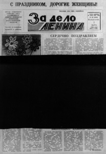 С П РА ЗД Н И К О М , ДОРОГИЕ Ж ЕНЩ ИНЫ ! ОР ГАН С Е В Е Р Н О Г О Р АЙК ОМА КПСС И Р А ЙОННОГ О СОВЕТА Н А Р О Д НЫХ Д Е ПУ Т А Т ОВ Н О В О С И Б И Р С К О Й ОБЛАСТИ Пролетарии всех стран, соединяйтесь! 7 1 З а д е л о Г а з е т а о с н о в а н а 20 и ю л я 1935 г о д а № 2 9 (6 2 5 3 ) П о н е д е л ь н и к 7 МАРТА 1988 года Цена 3 коп. Выходит по вторникам, четвергам и с у б б о т а м . ш=/1ЕШШШгЖ СЕРДЕЧНО ПОЗДРАВЛЯЕМ Дороги е женщины! Районный комитет Ком. муштстической партии Советского Союза, исполком районного Совета народных депутатов, р ай ком комсомола сердечно поздравляют Вас с Международным женским днем 8 Марта — днем интернациональной солидарности тр у д ящ и х с я женщин план еты. Это один и з самых светлых и радостных наших праздников. Вместе с весной он приходит в к аж ды й трудовой коллектив, в каждую семью. В нашей с т р а н е праздник 8 Марта стал символом глубокого ув аж ения к женщине, ее равноправного положения в социзлистиполитики. Многое д е л а е т с я в нашей с т р а н е для со зд ан и я условий; позволяющих сочетать работу на производстве с воспитанием детей. На отеческую заботу партии и п р а в и т е л ь ства советс кие женщины отвечают с а м о о т в е р женным трудом. Они настойчиво борются з а успешное выполнение заданий п я ' илетки , позышение эффективности производства и качества работы, бережли вость и экономию, укреп ление тнудовой и производственной дисциплины, вносят весомый в к л а д в перестройку. Красным днем к а л е н д а р я д л я всего советского народа стал о 8 Марта. З а любовь г в е н н ы и п е р и о д в своей жизни: перестройка экономики, упра влени я, мышления, перестройка отношения к делу , ко тор ая началась два года н а зад XXVII с ъ е з дом партии, вступила в новый этап. Теперь от каждого из нас требуется дело, честная и добросовестная работа. И в первых ря дах , к ак и во все времена, идут наши женщины. Их д есятки, во з г л а вл яю щих соревнование з а выполнение государств енных планов двен адцатой пятилетки, со ц иалис ти че ских обязатель-, ств. И в ч исле пра вофланговых — работники животноводства — доярки , гелятни дого и з нас учитель добрый наставник, мудрый советчик,, б ескоры с тный старш и й товарищ. В а п р е ле пройдет и пленум р ай к о ма партии по этому ж е вопросу. Учительство района будет не т олько д е р ж а т ь эк з ам ен перед партией, но и четко определит путь, по которому ему и д т и дальше . 8 М ар та — пра здник н а ших матерей , жен, сестер. Им мы о б яза ны своей ж и з нью, любовью, дружбой^ Обязаны все, о б яза ны всем. И поэтому земной поклон з а м , дорогие. Коллектив Верх-Краснояр- ского отделени я связи небольшой — ч етыре монтера, три почтальона, уборщица, но вы п о лн яе т важное дело: обеспечивает население в семи усл у гами связи. А руководит этим участком вот уже почти д в а д ц а т ь лет Мария Денисовна Леонова. На нее, к а к на н а ч ал ь н и к а отделения, л ож и т с я ответственность з а выполнение планов, и она добросовестно сп р а вл яе тс я со своими обязанностями. Отдел ение постоянно среди передовиков социалистического соревнования, не раз з а воевывало переходящее К р а сное з н а м я РУСа. В прошедшие два м е с я ц а поработали т а к ж е успешно. В я н в а р е план по тарифным доходам был выполнен на 1 0 6 , 6 п р о цента, в ф е в р а л е — на 1 0 0 , 9 процента. Кроме того, н а с е лению оказываю тс я дополнител ь ны е услуги . З а д а н и е по этому виду у сл у г в ф е в р а л е т а кж е было в