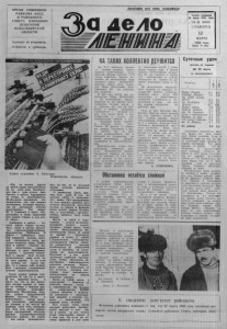 OPFAH СЕВЕРНОГО РАЙКОМА КПСС И РАЙОННОГО СОВЕТА НАРОДНЫХ ДЕПУТАТОВ НОВОСИБИРСКОЙ ОБЛАСТИ Пролетарии всех стран, соединяйтесь! З а д е л о иГазета основана 20 нюпя 1935 года № 31 ( 6 2 5 5 ) СУББОТА 1 2 МАРТА 1988 года Цена 3 коп. Выходит по вторникам, четвергам и субботам. 11 1 цmu Плакат художника А. Пастухова Издательству <Шлакат>> НАВСТРЕЧУ XIX 8CgCO<63HO^ ПАРТКОНФЕРЕНЦИЙ «Мы не можем, просто не имеем права расслабляться ни на один день. Наоборот, изо дня в день нужно прибавлять в работе, наращивать ее темпы, ее интенсивность. Необходимо выдержать это напряжение, эти, как говорят космонавты, большие перегрузки на начальном отрезке перестройки». Так пишет М. С. Горбачев в книге «Перестройка и новое мышление для нашей страны и для всего мира». Прибавить в работе — бо льше давать стране молока, мяса, зерна и других продуктов I сельскохозяйственного производства. Прибавить ‘в работе — добиваться высокой жирности молока, высокой упитанности скота, высокого качества зерна. Прибавить в работе — строить быстро, качественно, сдавать объекты в срок. Прибавить в работе — каждому относиться к своему делу по-коммунистически, даже если ты не член партии. А уж если ты носишь это гордое звание, то к самому себе должно быть утроенное, учетверенное чувство ответственности. Среди доярок района коммунистов не так уж и много. И тем приятнее весть: в числе тех, кто за два минувших месяца надоил от коровы по четыре с лишним центнера молока коммунист Праскс&ья Михайловна Ков- ган, доярка кррдоновской фермы колхоза «Путь к коммунизму». Среди десятков скотников, работающих на откорме и на нагуле молодняка, тоже есть коммунисты. Они есть среди передовиков предприятий, обслуживающих агропромышленный комплекс района. Их имена — как имена правофланговых, на них, на их трудовой подвиг должны равняться остальные. А равняться, брать прил мер, есть кому. В том же колхозе «Путь к коммунизму» менее 2 4 4 килограммов, то есть меньше среднего колхозного показателя, получили молока за январь и февраль более десяти доярок. Колебания в полученных среднесуточных привесах тоже очень велики.’ Вести за собой в перестройке — думать по-новому, по-новому решать задачи, которые ставит перед нами жизнь. Продуктивность животноводства низка. И одной из причин |— недостаток кормов и летом, и зимой. Следовательно, коммунисты- руководители бригад, звеньев. специалисты — должны позаботиться об обновлении лугов и пастбищ, об увеличении их продуктивности. Подумать и о том, какие культуры наиболее выгодно сеять, чтобы, обеспечить общественное животноводство ^сиажом, силосощ. Может, ради этого и отказаться от тех культур, которые последние годы «(подводили» земледельцев, не давали должного урожая. Вести за собой, вести в перестройку — бороться за качество, прежде всего — в строительстве. Не позооно ли коммунистам МПМК сдавать объекты с десятками недоделок, с протекающей крышей, с серыми стенами, с шершавыми, как коровий язык, полами? Нет, только тогда, когда каждый* коммунист проник-' нется мыслью о том, чтр он в ответе за все, только тогда перестройка придет и в наш дом. Но ее-то мы должны привести в дом сами. НАТАКИХ КОЛЛЕКТИВ ДЕРЖИТСЯ По 2 1 , 5 центнера молока от коровы решили * нынче надоить животноводы оста- нинской ф ермы колхоза «VII съ е з д Советов», З а д а ч а н е л е г к а я , но выполнимая: ведь т р у д ят с я зд е с ь 