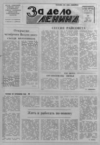 ОРГАН СЕВЕРНОГО РАЙКОМА КПСС И РАЙОННОГО СОВЕТА НАРОДНЫХ ДЕПУТАТОВ НОВОСИБИ РСКОЙ ОБЛАСТИ Выходит по вторникам, четвергам и субботам. Пролетарии в с е х с т р аи , с о е дин яйт е сь ! д е л о Газета основана Ю мюпя 1035 года № 37 (6261) СУББОТА 26 МАРТА 1988 года Цена 3 коп. О т к р ы т и е четвёртого Всесоюзного съ е зд а колхозников О существляемая под ру ководством партии перестройка направлен а д а благо народа , каждого советского человека. В достижении этой великой цели особо ответственна роль крестьянства страны, тружеников агропромышленного комплекса. Колхозы — неотъ ем лемая составная часть социалистический системы. И, . .в о п л о щ а я в жизнь ленинские идеи кооперации на современном этапе, т р у ж е ники села ставят перед собой задачу: решительно прибавить в работе, с максимальной энергией бороться за проведение а г р а р ной ночи'пЛ КПСС. С таким настроем собрались в Москве полномочные представители советского кпестьянства. 23 м арта в Кремлевском Дворце съездов начал работу чет- Beptbift Всесоюзный с ъ е з д колхозников. Аплодисментами вст р е т и ли д елегаты и гости с ъ е з да товарищей Горбачева М. с. . Воротникова В. И . , Громыко А. А. , Лигачева В. К. , Никонова В. П. , Рыж ков а Н. И. . Слюнько- ва Н. Н. Соломенцева С. , Чебпикова В. М . , йДепбиикого В. В . . Я к о в л е ва А. И Демичева П. Н . , Долгих В. И. , Р а з у м о в с к о го Г. п . , Соловьева Ю. Ф Талы зи на Н. В. , Язова Д. Т . , Б акл ан ов а О. Д . , Бирюкову А. П. , Лукьяно- | ва А. И . , Медведева В. А. По поручению союзного совета колхозников съ е з д открыл председатель кол хоза « 4 0 лет Октября» Панфиловского района Т ал ды-Курганской области К а захской ССР дважды Герой Социалистического Труда Н. И. Головацкий. ПоЛде и з б р а н и я руково дящих органов съ е з д а была у тверждена повестка дня. Делег аты обсудят вопрос об ускорении социально- экономического разви ти я колхозов в новых услови ях хозяйствован ия и д ем о к р а тизации управления, проект Закон а о кооперации в СССР и измен ения в Примерном у ставе колхоза, изберут союзный совет Колхозов. На утреннем заседании съ е з д а выступил Генера- льный секр е та р ь ЦК КПСС1 М. С. Горбачев. Его вы ступление было выслушан о с большим вниманием и неоднократно сопровождалось продолжительными аплодисментами. Всесоюзный съ е зд кол хозников продолжает свою работу. (ТАСС) СЕССИЯ РАЙСОВЕТА 22 м ар т а состоялась четв ер тая сессия Северного районного Совета народных депутатов двадцатого созыва. В повестку дня сессии были вынесены вопросы: «О выборах в районный Совет народных депутатов вместо выбывшего по избиратель ному округу № 3 8 » , «Информация о выполнении решений третьей сессии районного Совета народных д епу татов и о работе исполкома в Межсессионный период», «О мерах но улучшению торгового и бытового обслуживания населения района», «Отчет постоянной комиссии по социалистической законности и охране общественного пор я дк а » , «Отчет! директора Северного лесхоза по выполнению план а социального и экономического разви ти я рай она». Б ы л обсужден ор ганизационный вопрос и утвержд ен а повестка дня на п я т у ю сессию райсовета. В связи с выездом з а пределы района д еп у тата рай-* онного Совета по и зби р ател ь ному округу № 38, там состоялись выборы нового депутата. Им избран главный агроном колхоза «Бор ьб а за мир» Н. М. Буньков. Сессия утвердила протокол мандатной комиссии, Н. М. Б