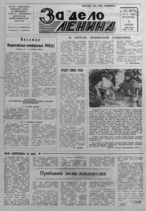ОР ГАН СЕ В Е Р НОГ О Р АЙКОМА КПСС И Р АЙОННОГ О СОВЕТА НА Р ОДНЫХ Д Е ПУТАТ ОВ НОВ ОСИБ И Р С КОЙ ОБЛАСТИ Выходит по вторникам, четвергам и с у б б о т ам. П р о л е т а е т всех стран, сеедяняйтесь! Газета о сн о в а н а 20 июля 1935 го д а № 41 (6 2 6 5 ) В Т О Р Н И К 5 А П Р Е Л Я 1988 г о д а Цена 3 коп. Во с ь ма я Всероссийская конференция РКП(б) Москва. 2 — 4 декабря 191 9 г. Конференция проходила в обстановке побед Советской страны над внутренней контрреволюцией и иностранными интервентами. «Мы созываем теперь конференцию в связи со съездом Советов в такой момент ,—• говорил В. И. Ленин ,— когда нам удалось достигнуть гигантского ул учшения ‘ на фронтах и когда мы уверены, что стоим накануне крупнейшего перелома к лучшему как в междуна- - родном положении, т ак и в отношении военном, так же и в связи со всем нашим внутренним строительством». На конференции присутствовало 45 делегатов с р ешающим и 73 с совещательным голосом. Порядок дня: 1) Политический и организационный докл ад ЦК; 2) Международное положение; 3) Вопросы порядка дня VII Всероссийского с ъ е з д а Советов (обсуждался лишь вопрос о советском строительстве); 4) О Советской власти на Украине; 5) Устав партии; 6) О работе среди новых членов партии, вступивших в нее в ' п а р т и й н у ю неделю; 7) О топливном кризисе. Работой конференции ру ководил В. И. Ленин. Он выступил с речью при открытии конференции с политическим докладом ЦК РКП.(б), с речью о Советской власти на Украине, с заключительным словом по докладу ЦК и по вопросу о Советской власти на У кр а ине, написал проект резо люции о международной политике. Делег аты конференции! единодушно одобрили политическую линию и организационную д еятельн о сть ‘Центрального Комитета партии. ИЗ УСТАВА РОССИЙСКОЙ КОММУНИСТИЧЕСКОЙ п а р т и и (БОЛЬШЕВИКОВ) 1. Членом партии счита ет)ся всякий^ признающий программу партии, работающий в одной из ее организаций, подчиняющийся пос- ‘^та н овл е ви ям партии и уп л а чивающий членские взносы. 1. О членах партии ' ^ 2. Новые члены принимаются местными партийными комитетами из числа кандидатов и утверждаются ближайшим общим собранием данной организации. IX. О партийных ячейках 47. Основой партийной организации я в л яе т с я партийная ячейка. Ячейка у твержд ается уездным, го- оодским или районным комитетами в составе не менее 3 членов. 48 . Ячейка я в л я е т с я орг ан изац ией , связы в ающ ей рабочие и крестьянские массы с руководящим органом партии в данной местности. З ад ач ей ячейки являетЬя: 1) проведение в м ассах партийных лозунгов и решений; 2) привлечение новых членов; 3) содействие местному комитету в его организационной и агитационной работе; 4) активное участие, к ак партийного •органа, в экономической и политической жизни стра-; ны. 49. Дл я ведения т е к у щей рабофы ячейка избирает бюро на 1 м есяц из 3 членов. 16 А П Р Е Л Я - Л Е Н И Н С К И Й СУББОТНИК По инициативе передовых предприятий Москвы, Ленинграда, других городов страны 16 ап р ел я состоится коммунистический субботник в честь 118-й годовщины со дня рождения В. И. Ленина. По этому поводу создан районный штаб. Возглавляет его второй секр е та р ь р а й кома партии В. М. Михай- лец. Зам е сти тел ь начальника штаба — Г. Д. Маляревич, заместитель предеедателя райисполкома. В состав штаба входят И. М. Гламаздин — заведующий отделом пропаганды и агитации рай кома КПСС, Г. И. Меренкова — секретарь рай