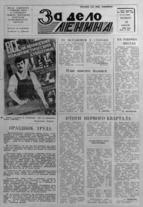 ОРГАН С Е В Е РН ОГ О РАЙКОМА КПСС И РАЙОННОГО СОВЕТА НАРОДНЫХ ДЕПУТАТОВ Н ОВ ОС ИБ ИР С КО Й ОБЛАСТИ Выходит по вторникам, четвергам и с уб б о т ам. Пролетарии всех стран, соединяйтесь! д е л о Газета основана 20 июля 1935 года № 4 5 (62 6 9 ) ЧЕТВЕРГ 1 4 А П Р Е Л Я 1988 года Цена 3 коп. Плакат художника Е. Родионовой «Все на коммунистический субботник». Издательство «Плакат» ПРАЗДНИК ТРУДА «Коммунистические субботники» именно потому имеют громадное историческое значение, что они показывают нам сознательный и добровольный почин рабочих в развитии производительности труда, в • переходе к .новой трудовой дисциплине, в творчестве социалистических условий хозяйства и жизни»,— писал В. И. Ленин в своей статье «Великий почин». 6 9 л ет прошло с тех пор, к а к были написаны эти строки и 18 из них отмечены проведением по всей стран е юбилейных ленинских субботников. 16 ап р е л я м ы выйдем на (Очередной праздник труда. Посильный вклад в результаты субботника вносят труженики нашего района как личным участием, так и средствами, заработанными на них. По сообщениям оперативных штабов по подготовке и руководству в предстоящем субботнике примет участие 6 9 0 0 человек. На всех предприятиях и в организациях определен фронт работ, произведена расстановка наличных сил. Из общего количества людей, которые б у дут заняты на субботнике, 2 4 0 0 встанут на свои рабочие места. В этот день планируется произвести промышленной продукции более чем на 17 тысяч рублей. Строители в 1 угот день будут ваняты на пусковых объектах. Часть людей выйдет на благоустройство территории предприятий, будет вестись работа и по наведению порядка в селах. Ответственный период сейчас у работников агропрома. Завершается зимовка скота, сложность с кормами, не за горами весенние полевые работы — это все и определит занятость тружеников села на субботнике. В этот день созданным к ол л ек тив ам интенсивного труда необходимо, навернЬе, еще р а з проверить -комплектность и готовность техники, вы в е р и т ь /технологические к ар ты С е л ь скохозяйственной продукции, в общей сложности, в день субботника будет произведен о на 2 2 тысячи рублей. По результатам субботников мы постоянно констатируем факт, что повсеместно .была (достигнута высокая производительность труда. Задача, которую мы должны поставить перед собой, — высокую производительность сделать нормой каждого дня. Это, в условиях перехода на хозяйственный расчет,— требование времени. НЕ ОСТАНЕМСЯ В С Т О Р О Н Е У нас на хлебоприемном пункте работает 38 человек, но на субботник выйдут 30: остальные, в основном, _к этому дню не вернутся из командировок. Мы определили, что 15 человек будут работать на своих обычных местах. Многие рабочие предприятия з а й мутся благоустройством т е р ритории. Думаем, что начнем залива ть фундамент под новый гараж . В коллективе сложилась 16 ап р ел я все советские люди выйдут на коммунистич е ск и й субботник. Споим ударным трудом они отметят 118-ю годовщину со дня рождения Владимира Ильича Ленина. Н аизысшие пока за-* тели коллективного труда в этот день будут лучшим вкладом в дело перестройки. В Северном СПТУ-91 16 апреля — обычный день занятий . Но после уроков у ч ащ и м с я njpef/гшит выполнить большой объем работ. Почти все они связаны с благоус тройством территории училища. Юноши будут убирать старые, изломанные тротуары и дел а