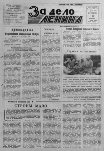 ОРГАН СЕ ВЕР НОГ О РАЙКОМА КПСС И РАЙОННОГО СОВЕТА НАРОДНЫХ ДЕПУТАТОВ Н О В ОС ИБ И Р С К О Й ОБЛАСТИ Выходит но вторникам, четвергам и субботам. Пролетарии всех стран, соединяйтесь! Газета основана 20 июля 1935 года № 50 (6274) ВТОРНИК 26 АП Р Е Л Я 1988 года Цена 3 коп. ОДИННАДЦАТАЯ Всероссийская конференция РКП(б) Москва. 19 — 22 декабря 1921 г. На конф ер енц ии присутствовало 125 делегатов с реш ающ им голосом и 116 с совещательным. Порядок дня: 1) Очередные з ад ач и п а р ти и в с в я зи с восстановлением х о з я й ства; 2) Промышленность; 3) Сельское хозяйство; 4) Кооперация; ^5) П р едв арител ь н ы е итоги чистки п а р тии; 6) Вопросы Коммунистического И нтернацион ала . И З РЕЗОЛЮЦИИ КОНФЕРЕНЦИИ ОЧЕРЕДНЫЕ ЗАДАЧИ ПАРТИИ В СВЯЗИ С ВОССТАНОВЛЕНИЕМ ХОЗЯЙСТВА 1. Считая , что Советская в л асть вполне своевременно пе р еш ла к новой экономической политике и что пра вильность этой политики вполне подтверждена имею щ им с я оживлением х о з я й ственного оборота, к о н ф е р ен ция вполне одобряет новую экон оми че скую п о л и т и к у и, в частности, н а к а з Совнаркома от 9 августа с. г. 5. Переход от р азв ер стки к продналогу обновил и у к р е п и л союз про л е т ар и а т а и крестьянства . Упрочение этого союза — основы Советской власти — т р е бует дальнейше го о ж и в ления, облегч ения и упроч е н и я обмена между про мышленностью и з е м л е делием. Этого требует т а к ж е на стоятельно необходимый переход к р естьянства от потребительского тип а к производственному. 6. П ри н и м а я во внимани е что сельское хозяйство продолжает п е р еж и в а т ь т я ж е лый кризи с и что н а н е го надвигае тс я угроза нового н е у р ож а я , к о н ф е р е н ц и я п р и з н а е т у с и л е н н у ю , работу па р ти и и государств енной власти над поднятием сельского х о зя й с т в а з а д а чей огромного зн а чен и я , не менее важн ой , чем работа в области промышленного строительства. Р абота п а р тии в области сельского хо з я й с т в а д о л ж н а иметь в своей основе: а) не зыблемое сохран ение н а ц и о н ал и з ац и и земли; б) у п р о ч е н ! ^ к р е с т ь я н с к о го землепользования ; в) предоставления к р е с т ь ян ск о м у населению с в о боды выбора форм з е м л е пользования; г) создание всех условий, необходимых д л я п р а в и л ь ного существования и р а з ви ти я крестьянского х о з я й ства; д) п одд ерж к а всеми во з м ожными при настоящем состоянии государствен! Лих средств мерами мал ом ощ н ы х к р е с т ь я н с к и х хо зяйств (в первую очередь демоб и ли зов ан ны х к р а сн о ар м ей цев) путем предос та вления л ь г о тн ы х условий кр едита, о тпу ск а с ел ь ск о х о з я й с т в ен ного и н в ен таря и т. п. и обл е г ч ен и я налогового бремени. Необходимо энергично вов л е к а т ь малоимущие и пол уп рол е т ар ски е эл ем ен ты в сельскохозяйственную ко операцию к а к в ин тересах организрванной хо зя й с т в ен ной взаимопомощи, т а к и д л я сп лоч ен ия их против возможног о з а с и л ь я к у л а ц к и х элементов. ИНТЕРВЬЮ НА АКТУАЛЬНУЮ ТЕУМ ♦ Мастера своего дела Подходит к концу з им о в к а скота. Трудный и н а п р я ж ен н ы й этот период осложн я е т с я н е х в а т к о й кормов. Но там , где животноводы используют малейшую возможность д л я ул у чш ен и я дел, п о к а з а т е л и стабильно растут . Например, в колхозе «VII съ езд Советов» ны н ч е с н а ч а л а года получен среднесуточный прирост одной гол о вы м олодняка по 433 г р а м ма, а в прошлом году молод н я к п р и б а в л я л в 
