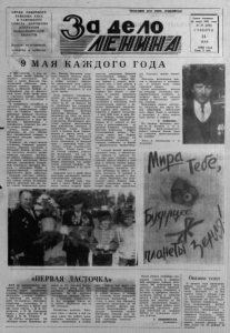 ОР ГАН С Е В Е Р НОГ О Р АЙКОМА КПСС И Р АЙОННОГ О СОВЕТА НА Р О Д НЫХ ДЕ ПУ Т А Т ОВ НОВ ОС ИБ И Р С К О Й ОБЛАСТ И Пролетарии всех стран, соединяйтесь! Выходит по вторникам, четвергам и с у б б о т ам 4 0 у 1 0 Газета основана 20 июля 193$ года № 58 (6282) С У Б Б О Т А 1 4 МАЯ 1988 года Цена 3 кон. 9 М А И вот пришла к нам сорок третья весна. Память о суровы>' испытаниях 1418 дней и ночей Великой Отечественной, доблестно пройденных героями фронта и тыла, о Великой Победе, ос вободившей мир от фаш истской чумы, будет вечно жить в советском народе, бережно передаваться от поколения к поколению. В преддверии праздника в раОтнЦом | Доме культуры* прошло торжественное собрание, на котором выступил районный военный комиссар П. В. Маханьков. Он поздравил собравшихся в за л е ветеранов, фронтовиков с граздником , пожелал им всего самого лучшего. Затем, после небольшого перерыва, не как обычно был праздничный концерт, а состоялся конкурс политической песни. Первыми на сцену вышли учащиеся Северной средней школы; Евгения Симонова и Геннадий Егоров. Думаю, что им пришлось немного трудно первыми начинать конкурс, но ребята побороли смущение и достойно выступили. Затем конкурс продолжили сл е дую щие участники: Валерий Ж и - ваев — сотрудник Р р в д и художественный коллектив Виазинского Дома культуры. Каждый участник конкур са старался исполнить песни как можно лучше, но предпочтение зрителей все ж е было отдано биазинским артисЯ К А Ш там. Виктор Кропотов сильным, чистым голосом, песня ми об Афганистане, друж б е и любви покорил северян. Из зрительного зала при хо дили записки от ветеранов с просьбой исполнить .ту или иную песню. Если говорить откровенно, такого на конкурсе еще не было. Конкурс планировался минут на 50, не больше. Но он превзошел все ожидания устроителей. Исполнителей, Галину Чернову, Виктора Кропотова, Виктора Халяву, вызывали на «бис» по несколько раз. Под дружны е ап лодисменты благодарных з р и т е л е й прошло выступление всех участников конкурса. В заключение жюри подвело итоги и решено было первые, вторые и третьи места не присуждать. В сех участников отметили памятными Почетными грамотами. И большой приз — огромный торт — поделили м еж д у участниками конкурса. Очень жаль, что не смогли принять участие все желающие, так как их не оповестили заранее, и они не успели подготовиться. Будем надеяться, что следующий конкурс пройдет более организованно и на высоком уровне. Седьмого мая в ф ой е Дома культуры проводился конкурс политического плаката. 9 мая каждого года площадь у парка Победы становится местом встречи фр он - д о г о г товиков, ветеранов Великой Отечественной войны. Они приходят сюда, надев бое вые ордена и медали, вспоминают тех , с кем вместе в грозные годы отстояли свободу и независимость нашей Родины. Их подвиг — навсегда в памяти советского народа. Он, как бесценное наследство, передается и з поколения в поколение. Учит комсомольцев, юношей и д е вушек беззаветной преданности партии, делу Ленина, готовности к защите Отечества. 9 мая 1988 года, в день В е ликой Победы, вновь встретились убеленные сединой в е тераны. И у многих из них рядом с потускневшими от времени боевыми наградами блестели новенькие ордена Отечественной войны. Так, спустя много лет, Родина вновь высоко оценила и х беспримерное мужество и героизм, стойкость в борьбе с фашистскими зах