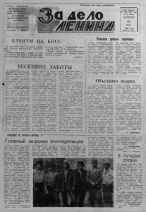 ОРГАН СЕВЕРНОГО РАЙКОМА КПСС И РАЙОННОГО СОВЕТА НАРОДНЫХ ДЕПУТАТОВ НО ВОСИБИ РСКОЙ ОБЛАСТИ Выходит но вторникам, четвергам и субботам. Пролетарий всех стран, соединяйтесь! а д е л о Газете о с нована 20 и ю л я 1935 года № 63 (6287) ЧЕТВЕРГ 26 МАЯ 1988 года Цена 3 коп. П Л Е Н У М ЦК 23 мая 1.988 года состоялся очередной Пленум Центрального Комитета КПСС. Пленум рассмотрел вопрос «О проекте тезисов ЦК КПСС к XIX Всесоюзной партийной конференции». По этому К П С С вопросу выступил Генеральный секретарь ЦК КПСС М. С. Горбачев. Пленум принял по обсуждавшемуся вопросу постановление, которое публикуется в печати. (ТАСС) ВЕСЕННИЕ ЗАБОТЫ Посеяли яровые зерновые В предыдущие годы комментарий о ходе весенне- полевых работ ч ащ е всего н а ч и н ал и словами: «В слож н ы х при родн о -клим а т и ч е ски х у с л ови ях приходится \ т р у ж е н и к а м полей вести А посевные работы, но нес- к мотря н а это, они т р у д я т с я . . .» и д ал ьш е следовали эпитеты. А приходило в р е мя подводить итоги полевого сезона, то констатировали, что и ур ож ай не совсем тот, па который р а с сч итывали , и кормов д л я общественного животноводства заготовлено не т ак у ж и много. Не п р и н и ж а я труд м е х а низаторов, руководител ей и сп ециалистов колхозов, все 'Же хотелось бы отметить, что н а ш и р е з у л ь т а ты могли бы быть намного выше. И виной тут не одна только л погода. Оторв анность крес- _ т ь я н и н а от земли, от конечного р е з у л ь т а т а своего труда, о чем мы заговорили не т а к давно — вот г л а в ное, в чем кроются корни этой проблемы. Некоторый опыт работы в х о з я й с т в а х нашего района по ор ган и з ац и и труда небольшими з в е н ь я м и е оплатой за конечный резул ьтат, говорит о том, что будущее з а ними. Это ко л л ек т и вы и н тенсивного т руда . —, КИТы *— п о к а зы в аю т прим ер с а моотвержен :-Рй работы. 20-ти кол л ек т и в ах , работ ающ их по этой форме ор г ан изац ии труда, л учш ее качество работы, намного организованней и х труд. Работу начинают обычно с семи часов утра, з а к а н ч и вают заполночь. Они п р е красно понимают, что весенний день — год кормит, и п р и к л ады в аю т все силы, чтобы своевременно и к а ч е ственно провести весенние полевые работы. Встреча с этими . кол л ек тив ами всел я е т уверенность и придает оптимизм, что и на нашей земле можно получать х о роший ур ож ай и производить больше продукции животноводства. Звено братьев Изюровых из к о л хо за «Запеты И л ь и ча» — Виктор — з в е н ь е вой, Федор, Николай, ' Александр, Владими р Шаев и Сергей Ч у я к о в в з я л и 250 голов скота на откорм и 140 гектаров земли. Они п л ан ирую т перейти на а р е ндный подряд. Звено и з п я т и человек, во згл авл яем о е Николае м Дмитриевичем Васильевым, в з я л о около 100 гектаров пашни, 200 голов скота на откорм в колхозе «Восход». КИТы Геннадия Б л и нова и Н и к о л а я Петрова из этого ж е х о з я й с т в а , ' з в е н ь я А. И. Седаков а, В. В. В асильева, Л. К ук уш к и н а из ко л х о за «Новая жизнь» и многие другие несут на по л я х н а п р яж ен н ую трудов у ю ' в а х т у ! В о з в р ащ а я с ь к проблеме орган изац ии труда в КИТах, хотелось бы привести один эпизод из к о л хо за «Зав еты Ильича». П о д ъ е зж а ем мы к звену, которое работает по с т а рой форм е ор ганизации труда. Оно вело подработку п ашн и и сев пшеницы. Подработка бы л а п р о и з в е дена некачественно и около (Продолжение н а 2-ой стр) Новые, хо зр а сч е т ны е методы работы, стим