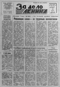ОРГАН С Е ВЕ РН О Г О РАЙК ОМ А КПСС И Р АЙО ННО ГО СОВЕТА Н А РО ДНЫ Х ДЕП У ТА Т О В Н О В О С И Б И РС К О Й ОБЛАСТИ Выходит по вторникам, четвергам и с у б б о т а м . П роле тарий всех стран, соединяйтесь! Газета оеневана 20 июля 1935 года М 75 (6299) ЧЕТВЕРГ 23 июня 1988 г о д а Цена 3 коп. « О б с у ж д а е м Тези сы ЦК КПСС к X I X Всесоюзной партийной к онф ер ен ции Решающе слово- за трудвоымколективом ПРОГРАММА ВЫПОЛНЕНА полностью После за в е рш е н и я совместн ы х работ на борту научно- исследовательского к о м п л е к са «Мир» международный э к и п а ж в составе А натолия Соловьева, Виктор а Сави ных и г р аж д а н и н а Народной Р е с пу б л и к и ' Б о л г ар и и А л е к с а н д р а Александрова 17 июня во звр а т и л с я н а Землю. А ровно ч е р е з су тки после этого ч л е н ы советско-болгарской ко смической экспедиции стали уч а с т н и к ам и проведенной н а космодроме Б ай к о н у р ГреосНконференции. Космон а в т ы сообщили, что в ходе восьмисуточного полета э к и п а ж вып олн ил все 42 з а п л а ни ров ан ны х эксперимента. З а успешное осуществление ко смического полета н а орбитал ьном нау ч н о -и с сл ед о ват ел ь ском комплекс е «Мир» и п р о я в л е н н ы е при «том муж е с тв о и герои зм П р е з и д и у м Верховного Совета СССР н а г р ади л д в а ж д ы Героя Советского Союза л е т ч и к а -к о с м о - н а в т а СССР В. П. С а ви ны х орденом Ленина, А, Я. Сол о вь е ву присвоено зв а н и е Героя Советского Союза с вруч ени ем ордена Л енин а и м едали «Золотая Зв е зда» , а т а к ж е з в а н и е «Летчик-чсосмон а в т СССР». З в а н и е Героя Советского Союза с в р у ч е нием ордена Ленина и медал и « З ол о т а я Звезда» присвоено г р аж д а н и н у Народной Р е с п у б л и к и Цошгцрии ко- с мон авту^исследов а те л ю А. Александрову, (ТАСС) В чесьт доярок С переводом скота н а пастб ищ е з а м е т н о повы силис ь надои и п р и в е сы в колхозе «Восход». Если в конц е з и мовки з а сутки н а д а и в ал и по 5 — 6 кил о гр амм ов молок а , то сейчас, д а ж е в гнус, — по 10 с л иш ни м ки л о г р а м мов. С н а ч а л а года более чем по т ы с я ч е к и л о гр а мм ов на корову надоили д о я р к и ви - тинской ф е р м ы О. И. З а к у сило, Н. В, Петрова, 3. И. Ти хонов а и Н. В. Петрова. Т е л я т н и ц а М- В. Ш ерукова доби л а с ь среднесуточного Прироста одной го ловы мол о д н я к а крупного рогатого скота по 815 граммов. В ч е с т ь этих д о я р о к и т е л я т н и ц вы п ущ е ны «Молнии», П. П Е Т Р О В . Строительство моста ч ер е з р ек у Т а р у могло бы з а в е р ш и т ь с я ч е р е з неделю. А т е п е р ь , вероятно, з а т я н е т с я ещ е н а месяц. И не строител и в ©том виноваты. Они работают н еделями , т о л ьк о н а вы ходны е е з д я т домой. На объе к те н а х о д я т с я весь световой день. А т е м п ы с т роител ь ств а т е п е р ь с д ерж и в аю т с я по неск о л ь к и м причинам . У неко т оры х лиц , пр ям о з а и н т е р е со в а н ны х в во звед ении д а н ного объекта , п оя ви ла с ь самоуспокоенность после то го, к а к уровень воды в ре- £ е у п а л и вновь п ояви ла сь О публиков ан ны е Тезисы ЦК КПСС к X IX па р ткон ф ер ен ции обсуждаются не только 'коммунистами, потому ч то они з а т р а г и в а ю т проблемы бук в а л ь н о в с е х с ф е р ж и зн и наше го общества. К аж ды й чел ов ек з аи нтер есов а н в том, чтобы н а ш а ж и з н ь ст ала л у чш е и не повторилось то в р е м я , ко торое сбило с рит м а экономику стр ан ы , отуч и л о н а с б ы т ь с а м о к р и т и ч ными , Деловыми, требоват е л ь н ы м и к себе и другим. Опубликован ны е Тезисы, мне 