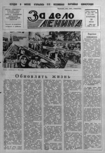 СЕГОДНЯ В МОСКВЕ ОТКРЫЛАСЬ XIX ВСЕСОЮЗНАЯ ПАРТИЙНАЯ КОНФЕРЕНЦИЯ О Р Г А Н С Е В Е Р Н О Г О Р А Й К О М А К ПС С И Р А Й О Н Н О Г О С О В Е Т А Н А Р О Д Н Ы Х Д Е П У Т А Т О В Н О В О С И Б И Р С К О Й О Б Л А С Т И Выходит по вторникам, четвергам и субботам. Пролетарий в с е х стран, соединяйтесь! а Г а з е т а о с н о в а н а ■ 2 0 м ю л я 1 9 3 5 г о д а № 77 (6301) В Т О Р Н И К 28 и ю н я 1 9 8 8 года Цена 3 коп. И И Т Е Р Й А К И в Й А Л М З И Г Л А С Н О С Т Ь в» m ш * ж сесоюзнАя К П С С Плак ат х у дож ни к а В. Неуст оева. Издательство «Плакат» Сегодня в М оскве н а ч ал а работу X I X В с е с о ю зн а я партийная конференция. Конф е ренция подведет, итоги с д е л а н ного з а половину пятилетки, к а к определено ее повесткой д ня . Но работа форума не будет огр аничена анализом (столь неп|родол6кительного временного отрезка. Там буд у т д а н ы о т в е ты и н а д р у гие назревшие вопросы. На собраниях при обсуждении Тези сов были в ы с к а з а н ы 'замечания, в но си л и с ь предложения, ч у в с т в о в а л а с ь в с е общая з а и н т ер е со ва н н о с ть и одобрение идущей в ст р ан е перестройки. Но к а к -т о получ а е т ся , ч т о говорят о н ы н е шней перестройке не у себя в районе, в колхозе, а г д е -то там. Наша перестройка с е го дня долж на в ы р а ж а т ь с я в порядке н а производстве, в высокой трудовой дисциплине, в значительном наращивании темпов производства молока и мяса, в повсеместном внедрении прогрессивн ы х форм организации т р у да, в развитии подсо бных хо з я й с т в предприятий, лич н ы х подсобных х о з я й с т в граж дан, в решении социальн ы х проблем. В этих вопрос а х перестройка пока в з а чаточном состоянии, но отрадно то, что в сознании, в мышлении рабочих и колх о з н и к о в эта п ерестройка идет Перестройка сознания повле ч е т перестройку и в деле. А пок а мы, з а х о д я в магазин , н е видим обилия прод у к т о в , произ вед енных н а пол я х и ф ерм а х , в теплицах н аших к олхозо в. Консервирова н н а я св и н и н а и говядина е сть , но это о н а с позаботилс я прибалтийский агропром, а не к о л хо з «Восход» или к примеру — имени Карла М ар кс а . И поднимается ч у в ство досады , н еу довлетворен ности. В чем же д ело? Р а н ьш е се товали на то, что у к а з у ю щий перст с в е р х у с к о в ы в а е т инициативу, не д а е т р а з в е р н у т ь с я . Сейчас, с выходом в с в е т з а к о н о в о кооперации, о государст венном .предприятии, руки р а з в я з а н ы , но резу л ь та т . . . Наверное, з а прошедшие долгие годы людей отучили д у м а т ь , а з а короткий промежуток последних л е т еще н е научили. В н астоящее время перв и ч н ы е партийные организации}, )районн!ая партийная организация в целом работ аю т н а д этим. Е с т ь , е с т е с т венно, и ре зул ь т а ты . С у д о в - Л|етворение!м мы отмечаем позитивные сд ви ги , происходящие в колхозе «Память Ленина», •Повысился порядок н а производстве, укрепи лась дисциплина, обозначился порядок с кадрами, себестоимо сть производимой продукции с ам а я н и з к а я в районе, в ко л хо зе н а х о д я т проп и ск у достиж ения н а у ки и передовой практики. Это с т а ло возм ожным благодаря пост авленной работе с лю д ь ми, организации учебы. Примером работы в н о в ы х у с л о в и я х х о з я й с т во ва н и я мог у т служ и ть районный узел с в я з и ; межхоэййственный л е с х о з «Северный» . Р а н е е сущ ествовавшим отношением к сел ь ск ом у х о з я й с т в у к р е с т ья н и н а отучили раб отать. В ы х о д один — н а д о возродить в крестьянине х о з я й с 