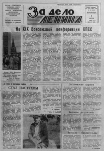 ОРГАН СЕВЕРНОГО Пролетарий всех стран, соединяйтесь! РАЙКОМА КПСС И РАЙОННОГО СОВЕТА НАРОДНЫХ ДЕПУТАТОВ НОВОСИБИРСКОЙ ОБЛАСТИ Выходит по вторникам, З о л е л о Газета основана 20 июля 1935 года № 80 (6304) В Т О Р Н И К 5 и ю л я 1988 года четвергам и субботам. 1 ц ен а коп. р XIX Всесоюзной конференции Москва. IXIX Всесоюзная конференция КПСС. На: сн им ке: дел е га ты п а р т кон ф е р е н ц и и в Кремле. Фото А. К р ем к о (Ф о тохроник а ТАСС) Москва. (ТАСС). 30 ию н я в Кремлевском Дворце с ъ е здов третий день р або тал а X IX Всесоюзная к о н ф е р е н ц и я КПСС. Делегаты про д олж и ли обсуждение д о к л а д а ЦК КПСС «О ходе р е а л и з а ц и и решений XXVII съ е з д а КПСС и з а д а ч а х по углублению .перестройки». В п р е н и я х выступили: В. И. Постников — г е н е р а л ь ный директор производственного бройлерного объединен и я «Ставропольское» С т а в ропольского к р а я , В. А. Ярин — оператор ст ан а Н и ж н е т а ги льского металлургического комбин ата имени В. И. Лени н а Свердловской области, A. А. Логунов — в и ц е - п р е зиден т А к ад емии н а у к СССР, рек тор Московского! университета , В. И. М ел ь ников — пе рвы й с е к р е т а р ь Коми обкома КПСС, Д . И. Б а т и а ш в и л и — первый с е к р е т а р ь ЦК Компартии Грузии, В. А. Стародубцев — пр едс ед ател ь агроп ромыш ленного объединения «Новомосковское» Тульской области, К. 3 . Ромазанов — с т а л е в а р Карагандинского м е т а л лургического комбината, B. И. С а р а н с к и х — пе рвы й с е к р е т а р ь Череповецкого горкома КПСС Вологодской области, Л. II. Ж и в е т ь е в а — зоо т ехн и к ф е р м ы го сп л ем за- вода «Первомайский» имени 60-летия Союза ССР Новосибирской области, Р. Н. Ни- шанов — первый с е к р е т а р ь ЦК Компартии Узбекистана, И. Д . Лаптев — г л а в н ы й р е д ак т ор г а зе ты «Известия», С. Н. Федоров — г е н е р а л ь ный директор м еж о тр асл ев о го научно - технического к о м п л е к с а «Микрохирургия глаза», Г. А. Боровик — пр едс ед ател ь Советского к о м итета з а щ и т ы мира, В. М. Платонов — секр е та р ь п а р т ком а производственного объе д и н ен и я Че ля б и н ски й т р а к торный з а во д имен и В. И. Ленина», О. М. Захарова — оператор обогатительной ф а брики № 12 производственнонаучного объеди нен ия «Якут- алмаз», А. М. Фатеев — в т о рой с ек р е та р ь Ленин гр ад ско го обкома КПСС, Г. И. Загай- нов — н а ч а л ь н и к отделени я центрального аэрогидродина- мического института имени Н. Е. Жуковского , В. Ю. Ни- жельский — газовщ и к Орс- к о -Х алил ов ско го м е т а л л у р гического ком бин ата Орен- бурской области, Р.-Б. И. Сонгайла — пе рвы й с ек р е т ар ь ЦК К омпар ти и Литвы, А. П. Альдак — предс едатель к о л х о з а «Л енин ск ая и с кра» Ч у в аш с к о й АССР. Всесою зная п а р т и й н а я ко н ф е р е н ц и я п родолж ае т работу. Москва. (ТАСС). 1 ию л я в Кремлевском Дворце съездов з а в е р ш и л а с ь р аб о т а вш а я ч етыр е дня X IX Всесоюзная ко нф е р ен ц и я Комм уни стич еской партии Советского Союза. В этот день в п р е н и я х по докла'ду «О ходе р е а л и з а ц и и р ешений XXVII съ е зд а КПСС и з а д а ч а х по углублению перестройки» вы ступ и ли: В. К. Месяц — первый с е к р е т а р ь Московского , обкома КПСС, А. А. Мельников — н а л а д ч и к ц е х а ш а с си механосборочного про изводства Волжского а в т о з а вода имени 50-летия СССР (К уйбыш евск ая область), Ф. Т. Моргун — предс едат ел ь Государственного Комитета СССР по охран е п ри роды, Г. Я. Бакланов — г л а вн ый р ед актор ж у р н а л а «Знамя»