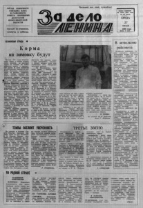 ОРГАН С Е В Е РН О Г О РАЙКОМ А КПСС И РАЙ О Н Н О ГО СОВЕТА Н А Р О Д Н Ы Х Д Е П У Т А Т О В Н О В О С И Б И Р С К О Й ОБЛАСТИ Выходит по вторникам, четвергам и с у б б о т а м . Пролетарий всех стран, соединяйтесь! Л а лело Га з е т а основана 20 нюля 1935 года № 89 (6313) СРЕДА 27 июля 1988 г о д а Цена 3 коп. СЕНОКОСНАЯ СТРААД ♦ - - - - - - - - - - - - - - - - - - - - - - - - - - - - - - - - К о р м а на зимовку б у д у т Колхоз «VII съ езд Советов» очень редко, а точнее с к а з а т ь почти никогда, не з а к у п а е т корма н а стороне. Не любят полеводы ходить с п ро тя ну той рукой. И хо тя хозяйство не расп олагает к а к и м и -т о особенно богатыми, о т л и ч аю щ и мися от других, угодьями, здесь всегда зим ую т н а дежно, с запасом кормов, хотя кормовых един иц зач астую недосчитываются: * И нынче | а сезон были созданы два '"звена, возглавили ко торые Михаи л Ефимович Дергачев и Виктор С авельевич Доленчук. К аж ды й день на доске пок а за т ел ей , что установлена возле конторы х о зяйства , поя в л яю т с я новые ц и ф ры , о т р а ж аю щ и е ход заготовки к о р мов. П о к а з в е н ь я идут почти на р а в н ы х . У одних вы п о лн е ние з а д а н и я со ставляет 64 процента, у других — 63. А сметать им требуется по ч е тыре т ы с я ч и центнеров. Всего ж е колхоз пл ан и р у е т з а готовить к зим овке 10 ты сяч центнеров сена. Совсем неда вно м е х а н и з а торы з а к о н ч и л и уборку на Евменовском болоте и п ер ебрались в д ень нашего п р и езда н а Дроздовское. Первым здесь появилс я, к а к и положено, сам звен ье вой, М. Е. Дер гачев. Его т р ак т ор стоял у к р а я скошенного массива. А вокруг л е ж а л о пок а еще неубранное сено, обещавшее неплохой урожай . — На Евменовском х уж е был а тр а в а , — говорит Мих а и л Ефимович . — Т а м мы в з я л и 3800 центнеров. Да плюс 1200 — зеленки. А здесь подкормили т р а в ы с весны. Т а к что ожида ем большего. В ы к аш и в а ем нынче все, особенно с ы р ы х мест нет, поэтому пок а без воскресников обходимся , убираем техникой. Дело у полеводов отлажено. Впереди — М. Е. Дергачев, В. И. Екимков, В. Н. М ахны - ткин . Они ведут скашивание. И осталось им немного, около 40 гектаров . А следом дви г а ется о тряд метчиков в составе Н. А. Данилова, В. И. Мо- си яви ча , Сергея Прокофьева, Ю. А. Ковгана, А ле к с е я Ч е рнова, А. Д. Мосиявича. Убирают сено и В. А. Ковган, М. А. Лобков, Н. В. М и х ал е - вич, В. В. Нануков, Юрий Ковыренко. Р а с т у т н а болоте скирды . И сено в н и х зеленое, не поп а вше е под дождь. Это и р а дует механизаторов, и огорчает. Почти с самой весны не вып ал о добрых осадков над п ол ями останинцев. Силосные т ТЕМПЫ ВСЕЛЯЮТ УВЕРЕННОСТЬ На сенокос в кол хо зе «Заветы Ильича» вы е х а л и три звена. Одно и з н и х во згл ави л В. В. Изюров. Вернее, этот небольшой ко л л ек т и в и з ш е сти ч ел ов ек работает н а подряде. Сей час п р и ш л а пора готовить корма, и м е х а н и з а торы не упу ск аю т погожих дней. И х не надо подгонять, контролировать, д а в а т ь з а дания. Люди работают н а совесть, сено мечут качественно, ски рды делают п о -хо зя йски . Они р еш или заготовить 4200 це нтнеров сена. Из н и х уж е сметано 2600 центнеров. В Ново-Покровской бригаде на заготовке сена трудится звено В. Г. Ванченко . Здесь , н а просторах болота, есть где р а з в е р н у т ь с я техни к е , поэтому и з п л а н а п я т ь ты с я ч ц е н тнеров у ж е поставили в ски р - ПО РОДНОЙ СТРАНЕ НАДЕЖНЫЙ КОНСЕРВАНТ ПАВЛОДАР. Н а д еж н ы м консервантом д л я при гот о в л ен и я силоса станет н ы не во многих х о з я й с 