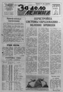 О Р Г А Н С Е В Е Р Н О Г О Р А Й К О М А К П С С И Р А Й О Н Н О Г О С О В Е Т А Н А Р О Д Н Ы Х Д Е П У Т А Т О В Н О В О С И Б И Р С К О Й О Б Л А С Т И Выходит по вторникам, четвергам и субботам . Пролетарий всех стран, соединяйтесь! nlfl дело Газета основана 20 июля 1935 года № 102 (6326) ЧЕТВЕРГ 25 А В Г У С Т А 1988 года Цена 3 кои. Правофланговы е соревнования рел С и ове и т тог Р и А П со О рев и нов п а р н е и з я иди к у о млхо р зо ай в, ко з м в а ень п е р в о , ф б с р о и ю г з а а д Ар а В с Мс м о н т а заготовке кормов по состоянию на 22 августа и постановидат П е р л и ь зн В ат . ь М побШед р и е т й е д л е е р м , а к г о р л о х н о о з м «ПА а . м В я . т ь Кл Л е е щ н е и н н к а о » , и ( н п жре е д н с е е р Н . А . Герлиц) где заготовлено 16807 центнеров кормовых единиц, или 31,8 процента к плану . с п т1 °иЛ ° п3г.т3г,аНеСТ“ на Д о с К у почета- председателя и главных специалистов премировать в сумм е 130 рублей Второе место присудить колхо зу « В о с х о д » (председатель д , р аган ’ а гР°ном С . к. Волокитин, инженер В . Л Н п и о л 7 ' заготовнвшемУ *4182 центнера кормовых единиц или 24,7 процента к плану. ’ меП Ш0С рублей1 И ГЛаВНЫХ специ ал ” стов премировать в сум - седтгеть Г п Присудить КОЛХОЗУ вменв М . Горького (пред- 1 н ы Н - П - Б у г а е в , агроном Н . В . О б у х о в , инженер елинин заготовившемУ 9141 центнер кормовь, единиц, или 21,7 процента к пл ану. с у м м Г 7 0 ДарТублЯейИ ГЛЗВНЫХ спеЦиалистов премировать в Среди звеньев первенство присудить звену Н . А. Степано - ва из колхоза имени М . Горького, заготовившему 20360 центнеров сена, или 132 процента к пл ану. 6РИГЯД А в м первенство присудить бригаде П. А Й Г р ^ н Г ™ ” ,Н аШ " Р° Д" " а*- » » " » » « « „ л и „ а ЭЛЕКТРИК В эти дни электрик из «Агропромэнерго» Владимир с А к б е л . яе Т в ам на о х н оди п т р с и я ни в ма Н ет ово уч си ас б т и и р е в областном ший ^Но п п р о ежд п е роф че е к м с о син и к п у ». р о с п е аст « ь Л у н ч а о т в е т н о й конкурс , он участво- в районном. Среди всех участников В . Аб ляев показал твердые теоретические знания, четко ответил на вопросы, к а сающиеся техники безопасн< сти. Н о главное — это пр акп ческая часть конкурса . Здес было и подключение разлш ных электроприборов, и moi т а ж электросхем. С о всем эти отлично справился Аб ляев ему было присвоено званг «Лучший по профессии». Эт он подтверждает и своей рг ботой. П. П Е Т Р О В . ЗАГОТОВКА СЕНА НА 22 А В Г У С Т А ( В Ц Е Н Т Н Е Р А Х ) Ф амилия И . , О . Е % • з в е н ь е в о г о СТЗ П а 03 ВЫП, Колхозы Санчило Я . Я . Попов С . И . Бридигин В . С . Ильиных В . В . Климов Ю . П . Л у ш о в П . Т. Пинтусов Е . М . Петров Н . А . С е д ак ов М . А . И в а н ов П . А . Кукушкин Л . Н . Яковл ев В . В. Сыпко П . Г. Ванченко В . Г. Изюров В . В . Степанов Н . А . Ковган Е . Н . Ра з д о б а р о в В. А Веселов С . Е . Д е р г а ч ев М . Е . Д о л е н ч у к В . С . Урсаев Н . Ф. Якимов А . И . 7500 4200 6500 5500 8500 6600 5500 5616 2000 2400 9500 5740 5000 3560 19500 23500 3000 3500 1500 2400 2500 500 3000 3260 7000 7033 5000 5372 4200 4204 15400 20360 12600 11600 . 8100 8100 11325 7200 1000 6202 4000 4994 11100 11500 6000 5820 Заго то вк а вит ам инно Л у ш о в П . А . 1500 2580 Сергиенко В . В . 1000 700 Б р а ц у к Р . Г. 2500 2000 Зенин В . П . 500 375 Капитонов Н . Д . 899 190 Сычев А . Н . 800 840 Ка за к о в Г. В . 2500 2300 Кондрашкин А . И . 1500 770 К о р ж о в I I Э . 2000 923 56 Н а ш а Родина 8 7 4 7 . . 6 6 —П а I м I —ять Ленина 1 1 6 2 0 0 0 2 , .1 4 — — и I м I I — . I — X X I I съ езда К П С С 1 7 2 1 0 . .5 2 В—о I с I х —о д 116.6 Н о в а я жизнь 160 - I I - 20 - i i - ioe,6 —I I — 100,5 Заветы Ильича 1 1 1 3 0 0 2 0 7,4 - и I м — е I н I - I и — М . Горького 92 Пу т ь к коммунизму 1 6 0 3 0 .6 — Б I о I р— ьба за мир 155 V I I съезд Советов 124,8 
