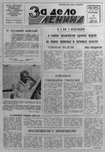 О РГАН С Е В Е Р Н О Г О РАЙ К ОМ А КПСС И Р АЙО ННО ГО СОВЕТА Н А Р О Д Н Ы Х Д Е П У Т А Т О В Н О В О С И Б И Р С К О Й ОБЛАСТИ Выходит по вторникам, четвергам и с у б б о т а м . Проле тарий всех стран , соединяйтесь! Газета основана 20 июля 1935 года № 104 (6328) ВТОРНИК 30 А ВГУСТА 1988 год а Ц ена 3 коп. С трудовой победой! Председателю колхоза «Борьба з а мир» тов. В. Е. КАПОРИКОВУ, секретарю партийной организации колхоза М. В. БУЗЮРГИНОЙ, председателю профсоюзного комитета М. Е. Д У Д И Н СКОЙ, комбайнерам, трактористам, шоферам, всем труженикам колхоза, занятым на уборке урожая. Дорогие товарищи! Райком КПСС, райисполком, райком профсоюза АПК сердечно поздравляют вас с заслуженной трудовой победой — выполнением основного плана продажи хлеба государству на 190 процентов. На хлебоприемный пункт вашим хозяйством отправлено 3930 центнеров зерна нового урожая. Выражаем сердечную благодарность передовикам жатвы: О. И( Кочергину, В. М. Антипину, С. П. Санникову, В. И. Лаврову , а т а к ж е водителям, показывающим образцы героического труда на< хлебном фронте. Желаем вам доброго здоровья, личного счастья, больших успехов в труде. Райком КПСС Райисполком Райком профсоюза АПК Владимиру Федоровичу З а х а р о ву (на снимке) в эти дни д мается о том, как бы лучше помочь колхозу «Борьба з а мир» i уборке кормовых культур. р р 1 " Г быпл ° Н СЮДа с Владимиром Клещенко, Виктором Поповы легом Почепкиным, Василием Коростелевым в первые дни сто ды. Возит вместе со всеми силосные от комбайнов до транше н а а4 °ТП роц ен т а" №° Т° ВарИЩам план г л а д к и силоса выполиФото С, Федорова. НА СТРОИТЕЛЬНЫХ ПЛОЩАДКАХ РАЙОНА ♦ С 1 ПО 7 СЕНТЯБРЯ В РАЙОНЕ ОБЪЯВЯЛЕТСЯ УДАРНАЯ НЕДЕЛЯ ПО УБОРКЕ СИЛОСНЫХ И ЗЕРНВОЫХ КУЛЬТУР УДАРНАЯ НЕДЕЛЯ ХЛЕБ-ГОСУДАРСТВУ Совет РАПО, президиум р а й кома профсоюза работников АПК, объявляют ударную неделю по уборке силосных и зерновых культур с 1 по 7 сентября 1988 года. В ударной неделе участвуют КИТы и звенья на уборке силосных и зерновых культур. Победители ударной недели будут определяться по наивысшему проценту выполнения р а нее доведенного за дания, но не менее 80 процентов от него. Д л я поощрения победителей учреждаются три классных места: — за первое место коллективы КИТов, звеньев н а г р а ж д а ются Почетными грамотами с о вета РАПО, президиума р а й кома профсоюза работников АПК и денежными премиями в сумме по 300 рублей; — за второе место — Почетными грамотами и денежными премиями по 200 рублей; — за третье место — Почетными грамотами и денежными премиями по 100 рублей. Премирование производится из централизованного фонда РАПО. РАЙОННОЕ СОВЕЩАНИЕ УЧИТЕЛЕЙ 24 — 25 августа прошло т р а диционное совещание учителей, которое подвело итоги прошедшего учебного года и наметило планы на предстоящий. 24 августа прошли секционные занятия учителей-предмет- ников и руководителей школ. На пленарном заседании выступил второй секретарь райкома КПСС В. М. Михайлец. В обсуждении данного выступления и д о кл а д а отд ела н а родного образо вания, п р е д в а рительно опубликованного в районной г а з е т е , приняли участие В. Ю.ч Ушакова — учительница Биазинской средней школы; 3. П. Александрова — из Чувашинской восьмилетней школы, Т. Г. Врагова — з а вуч Верх-Красноярской средней школы, А. Д. Балашов а — завуч Северной средней школы, В. И. Иванов — директор Но- троицкой средней школы, Н. Ф. Яровая —