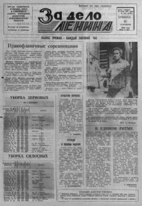 О РГАН С Е В Е РН О Г О РАЙКОМ А КПСС И РАЙ О Н Н О ГО СОВЕТА Н А РО Д Н Ы Х Д Е П У ТА Т О В Н О В О С И Б И РС К О Й ОБЛАСТИ Выходит по вторникам, четвергам и с у б б о т а м . П р ол ет ари й в с е х с т р а н , с о е д и н я й т е с ь ! л е л о Газета о снована 20 июля 1935 г о д а № 109 (6338) С У Б Б О Т А 1 0 СЕНТЯБ РЯ 1988 года Ц ен а 3 коп. УБОРКЕ УРОЖАЯ - КАЖДЫЙ ПОГОЖИЙ ЧАС 11равофланговые соревнования Совет РАПО, президиум райкома профсоюза работников АПК подвели итоги социалистического соревнования колхозов, звеньев, КИТов на уборке зерновых по состоянию на 6 сентября 1988 г. и постановили: Признать победителем в социалистическом соревновании коллектив колхоза имени Калинина, обмолотивший 73 процента уборочной площади и выполнивший план сдачи зерна государству на 73 процента. Колхоз усиленно ведет вспашку зяби и засыпку семян. Коллектив хозяйства занести на Доску почета, председателя и гл. инженера премировать из фонда РАПО в сумме 90 рублей. Второе место присудить коллективу колхоза «Борьба за мир», обмолотившему 64 процента уборочной площади. План сдачи зерна го сударству выполнен на 195 процентов. Коллектив хозяйства занести на Доску почета, председателя, главных- технологов и главного экономиста премировать из фонда РАПО в сумме 120 рублей. Третье место присудить коллективу колхоза и^»енн XXII съезд а КПСС, обмолотившему 63 процента уборочной площади. Колхоз ведет сдачу зерна государству, вспашку зяби, засыпку семян. Коллектив хозяйства занести на Доску почета, председателя, главных технологов и главного экономиста премировать из фонда РАПО в сумме 80 рублей. Среди звеньев и коллективов интенсивного труда первенство присудить КИТу С. М. Андреева из колхоза имени Калинина. Выработка на один комбайн составила 3066 центнеров. Второе место присудить коллективу звена С. В. Коростелева из колхоза имени XXI! съезда КПСС. Выработка на один комбайн составила 2333 центнера. Третье место присудить КИТу В. К. Сандзюка из колхоза «Память Ленина». Выработка на один комбайн составила 2093 центнера. Коллектив звена и КИТы занести на районную Доску почета. УБОРКА ЗЕРНОВЫХ НА 8 СЕНТЯБРЯ Фамилия й , А звеньевого убор, площадь 1 ^га) (BJ) dogtfou намолот (ц) колхозы Тукаев А. Г. 860 380 7154 «Наша Родина» Бессонов М. И. 630 270 4353 —I I — Сандзюк В. К. 800 593 11201 «Память Ленина» Антипкин П. А. 950 457 8005 —И— Ничков В. П. 530 140 2940 —I I — Коростелев С 460 340 8084 им. XXII съезда КПСС Алейников В. В. 800 484 9177 —И— Андреев С. М. 865 8445 1600 им. Калинина Муравьев О. В. 340 285 3884 —I I — Ликаровский В. 340 276 7652 «Восход» Ефимов А. А 402 222 5556 —И— Блинов Г. В. 605 440 5717 —I I — Аверченко Ю. 413 198 2809 «Новая жизнь» Иванов П. А. 370 126 1707 —I I — Слепцов В. Н. 432 380 6057 «Заветы Ильича» Сыпко В. Г. 500 354 5454 —I I — Краснов И. А. 400 225 2999 —I I — Николаев Н. П. 945 830 13454 им. М. Горького Петров А. Т. 755 515 5678 «Путь к коммунизму» Харитонов Г. Ф. 625 425 7908 —I I — Кочергин О. 1430 1066 14942 «Борьба за мир» Карписонов А. 1000 711 7469 «VII съезд Советов» Якимов А. И. 825 573 8807 им. К. Маркса УБОРКА СИЛОСНЫХ Фамилия И. О. звеньевого убороч. площадь (га) у б р а но (га) га1 ч и ? v 2 . колхозы Санчило Я. Я. 216 216 6265 «Наша Родина» Попов С. И. 254 220 8100 —I I — Ничков Т. П. 170 170 5980 «Память Ленина» Воробьев Г. И. 460 460 12000 — I I — Лушов П. Т. 400 400 9533 им. XXII съезда КПСС Пинтусов Е. М. 203 124 1743 —I I — Смык Н. Д. 380 380 11000 им. Калинина Петров Н. А. 778 725 6880 «Восход» Кукушкин Л. Н. 250 143 2972 «Новая жизнь» Седаков М. А, 353 353 5800 —I I — Сыпко П. Г. 400 400 8580 «Заветы Ильича» Изюров В. В. 66 66 1199 —I I — Те