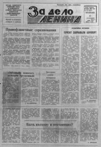 ОР Г АН С Е В Е Р Н О Г О Р А Й К ОМА КПСС И Р А Й О Н Н О Г О СОВЕТА Н А Р О Д Н ЫХ Д Е П У Т А Т О В Н О В О С И Б И Р С К О Й ОБЛАСТИ Выходит по вторникам, че твергам и с у б б о т а м . Пролетарий всех стран, соединяйтесь! д е л о Газета основана 20 июля 1935 года № 110 (6334) ВТОРНИК 13 с е н т я б р я ттш< 1988 года Цена 3 коп. ¥ ------- — ЧРЕЗВЫЧАЙНАЯ ОБСТАНОВКА - - - - - - - - - ПОЧЕМУ ЗАКРЫВАЛИ АЭРОПОРТ Правофланговые соревнования Совет РАПО, президиум райкома профсоюза работников АПК рассмотрели итоги работы полеводов на период ударной недели и постановили: Среди звеньев и КИТов на уборке зерновых культур первенство присудить коллективу интенсивного труда С. М. Андреева из колхоза имени Калинина, убравшему 97,6 процента доведенного задания. Выработка на один комбайн составила 3533 центнера. Коллектив звена занести на До ску почета, вручить Почетную грамоту совета РАПО, президиума райкома профсоюза и денежную премию из фонда РАПО в сумме 300 рублей. Второе место присудить коллективу интенсивного труда В. К. Ликаровского из колхоза «Восход», убравшему 81,2 процента доведенного задания. Выработка на один комбайн составила 2550 центнеров. Коллектив звена занести на Доску почета, вручить Почетную грамоту и денежную премию из фонда РАПО в сумме 200 рублей. Третье место присудить коллективу звена Н. П. Николаева из колхоза имени М. Горького, убравшему 87 процентов доведенного задания. Выработка на один комбайн составила 2242 центнера. Коллектив звена занести на Доску почета, вручить Почетную грамоту п денежную премию из фонда РАПО в сумме 100 рублей. Среди звеньев на уборке силосных культур первенство присудить коллективу интенсивного труда Г. И. Воробьева из колхоза «Память Ленина», убравшему всю посевную площадь с хорошим качеством. Выработка на один комбайн составила 6000 тонн готового силоса. Коллектив звена занести на Доску почета, вручить Почетную грамоту и денежную премию из фонда РАПО в сумме 300 рублей. Второе место присудить коллективу звена Н. Д . Смыка из колхоза имени Калинина, убравшему всю посевную площадь. Выработка на один комбайн составила 5500 тонн. Коллектив звена занести на Доску почета, вручить Почетную грамоту и денежную премию из фонда РАПО в сумме 200 рублей. Третье месте присудить коллективу звена П- Т. Лушова из колхоза имени XXII съезда КПСС, убравшему всю посевную площадь силосных культур. Выработка на один комбайн составила 4766 тонн. Коллектив звена занести на Доску почета вручить Почетную грамоту и денежную премию из фонда РАПО п сумме 100 рублей. «Звёздный» помогает Заседание труженикам сельским В трудную пору страды горожане помогают сельским труж еникам в уборке урож ая . С 14 августа работает в колхозе имени XXII съезда КПСС линейный отряд «Звездный» из новосибирского' НИИ электронных приборов. В отряде 9 человек. Т р у д я т ся они на зернотоке: р а з гружают машины, сушат зерно. Раб о та организована в две смены. В. Ф. Агрызков, главный агроном колхоза, хорошо о т зывается о работе командира отряда Валерия Бабичева , Андрея Снадпна, Галины Да- нилюк Живут ребята в школьном интернате, где оборудовали спальни, столовую, красный уголок. Участвуют шефы из Новосибирска и в общественной жизни села. 1 сентября на торжественной линейке, посвященной Дню знаний, они поздравили учителей и у ч а щихся с новым учебным годом, вручили первоклассникам подарки. Девушки, а их в отряде ч