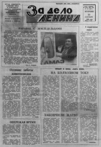 О Р ГАН С Е В Е Р Н О Г О Р АЙ К ОМ А КПСС И Р А Й О Н Н О Г О СОВЕТА Н А Р О Д Н Ы Х Д Е П У Т А Т О В Н О В О С И Б И Р С К О Й ОБЛАСТИ Выходит по вторникам, четвергам и с у б б о т а м . Пролетарий всех стран, соединяйтесь! Газета основана 20 июля 1935 года № 113 (6337) ВТОРНИК 20 С Е Н ТЯ Б Р Я 1 9 8 8 г о д а Цена 3 кон. НАРАВНЕ С ЗЕМЛЕДЕЛЬЦАМИ Коллектив «Агропромтранса» в обычном своем рабочем ритме нацелен на главное — своевременную перевозку грузов народнохозяйственного назначения. Рано утром идут машины в город, чтобы возвратиться вечером с кузовами, заполненными углем, щебнем, другими строительными м а териалами. Среди этой техники и машина Владимира Михайловича Акимова. Работает водитель на КамАЗе в бригаде у Ю. Н. Ганеева. Небольшой коллектив отмечает стабильное выполнение заданий, ответственность и внимательность в нелегких рейсах. В. М. Акимов вы езжает в них уже около пяти лет, ко торые трудится в «Агропромтрансе». Нынче, как и в прошлые годы, с наступлением уборочной страды часть водительского состава предприятия о тп р а в ля лась в колхозы на помощь хлеборобам и заготовителям кормов. Были представители организации и в колхозе имени XXII съе зд а КПСС. Здесь им определили ответственный участок. Шоферы вывозили зеленую массу к бурту. Вместе с ними хорошо потрудился и Владимир Михайлович. Его КамАЗ не знал простоев. По вине шофера не было задержки в работе, поэтому он с полным правом может сказать, что внес свою лепту в большое и важное дело — уборку у рож а я в > нынешнего года. Колхоз имени XXII съезда КПСС, где работал В. М. Акимов, на днях полностью убрал силосные культуры. В бурты заложено 6567 тонн силоса, что составляет 120,9 процента к плану. В этом заключен ударный труд механизато ров хозяй ства и их хороших помощников — водителей «Агропромтранса», в том числе и В. М. Акимова. На снимке: В. М. Акимов. Фото С. Федорова. В государственные закрома 13 сентября колхоз имени Калинина полностью справился с Планом продажи хлеба го су дарству. На хлебоприемное предприя тие от хозяйств поступило в зачетном весе 4037 центнеров ржи и пшеницы. 82 центнера зерна ссуды, к о торую брал колхоз у г о с уд ар ства, давно погашены. Хлеборобы намерены продол ж ать хлебосдачу. На сегодняшний день четыре хозяйства в районе — колхозы «Путь к коммунизму», «Борьб а за мир», «VII съезд Советов» и имени Калинина справились с планом продажи хлеба г о с у д ар ству. Они выполнили святую заповедь хлебороба. Г. ИВАШКЕВИЧ, директор хлебоприемного предприятия. Осенние заботы животноводов — СООБЩАЮТ ИЗ КОЛХОЗА «ПАМЯТЬ НА КОЛХОЗНОМ Колхоз «Путь к коммунизму» — хозяйство животноводческого направления, поэтому усилия полеводов направлены на обеспечение полноценной кормовой б?3ы. Нынче они постарались ^ТК-ртовить кормов больше, чем тГ прошлом году. Есть силос, часть сена завезена на склад. Зеленка в биазинской бригаде находится неподалеку, на полях. Дум ается , что в отношении рациона переход на зим нее содержание должен пройти благополучно. Но в дальнейшем мечтают животноводы иметь крытый сеновал, чтобы ни килограмма кормов не уходило зря, чтобы и осенью и зимой их потери были минимальными. А пока дойное стадо выгоня ют на пастбище, хотя доят уже в корпусе. Но в эти осенние дни надои не радуют ж и вотноводов. З а сутки по би а зинской ферме получают около 20 центнеров молока. И сниж е ние продолжается . Причи