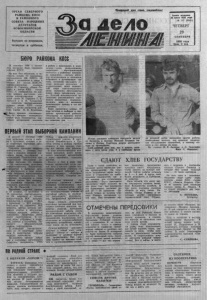 ОРГАН С ЕВ Е РН ОГ О РАЙКОМА КПСС И Р АЙОННОГО СОВЕТА Н АРО ДНЫХ ДЕПУТАТОВ НОВОС ИБ ИР С КО Й ОБЛАСТИ Выходит по вторникам, четвергам и с у б б о т а м . Газета основана 20 июля 1935 года № П 7 (6 3 4 1 ) ЧЕТВЕРГ 29 СЕНТЯБ РЯ 1988 года Ц е н а 3 к о д . БЮРО РАЙКОМА КПСС 26 с е н т я б р я 1988 г. с о с т о я лось з а с е д ан и е бюро Северного райкома КПСС. На нем был обсужден , в ч а стности, вопрос «О выполнении п остановления Ц К КПСС» «О работе с молодежью в св я з и с итогами XX с ъ е з д а ВЛКСМ » п а р то р г ан и з ац ия м и колхозов имени М. Горького, « Н а ш а Р о дина» и имени XXI I с ъ е з д а КПСС. С сообщениями по д а н ному вопросу выступили с е к рета рь парторг ан и з ац ии к о л хозов имени М. Горьк ого Г. Е. Аденский и А. И. Теплинский — с е к р ета р ь п ар то р г ан и з ац ии колхоза имени XXI I съ езд а КПСС, а т а к ж е и нструктор р а й кома партии В. В. К у дряш ов . фь., Бюро приняло '. п о с т а н о в л е н и е , в ко тором п одчеркнута о со б ая роль коммунист ов, п а р тийных о рганизаций ко лхозов в работе с комсомолом и м о л о д е ж ь ю (села, рек ом ен д о вано с е к р е т а р я м п а р торганизаций совместно с райкомом к ом сом о л а п р о дум а т ь систему о б у ч е ния комсомольцев и м олодежи , изб ранных в р у к о в о д ящ и е о р ганы, постоянно о к а з ы в а т ь п о мощь молодым д еп у т а т а м в осуществлении своих п о лн ом о чий), шире п ро п а г ан ди р о в а т ь среди молодежи преимущество новых форм о рганизации т р у д а . К а ж д о й комсомольской о р ганизации р ек омен довано о п р е делит ь кон кре тное с о ц и а л ь н о зн ачим ое дело и о к а з ы в а т ь практическую помощь в его вы полнении. Бюро рассмотрен в опрос «О хо д е отч етов и выборов в п а р ти йных о р г ан и з ац и я х рай о н а » . О б суж д ены и приняты п о с т а новл ения по оста льным в о п р о са м повестки д ня . ПЕРВЫЙ ЭТАП ВЫБОРНОЙ КАМПАНИИ В а в г у с т е — сентябре 1988 года проведены отчеты и в ы б о ры в груп повых, цеховых и р я де первичных партийных о р г а низаций района. С обрани я п р о х о дя т открыто, демок ратично , с деловым п о д ходом к решению вопросов п а р тийной жизни предприятий и о рганизаций . П р а к т и к у е т с я п р е два р и т е л ьн о е о б суж д ен и е о т четных д о к л а д о в , что п о з в о л я ет их своевременно дополнить , конкретизи ровать^ Выдвиж ение к а н д и д а т у р в выборные о р г а ны о б с у ж д а е т с я в ходе п о д г о товки с о б р ан и я , в ы с к азы в аю тся конкретные п р е д л о ж ен и я . Так , например, ка нд и да т ом в члены р айком а партии был выдвинут на пар ти йном собрании РУСа начальник рай онного у з л а с в я зи М. М. Рыль'ский. П а ртийные собрания прошли в 10 цеховых, 15 групповых и 13 первичных п а р т о р г а н и з а ц и ях. Н а со б р ан и ях в гру п па х п р ис у тств о в ал о 88,8 п роцента коммунист ов, в цеховых — 86,3, в первичных — 90,9 процента . Выступило на с о б р ан и ях 63,6 процента, причем активно п ри нимали у частие в обсуждении отчетных д о к л а д о в р абочие и колхозники . П р о и зош л а смена шести п артгруп оргов. В сост а в е вновь избранных, в о сн о в ном, рабочие и колхозники. П о высился о б р а зо в а т е л ь н ы й уровень п артгрупоргов. В первичных п а р т о р г а н и з а циях из 13 секретарей сменилось 9, с е к р ета р ям и избр аны молодые коммунисты. П о -д ел о вом у прошли с о б р а ния в партийных о р г ан и з ац и я х Северного леспромхоза , Р Т П , Р О В Д , д о5)ожно- рем онтн ого строительного участк а . В п а р т группах Новоник оль ск а и Сур- гутов отчеты и выборы про
