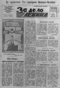 Да здравствует 71-я гоодвщина Великого Октября! О Р Г А Н С Е В Е Р Н О Г О Р А Й К О М А К П С С И Р А Й О Н Н О Г О С О В Е Т А Н А Р О Д Н Ы Х Д Е П У Т А Т О В Н О В О С И Б И Р С К О Й О Б Л А С Т И Выходит по вторникам, четвергам и суббо там . Газета о с н о в а н а 20 и ю л я 1935 го д а № 133 (6357) Понедел ьник 7 Н О Я Б Р Я 1988 г о д а Цена 3 кон. Плакат художника В . Фекляева. Издательство «Плакат» О к т я б р ь продолж ается сегодня Более семи десятилетий н а зад в октябре 1917 года к т о р в у о д д я с щ тв и о е м с я Р о б с о си ь и шев п и о с д тск р о у й партии свершили революцию. л И ь м ш я ев В и . ст И ск . ойЛ ени п н а а р , ти в и о , ж д с я та б л о о символом победы О к т я б р я . В исторической перспекти - яе Великий Ок тя брь означает н выом зв и о ч л е е с н к и и е х, ч ело п в о ек л а ити и ч з еск э и к о х, ду х ов ны х оков , возвращение е л мю у ци т я во э р т ч о еск с о д г е о л а н л а а ч , ал а . вы Р з е в в а о в тем самы м энтузиазм м а с с , который не у д а л о сь погасить жма е н ст д о н к о о й й а с д и м ст и е н м и о с й т , рати к в о н т о о - р к а о я ж и в а ещ е и сегодня. З а извр ащение ленинской п а л р и ог з рм а а м , м з ы а е п г о о стро д е е н ф и о я рм с а о ц ц и ию мы за платили р п о р в е а с н си и я я ми кол 3 л 0 ек —ти ц в е и н 5 з о 0 а й - ц х и ф и г о , о р до с р и в е . с н в П т иы р о т й о я и д ю о у т л що ж к же и а р е т шб е е л й ь с н н о а ц ын с и й е т а с р л а ь п н з н е н ы р о а м и , ч о у и е д е т р ел г а з у ь а з манистическим идеалам . ред П и р н а ы кти 7 ч 0 е - х ски год н о а в чи у на н я ас с с е в районе больших изменений в производстве моло ка , м я с а , у р ож а й н ости не произош л о. Чи сленно сть н аселения , в сравнении с 1965 годом, с у я м ч е и н ьшче и л л о а в с е ь к. поч В т с и е х на во 4 лну т е ы т вопрос: а что ж е с л у ч и л о с ь , пн п ые о е че н м в а р у ш е е м т г я о а ? к р О а з з т а в м в и е е т т д и л я и на л в ис э п ь т о о с т л м е е мды находим в м ат ер и а л а х X X V I I с ъ е з д а К П С С , X I X партийной с к м т о е в н н а фт . а е х рен п ц а и р и ти , и по и след п н р и а х ви д те о л к ь у е к в т и ет . С с с е л т г в Но о е жы д н н н н н ы я е ы е й н а з н ш э а а т д а с а а т п ч у с , и п тр и с п а л у е н т р а ь е е с е р т к е р о шо о т й т а о р ст о р го ойк в и , м п а е т р ер ев и о а д л е иза е ц е ии иде п й ер е и т н н з а а ы а м я м ы и э с д к н л е о а о т н п в р о п а м о в в и л ч е д е п н в с р и к у а я а м к м я т : и р к к е а р у ф р а . д д о и и р Р н м к а а а а б л л о ь ь и и шщ м и е с р т о в к т а а р . я уд С о о д м в е е м т и о с к к р и а о е т б и щ з л е а ю с ц т д и в и я ен с н о в о б о й н с а д т к ыя в т щ м е и и н в мн н п у о р ю с в е т о ь б юп с р т о а р д з а д о о н е в к е р а а ж н з р кы и е у я в в м а о ю . п л р т ю о ц и д и с е о х й н о Этот пр оц е с с идет через преодолег р н о я и н е П с е о —р тр е с у с т д т в р н а е о о р р й с ы н т к у м е а т й . ь , дл л б юя ор д н ь я б а м с у , ч н у с е в о в в с т о е о в н о а хозяин а. Эк он ом и к у р а й можно поднять только через арендный подряд. В прошлом году первым звеном , взявшим себе з ем лю , было звено В . К . Л икар о вс - кого из кол хоза « В о с х о д » . Р е з у л ь т а ты были неплохие. в т л В а а о в л е т и 1 е 5 к 7 у о 0 щк н о и е л ч м л ел е о к о д г т в о н и е д у к в у о т в и у р . ж ет е В о ь бр р и а а х б б а о с т о т ы а с всей пашни. С е го д н я можно с уверенностью ск а з а т ь , что выработка и показатели этих звеньев на 3 0 — 4 0 , а то и т м н а а и л р ь а 1 н 0 ы 0 х С . п а р н В о д ц з е к н ж з т а в о е в н и ь з б я о х ль к шВ ол л е х а о д о з и с а р « а П а м С я ы т п ь к о Л и е з н и 
