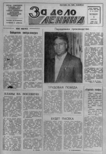 ОРГАН С Е В Е РН О Г О РАЙКОМ А КПСС И Р А Й О Н Н О Г О СОВЕТА Н А РО Д Н Ы Х Д Е П У ТА Т О В Н О В О С И Б И Р С К О Й ОБЛАСТИ Выходит по вторникам, четвергам и с у б б о т а м . Пролетарии всех страж, соединяйтесь! Газета о с н о в а н а 20 июля 1935 г од а № 4 2 ( 6 4 2 2 ) ЧЕТВЕРГ 6 А П Р Е Л Я 1989 г о д а Цена 3 коп. Передовики производства ~ ВЕСНЕ НАВСТРЕЧУ Победители смотра-конкурса ТРУДОВАЯ ПОБЕДА На заседании бюро р ай ко ма КПСС были р а с с м о т р е ны итоги смотра-конкурса между соревнующимися кол хозами Было отмечено, что улучшились условия труДа работников животноводства колхозов имени К. Маркса, « Б ор ьб а з а мир», «Путь к коммунизму» , «Восход», где построены добротные живот новодческие помещения, обор у д о в а т ь красные уголки, бытовые комнаты, ор г ан и зо вано горячее питание. Более действенным стало и социалистическое соревнование. Условия трудового с о перничества наглядно офор- мляютщрюАи вывешиваются в красных уголках. Периодически подводятся и придаются гласности итоги социалистического соревнования, выпускаются «Боевые листки», «Молнии». А в колхозе « Б о рьб а з а мир» з а плохую р а боту в р у ч а е т с я «Р огожный вымпел». Вместе с тем, выявлен ряд существен ны* недостатков. Экономическая учеба проходит на низком уровне. В колхозах имени К. Маркса, «Путь к коммунизму», имени Калинина, имени XXII с ъ е з да КПСС з ан ят и я в школах социалистического х о з я й с т в о вания с животноводами не ведутся В этих колхозах медленно внедряются все ПЛАНЫ НА Приближается весенний сев — главный экзамен з е м ледел ьцев. Уже сейчас хлеборобы колхоза «Наша Родина» составляют планы этой н а пряженной кампании, еще и еще р а з мысленно « п рокру чивают» весь ход полевых работ, которые станут о тпр ав ной точкой для получения намеченного н а нынешний год урож а я . А планы у хле- /боробов I хозяйства большие. Они посчитали, что смогут получить с гектара по 15,1 це нтнера з ер н а с гектара . В прошлом году смогли собрать почти по 19 центнеров. Во многом такому р е з у л ь тату способствовала про г р ессивная форма организации труда — КИТы. В прошлом году на их поля была в ы в е зена вся органика. Нынче в Больше . Куликовской бригаде ее р а зб р а сы в ал и с р а з у же, зимой. Позаботились з е м л е дельцы и о минеральных удо брениях, которых в хозяйство доставлено 5 35 тонн. Вносить эти удобрения будут под все кул ьтуры — и з е р новые, и силосные. Но пока у механизаторов колхоза немало и тревог. Сеять они намерены з е р н о в ы х (вместе с озимыми) 1375 гектаров, да кормовых 8 3 5 гектаров. Объем работ большой, так что вносить удобрения весной нужно будет оперативно, чтобы не упус- ™1Ь^с р о к и - в то же вр ем я в хозяйстве нет ра збр а сы в а те - Исходя из этих данных, бюро рай кома КПСС при су дило первенство в районном смотре-конкурсе социально экономического развития к о л хозу «Бор ьб а за мир», н а бравшему 4 2 3 балла. Х о зяй ство добилось значительного прироста реализации с ел ь скохозяйственной продукции, |уличшились условия труда в животноводстве. Среди р а ботников здесь организовано социалис тиче ское фр>евнов!а- ние и экономическая учеба. Колхоз «Борьба за мир» н а г р аж д ен Почетной грамотой райкома КПСС и денежной премией в сумме 150 рублей. Второе* место по решению бюро райкома КПСС было присуждено колхозу «П амять Ленина», набравшему 3 6 3 балла, выполнившему планы продажи государству сельскохо