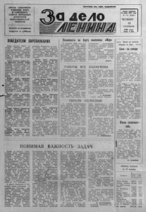 14 сентября 1989 года, ф № 111 ( 6 4 9 1 ) o z z z z z z z z z z z z z z z z z i j a a z z z z z z z z i « З А Д Е Л О Л Е Н И Н А » 3 Г О Д Ы . Л Ю Д И . С У Д Ь Б Ы Вековой юбилей в начале пути (Продолжение. Нач. в № 110) ЕСТЬ ВСЕМУ НАЧАЛО Есть всему начало. И колхозу тоже. Если следовать хронологии, то надо бы н а чинать с того, как жилось переселенцам при царях , как встретили они революцию в Петрограде весной 1917 года, как приняли революцию пролетарскую, Великую Октябрьскую, как жилось им при колчаковщине и еще не одно «к ак», поскольку первые полвека федоровского столетия насыщены такими историческими событиями, такими крутыми поворотами, что не оставить свой сл ед на судьбах переселенцев просто не могли. Но возможно л я сейчас восстановить это прошлое? Навряд ли. И поэтому поневоле благословишь всех, и детей, и взрослых федоров- цев, на святое дело — написание общими усилиями истории своей родины. Сохранить все, что еще можно найти, записать — рот то благородное дело, которое ложится на плечи, а точнее, н а умы и сердца пятого поколения основателей Федоровки. Ну, так вот. В 1934 году образовался колхоз имени Максима Горького. Объединились 16 дворов. 71 человек, считая и малышей и стариков. 27 трудоспособных. Около 70 гектаров пашни заняли рожью, ячменем, овсом. Посеяли 2 гектара пшеницы и 2,5 — льна. Наверное, не з р я была т ак ая раскладка . Ведь она основывалась на богатом предыдущем опыте, а он говорил, что кормить людей будет рожь, лошадей овес, а птицу — ячмень. Пшенице особого значения не придавали, хотя, конечно, белый хлеб к рождеству или другому празднику на стол подать приятнее. Осень сделала свою р а с кладку: валовой сбор зерна превысил 4 7 2 , центнера, из которых 2 6 0 ,5 цродали государству, почти 48 — выдали колхозникам на трудодни. К слову, на трудодень было положено: деньгами — 30 копеек, з ерн ом—9 60 граммов, сеном — 11,4, соломы — 1,9 килограмма. Колхозная ферма — это 21 голова крупного рогатого скота, из которых было 8 коров; лошадей всех возрастов — 18, овец — 3, птицы —- 8 голов. Заготовлено на предстоящую зиму 1600 центнеров сена и 30 тонн силоса. Машинный двор и основные производственные помещения: жатки — 2, конные грабли — 1, конные сенокосилки — 2, плуги — 6, руч ные веялки — 1, повозки — 10, конюшня— 1, телятник — 1, коровник— 1, ам б аров—5. Государство от колхоза получило: 11,5 центнера мяса в живом весе, 72 центнера молока , 2 килограмма шерсти. Сейчас в колхозе имени М. Горького только две бригады — два населенных пункта. Второй — Сургуты, иди как эту деревню на звали при рождении, Аул-Сургуты. В свое время тут был колхоз «Трудовик». Перед началом Великой Отечественной войны здесь жили 141 человек при 50 трудоспособных, было 34 двора. Посевная площадь сельхозартели не превышала 140 гектаров. Собирали 1000 — 1500 центнеров зерна, из которого до 5 0 0 центнеров сдавали государству. Имели скота 140 голов, в том числе 40 коров. «Трудовик» тогда имел трактор ХТЗ, колесный, были и различные сельскохозяйственные машины для обработки земли, очистки и подработки зерна, для выполнения, в общем-то, для всех основных сельскохозяйственных работ. В Сургутах люди жили побогаче, чем в Федоровке: на трудодень получали по 63 копейки деньгами, 1460 гр ам мов зерна , 5 килограммов сена, 15 соломы. В колхозной конторе стоял радиоприемник, у Черновых и Ващенко были велосипеды. В будущем школьном музее, вероятно, стоит выделить отдельным стендо