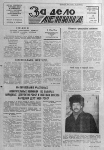О Р Г А Н С Е В Е Р Н О Г О Р А Й К О М А К П С С И Р А Й О Н Н О Г О С О В Е Т А Н А Р О Д Н Ы Х Д Е П У Т А Т О В Н О В О С И Б И Р С К О Й О Б Л А С Т И Вых о д и т по в т о р н и к а м , ч е т в е р г а м я с у б б о т а м . Газета основана 20 июля 1935 года № 8 (6 5 4 4 ) ВТОРНИК 18 Я Н В А Р Я 1990 г о д а Цен а 3 коп. Пролетарии всех стран, соединяйтесь! д е л о СООБЩЕ НИЕ О К Р УЖ Н О Й И З Б И Р А Т Е Л Ь Н О Й КОМИССИИ ПО ВЫБОРАМ НА РОДНЫ Х ДЕПУТАТОВ РСФ СР В соответствии со ста тьей 33 З а к о н а РСФСР «О выб о р ах н а родных депутатов РСФСР» окружными избирательными ком иссиями канд и да т ам и в народные д епутаты РСФ СР з аре гис триров аны ! По Бара бинском у т ерри тори альному избирательному ок ругу № 527 БОГОМ О ЛО В Юрий Васильевич, 1937 года рожден и я , п с о вый се крета рь Куйбышевского горкома КПСС, член КПСС, г. Куйбышев, НСО. ГОРСТ Р иха рд Христиано- вич, 1937 года р ож д ен и я , д и ректор совхоза «Б ар абинскпм» Новосибирской о бласти , член КПСС, с. Н овочаново, Б ара - бинскин район, НСО. КАШУТИН Анатолий А лександрович, 1948 года р о ж д е ния, начальник УВД Повози бирского облисполкома,- член КПСС, г. Новосибирск. Л Ы К О В Геннадий Д м и т р и е вич, 1932 года р ож д ен и я н а чальник управления с тр о и тел ь ств а «Сибак адеме трой» , член КПСС, г. Новосибирск. М И Х А Й Л Е Ц Владимир Михайлович , 1946 года рождения, п р е д с е д а т е л ь Сев ерного райис4 М А Р Т А В Ы Б О РЫ НА РОДНЫ Х ДЕПУТАТОВ РСФ С Р И МЕСТНЫХ СОВЕТОВ по.пкома Новосибирской о б л а сти, член КПСС с. Северное, НСО. М О Р О З О В А лександр В л а димирович, 1958 года р о ж д е ния, первый с е к р е т а р ь Повоем бирского о б к ом а ВЛКСМ , член КПСС, г. Новосибирск. ПИ В НОВ Анатолий С теп анович, 1940 года р о ж д ен и я д ире ктор с о в х о з а «В е р х -К а р гатскнй» Здвинск ого района, член КПСС, с. В ер х -К ар г а т Здвинск ого района, НСО. СОСТОЯЛАСЬ ВСТРЕЧА Во Д в о р ц е куль туры города К у йбыш ев а с о с т о я л а с ь в с т р е ча изби р ате л ей районов, в х о дящих в со став национально- т ер р и то р и ал ь но го и з б и р а т е л ь н о го о к р у г а № 58 по выборам н ародных д еп у т а т о в , РСФ СР , со своими к а н д и д а т ам и В. А. Боковым — пр ед сед ате л ем исполнительного ком ите та Н о в о сибирского о б ла стн ого Совета народных д еп утатов ; Е. В. Мн- кульчиком — начальником Политического У пра вления Красн о зн ам енн о го Сибирского военного о круг а ; А. Н. Митяши- ным — у п равляющим Н о в о си бирским ф илиалом м о л о д е ж н о го коммерческого б а н к а ; В. П. Рудиным — директором с о в х оза «Шарапский» Ордынского р ай о аа ;. Н. И. Савиным ;—’ д и ректором с о в х о з а «ТаскаевФ кий» Б а р а б и н с к о г о рай она; Г. Ф. Чентыревым — з а м е с т и телем ком андира войсковой части ; Г. А. Шишеб аровым ■— п р окурором Б агамск ого р а й о на. Н а ^встрече выступили д о верен ны е ли ц а к а н д и д а т о в , к р а т к о и зл ож и вш ие биографии к анд и да то в. З а т е м В. А. Б о ков л оста льны е к анд и да ты в н ародны е д еп у таты РСФ С Р изл ожи ли свои предвборные программы, в кото рых п о с т а рались осв етить те стороны общес твенной деятельности которы е с т а н у т основными ь сл у ч а е их и збрани я д е п у т а т а ми. После э то го слово взяли . п р ед еста ви тел и тех коллекти вов, ко то ры е выдвинули к а н д и д а т а м и в н ар о ны е деп утаты В. А. Б о к о в а , Е. В. Микульчи ка, А. Н. М и тяш и н а , В. П Р у ди н а , Н. И. С а в и н а , Г. Ф Ч е нтыр е ва и Г. А. Ш иш ебаро ва. К а н д и д а т ы в н а р о д н ы е де путаты отв етили на многочис ленн
