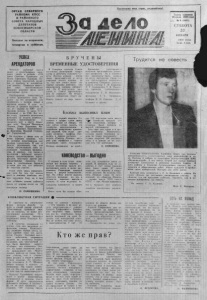О Р Г А Н С Е В Е Р Н О Г О Р А Й К О М А К П С С И Р А Й О Н Н О Г О С О В Е Т А Н А Р О Д Н Ы Х Д Е П У Т А Т О В Н О В О С И Б И Р С К О Й О Б Л А С Т И Выходит по вторникам, четвергам н субботам. Пролетарии всех с тран, соединяйтесь! Г а з е т а о с н о в а н а 2 0 и ю л я 1 9 3 5 г о д а I . . . № 9 (6545) С У Б Б О Т А 20 Я Н В А Р Я 199 года Ц е н а 3 к о п . УСПЕХ АРЕНДАТОРОВ Читатели районной газеты знают о существовании дного звена в колхозе а « р V е I н I съезд Советов» . Руководит им з Ор о и л к о ь д га и пе Е р п ф в р и ыо м б х о л в е т н м р а уд в н К о о с р т к же о й л о , л в е а н к . е т у и П в в е я е у ж е прошел. рый опыт, П с о п я о в с и о л б с с я тв н уюек щот и о й твердому решению звена идти намеченным путем. Подб адрив аю т животноводов д п ол и г т о оги до Про ег ш о едшок е о г н о ча г н о и д я а . о З н а и справились с планом надоя и продажи молока . И если зяйство в среднем получило х з о а год от г нК р ыо а р м жэ м т о о о в в г о о й к м о о р —л о о в к ы п а о , п 2 т о 7 о 6 2 6 з 3 . в 8 е 7 В н с о е к О и ч . л л Е о едр уж ног о коллектива р н а и б м о а т н а и юи т , н в а з аи п мол о н выом руч в к з е аимопо и уважении друг к д р у г у . Знаю т свое дело Н аталья Моисеевна Л а х т ю к , Нина Яковлевна Мо- жейко, н ви а Н ч Д а С е р о б р г у а о д ч ч Е у е и в щ в н д е а с о е , к к и и В й у я а . ле з К р в о и е н н й с а т С а е н т с е т т п и ь а н н о н о в е менее хорошие задум ки , чем те. которые животноводам у ж е удалось осуществить. И они их смогут реализовать, так как с т с т т е о п в я а е щр . ь и В ми п к о о ч р у х в п о с у з т с я в е е о , в в а а м г л д и и е п с т р е р о б у и я д з и в т н о : д а я коллектив, действует молоко - провод, механизирована кормо- д р и а з а н в з о д ы д а с ч т а и в , ен н н н е ык ео о е б то хо р д ып и е р м о ыц д е р е с у с г ыб и ы . е то С п в о р ы о з е условия для тех , кто работает на нелегком участке . ленУ сп х е о х тя это б г ы о з т в е е м н , а ч п то рим к е о ч л а х т о е з и ку м ю ел к в орм зи о м ву о ю вку б а н з а у и , б н ол о ее и н п и р з и этих условиях доярки добились надоя от коровы почти по 28 центнеров молока. О. С А М У Ш К И Н А . В Р У Ч Е Н Ы В Р Е М Е Н Н Ы Е У Д О С Т О В Е Р Е Н И Я В Северном сельском Совете со стоялась регистрация д ве а т т а о . в Жв и д т е е п л у и тат н ыазв с а е л л и ьског к и о а м н С е д н о и а своих представителей в орган народной власти, надеясь на то, что они станут после брания серьезно работать н и а з д д в в л а а ы е н т й п о . о в л 4 н 1 Н е в а ни к е а 3 м С н 7 о д в и д н е д е т а а п е к т у а . т з а з о а т И в р с а к е и г и и х з ч с б е т и т р р ы ми а р а р т е н о е х о кр у га х избиратели будут вы д б а и т р о а в т . ь одного из д в ух кандиВременные удостоверения п н о ы л х уч п и р л о и фе п сс р и е й д . став Н и о те в ли осн ра о з в л н и о ч м все кандидаты были названы по месту жительства . Среди тех, кто баллотируется кандидатом в депутаты Северного сельского Совета учителя Г. Ф . Кемелева, н п Е р а . , е Г д . п д р С и и о р я л е т о к и м т я о а р ти Г н . а , х И л Т . е . б И о В п в . а р Н ш и и е к м к е и н в т и о ию ч , фельдшер Г. Е . Трофимова, шоферы В . И . Соколик , Г . И . Калинин и другие. Колхо з выполнил план ста Н в а л ч е а н л ся и г п р е а р фвыи й к к сд в а а ч р и тал с . ко С т о а, правда, только на январь. Н о у ж е сейчас можно ск азать, что хозяйст ва заинтересованы в с д н к ы а о ж х р у ей за ш с д о е а г м н л и а й с в н . ы о п О о н л и н г е р н а в и ф е и д и у к т н а а . ме П п ч о р е я н овилась и первая ласточка — к рыол й хоз у ж « е П а с м п я р т а ь вил Л 