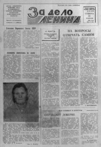иИГАИ СЕВЕРНОГО РАЙКОМА КПСС И РАЙОННОГО СОВЕТА НАРОДНЫХ ДЕПУТАТОВ Н О В О С И Б И Р С К О Й ОБЛАСТИ j Выходит по вторникам, четверга** и с у б б о т а м . ! Пр о л е т а р и и в с е х с т ра н, соединяйтесь! А О А О Газета основана 20 июля 1935 года № 24 (6560) СУББОТА 24 ФЕВРАЛЯ 1990 года Цена 3 коп. Заявление Верховнгоо Совета ССР Р я д общественных ор г а н и з а ции и движений, в том числе выступающих с различных, а порой противоположных п о зи ций, призывают провести 25 февраля демонстрации и митин гн в Москве, Л енинграде, д р у гих городах Советского Союза . Многие советские люди вы р а ж а ют тревогу по поводу того, что к массовым митингам и шествиям могут присоединиться экстри- мнеты и д а ж е преступные э л е менты, преследующие цели, не имеющие ничего общ ег о с с о з и данием и демократией. Верховный Совет СССР о б я зывает правительство СССР, Советы народных депутатов на м естах предпринять все н е о б х о димые меры в защ и ту п р авоп о рядка, Митинги и д е м о н с т р а ции могут проводиться только в том случае, если они са н к ционированы, а место их проведения конкретно определено. Все нарушения должны быть решительно пресечены. Перестрой ку и демократию н е о б х о дим о н а д еж н о защитить с помощью Закона , Верховный Совет СССР. КОСМОНАВТЫ ВОЗВРАТИЛИНСАЬ ЗЕМЛЮ 19 февраля 1990 г ода после выполнения запланированных р абот на б о р т у н а у чн о -и ссл ед о вательского комплекса «Мир/» космонавты Александр Викторенко н Александр Серебров возвратились на Землю . С п ус каемый аппарат космического корабля «Сою з ТМ-8» с о в е р шил посадку в заданном р ай оне в 55 километрах с е в е р о - в о с точнее го р о д а Аркалыка. С а м о чувствие космонавтов после приземления х ор ош е е Р а б о т у на околоземной орби те п р о д о л ж ают Анатолий Соловьев и Александр Баландин. Программа ра бот , выполненная экипажем пятой основной экспедиции орбитальног о ' комплекса «Мир», включала в с е бя геофизические, астрофизически.- и медико-биологические и с сл едован ия , технологические, биотехнологические и техничес кие эксперименты. На протяжении 166-суточно- го пребывания в невесомости регулярно проводились медиц и н ские о б сл ед о в а н ия экипажа . П о лучены новые сведения о р а б о т осп особн ости и функциональном состоянии человека на р а з личных эта п а х полета З а время полета экипаж с о вершил пять выходов в откры тое космическое пространство . Результаты р абот , выполненных экипажем пятой основной экспедиции, б у д у т использованы в различных отр аслях науки и народного х озя йст в а страны. (ТАСС ) Ореди животноводов-тр ехтысячников , приехавших на свою первую встречу, была и Кина Ф едоровна Колмакова, доярка к ол хоза «Память Л ен ин а» . В прошлом г о д у она надоила от коровы в среднем по 31 5 0 килограммов молока. Д о б р а я слава о б этой доярке щла по району еще т ог да , когда она ж ил а в Больших Куликах. Д в а д ц а т ь пять лет о т р а б о т а л а там на ферме, а общий с т а ж ж ивотноводства у Нины Федоровны исчисляется почти четырьмя десятками лет. Сейчас Нина Ф едоровна на пенсии, осенью ушла, но не ос тавила ф ерму . — Пока еще есть силы, так что б у д у р а б о т а т ь ,— говорит она. — Р а б о т а наша тр удная , но если рядом хорошие подруги, есть помощники, то и на ферму идешь с удовольствием. Д у м а ю , и нынче не п одв едем колхоз, справимся с намеченными о б я з а т е л ь ствами. У нас все доярки опытные, с т