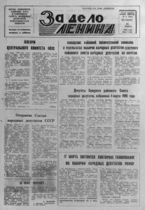 ОРГАН СЕВЕРНОГО РАЙКОМА КПСС И РАЙОННОГО СОВЕТА НАРОДНЫХ ДЕПУТАТОВ НОВОСИБИРСКОЙ ОБЛАСТИ Выходит по вторникам, четвергам ■ субботам. П р о л е т а р и и в с е х с т р а н , с о е д и н я й т е с ь ! дело Г а з е т а о с н о в а н а 2 0 ию л я 1 9 3 5 г о д а № 32 ( 6 5 6 8 ) ЧЕТВЕРГ 15 МАРТА 1 9 9 0 г о д а Ц е н а 3 к о п . ПЛЕНУМ ЦЕНТРАЛЬНОГО КОМИТЕТА КПС 11 м а р т а 1990 года начал р а б о т у Пленум Ц ентра льного Комитета КПСС. Н а р а с см о т рение П лен ума внесены с л е д у ющие вопросы: 1. О внесении на вне оче ред ной, третий С ъ а э д 'н ар о д ных д е п у т а т о в СССР пред ложений по с та ть я м 6 и 7 Конституции СССР. 2. О с рок ах созы в а XXV II I съ езда КПСС, проведения отчетно-выборной кампании в п а р тии,, н ф м е представи тель ств а и порядке избрания д ел ег ато в съ езда . 3. О проекте У став а КПСС. 4. О проекте полож ения о Ц ентр а льн о й К о н т р о л ь н о -Р е в и зионной Комиссии КПСС. 5. Выборы н а родного д е п у т а та СССР о т КПСС. С д о к л а д о м на Пленуме вы сту пил Генеральный секретарь Ц К КПСС М. С. Горбачев. Участникам Пленума была предоставлена возможн ость предварительно ознакомиться с проектом У став а КПСС и д р у гими матер и ал ам и по вопросам повестки д ня . Н а Пленуме о б р а з о в а н а р е д а к ц и о н н а я комиссия п0 д о р а б о т к е проекта У став а КПСС и подготовке других до к ум ен т о в П л ен у м а ЦК . Пленум принял решение внести в п о р яд к е з а к о н о д а т е л ь ной инициативы на р ас смотрен ие внеочередного, треть его С ъ е з д а народных деп утатов С СС Р п роект З а к о н а СССР об изменениях и дополнениях Кон ституции (Основного З а к о н а ) ССС Р по вопросам политической системы (с татьи 6 и 7 К о н сти ту ция С С С Р ) . ' М ате р иа лы П лен ума по лн о стью б у ду т опубликованы в г а з е т е « П р а в д а » и в изложении в других ср е дс тва х массовой информ ации. С сообщением по вопросу о в ы б о р а х н а родного д е п у т а т а СССР о т КПСС выступил п ред сед ате ль избирательной к о миссии В. А. Коптюг. В резу л ь т а т е тайного г о л о со в ан ия народным д епутатом СССР от КПСС избран Н. П. К устарев — кузн ец Горьк ов ского ав томобильного з а в о д а . Пленум ЦК КПСС п р о д о л ж а ет свою р аб о ту . ( ТАСС) Открытие С ъ е зд а *- народных д е п у т а т о в СССР Моск ва. (ТАСС ). 12 марта в Кремле начал работу внеочередной третий С ъ е зд народных деп утатов СССР Он созв ан в соотв етствии с постановлением Верховного Совета СССР, прин я т ы е 27 ф ев р ал я нынешнего года. П а р л а м ен т страны п ри з н а л необходимым учредить н о е т П ре зидента Союза С о в е т с ких Социалистических Р е с п у б лик. И теперь народным д е п у т а там предстоит рассмотреть п р о е к т З а к о н а об учреждении поста и внесении соответствующих изменений и дополнений в К о н ституцию СССР , решить в о п рос о>б избрании Президента СССР: П р е дл а г а е тс я т а к ж е р а с с м о т реть п роект З а к о н а С СС Р об изменениях и дополнениях Кон с т и т у ц и и СССР |по вопросам (политической системы (статьи 6 и 7 Конституции С С С Р ) . Этот вопрос в порядке з а к о н о д а т е л ь н о й инициативы внесен на рас смотр ение С ъ езд а н а р о д ных д еп у т а т о в СССР Ц е н т р а льным Комитетом КПСС. Предстоит внести поправки в Конституцию ССС Р в связи с принятием парлам ентом страЯ ВАС У в а ж а е м ы е тов арищи и з б и р а тели, п р и б л и ж а е т с я в р е м я в т о рого э т а п а выборов в народные деп у т а ты Р С Ф С Р . Я сердечно б ла го да рю всех избирателей , отдавших свои го л о са з 