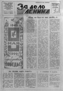 «Как он был от нас д а л ё к . . . » 45 лет прошло с тех пор, как победой закончилась в е личайшая война в истории челов ечества. Эта война с т а ла о громной трагедией на земле, унесшей десятки миллионов жизней — больше, чем за все известные войны. Великие ж ертвы заплатил за п обед у советский народ. Нот такой семьи, к о т о р у ю не к о с нуло сь бы ее опаляющее ды хание. Зол отыми буквами вписаны в летопись Вооружен ных Сил СССР подвиги воинов -еиби- ряков в годы Великой О т ече ственной войны. Они п о к а з а ли образцы стойкости и х р а б рости, м уж е с тва , уча ствовали во всех главных сражениях : защищали М о с к в у и Сталин град, о с в о б о ж д а л и Украину, Белоруссию , Прибалтику, многие страны Европы, ш т у р мовали Берлин. Всему миру известен вклал сов ет ски х народов в р а з г р о ме фашистской Германии. Э т о т вклад был определяю шим в о св об ож д ен и и народов Европы, и ие только Европы, о т смертельной угрозы фашизма. И хотя на территории н а шего района не вел о с ь боевых действий, но со тни наших земляков остались на полях сражений Великой О т е ч е с т венной о т Москвы и д о Б е р лина, о т Черно го моря и до Заполярья, в деревнях и г о р о д а х Европы м о ж н о в с т р е тить на бр ат с ких могилах фамилии Гламаздиных, К р а с новых, Кыштымовых , Мама- ковых , Никитенко и другие фамилии, т а к привычно з в у чащие в нашем краю. Около 6000 северян было м о б и л и з о вано за г оды войны, каждый третий из них не вер нулся с полей сражений . А какой ценой наших с а м о отвержен ных женщин д а в а л о сь выполнение плана п о с т а в о к фрон ту . « В с е для ф р о нта, все для п о б е д ы ! » — э т о был не п р о с т о лозунг , а это было целые*, к а ж д о г о дня жизни о ст а вш и х ся в тылу со в е т ск и х людей. И на фрон ! п о ступ ал а не т о л ьк о п ро д у к ция к о л х о з о в и с е л ь х озпр ед приятий района, но и каждый житель с в е р х э т о г о стремился ч т о - т о д а ть бойцам Красной Армии, отказывая се б е в са мом н еоб х о ди м ом . Только в нашем районе жители о т правили на фронт 711 пап валенок, 1055 пар руковиц, 1559 килограммов шерсти, 1680 — мяса, 3123 — масла, 1423 овчины и денег 1327368 рублей. Хочется напомни i t , эти цифры в наши дни, когда у нас есть п о з а б ы т ы е , , поэм-- брошенные вдов ы,, те самые, кот оры е эти килограммы1- и рубли в тру дное время ж е р т вовали во имя победы над врагом . Х очет ся напомнить эти цифры в связи с тем, что сейчас раздаются призывы всяких «н еформальных» и « п о л у ф о р мальных» лидеров, с т р е м я щихся ди скредитировать н а шу армию, умалить значение Великой Победы , давшейся невероятными усилиями всег о нашего народа. Приумножая традиции фрон товиков , их сыновья и внуки ныне в едином боевом с т р о ю д о би в а ю т с я высокой б оев ой г о т овн о сти частей - и подразделений. Из числа военно служ ащих нашего р ай она, служивших в А ф гани ста не, два награждены орденами , пять — медалями. Отлично выполняют свой д ол г перед Родиной и наши земляки - - Александр Г о р б у н о в , Юрий Старников, Дмитрий Урбах, Александр Кра снов, Виктор Х охл о в , Сергей Никитин. С каждым годом все м ен ь ше и меньше о ста е т ся в е т е р а нов. Х о р о ш о , что, наконец-то, мы заговорили о милосердии в о вес ь г о л о с , о т ом , что мы растеряли в наш век в с е о б щ е го дефицита. П о э т о м у я х о чу от ст уп и т ь о т п р и н я т о ю перечисления ветеранов, активно уча ств ую щ и х в о б щ е ств енной жизни р а й о н а , и назвать тех, к ого