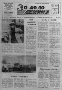 Газета основана 2 0 июля 1 9 3 5 года № 102 (6638 ) СУББОТА 25 АВГУСТА ОРГАН СЕВЕРНОГО РАЙКОМА КПСС И Р А ЙО ННО ГО СОВЕТА Н А Р О Д Н Ы Х ДЕПУТАТОВ Н О В О С И Б И Р С К О Й ОБЛАСТИ В ы х о д и т по в т о р н и к а м , ч е т в е р г а м в - у б б о т а м . Пролетарии всех стран, соединяйтесь! ★ ★ ★ КО ЛХО З «ПУТЬ к КОММУНИЗМУ»: СТРАДА ДЕРЕВЕНСКАЯ ★ 4 ★ МИНУС СПЕЦНШС1АМ И ОРГАНИЗАТОРАМ Д л и т е л ь н о с т ь х ранения и к а ч ество силоса во многом зави- . сит от д оброс ове стн ости т р а к ториста: чем плотнее утр ам бу е т , тем б ла го пр и ят не е среда д л я з е леной массы. В К ордон е на силосной т р а н шее р а б о т а е т Анатолий Авимович Иванов. Техника у него не совеем но в а я , но многолетний опыт м е х а н и з а т о р а не д о п у с к а е т простоев . Поломки Анатолий Авимович у с т р а н я е т на месте. К о гда мы п одъ ехали , на т р а к торе Т-4 лопнул шланг г и д р а в лики, но б у к в ал ьн о ч е р е з ; пять минут тр а к о т р и с т у ж е снова присту пил к у т р ам бо в к е з е л е ной массы. Помогли знания , приобретенные з а 24 года р а б о ты з а рычагами тр а к т о р а . — Нынче у нас мало т е х н и ки. Н а уборке силоса р а б о т а е т четы ре ком байна , а о б с л у ж и в а ют их всего семь машин. О т сюда, ес тественно, и простои на поле , — узн ал и мы здешнюю о б стан о в к у из р а з г о в о р а с А н а толием Авимовичем. П о к а мы б е се до в ал и с т р а к т о ристом, п о д ъ е х а л груженньн « З И Л » . — Вот у ж е обед , а я емш с д е л а т ь всего три рейса, поскольку ноля распо л ож ены д а л е к о от силосных траншей. Вроде нигде не з а д е р ж и в а е ш ь с я , не о тв л е к а еш ь ся , а больше тр ех рейсо, у нас не п о л у ч а е т с я , — п ове да шофер Василий Агеевич Собо л е в . — Мы-то, води тели , за гр уж е ны , не простаив аем , а во нашим к ом байнерам приходите д е л а т ь вы н уж д ен ны е перек урь —- п р о д о л ж и л р аз го в о р Васи лий Агеевич. Арифм е тик а пр о ста , не нужп> быть специалистом сельскоге х о з я й с т в а , чтобы не заметит! кр а й н е плохую о рганизации т р у д а и не подсчитать , что каж дый к о м байн ер з а г р у ж а е т в д ен ь 10, в лучшем с л у ч ае 14 ав томашин. Это при д в е н а д ц а тича совом -то рабочем д'ле! З д е с ь у ж налицо низкая п р о изводительнос ть груда. Н о \ о .че т с я поставить минус не ком бан не рам , а специалистам и эр г ан и з а т о р ам п роизводств а. С. ОГАРКОВА. На снимках: идет з а к л а д к а си лоса; т р а к т о р и с т Анатолии Авимович И в ан о в . Фото С. Ф ед о р о в а . Д О Б Р А Я Т Р А Д И Ц И Я В Б и а з е ст а л о -доброй т р а д и цией п р о во д и ть б р а к о с о че т ан и я в Д о м е к у ль туры . Т о р ж е с т в е н ный д е н ь в так ой праздничной об с тан о в к е м о л о д о ж ен ам з а п о м инаетс я н адолго . Б о л ь ш а я з а слуг а в этом Н а т а л ь и Петровны З а х о в а й л о . Она, к а к никто д р у гой, с т а р а е т с я р а зн о о б р а зи т ь свою п р о г р ам м у и, в з а в и с и м о сти от в о з р а с т а ж е н и х а и н е в е сты, с о с т а в л я е т индивидуальный план п р о в е де ни я к а ж д о г о мероп рия тия . Н а т а л ь я П е т р о в н а п о н им ает, что от орг ан и з ац и и п р о в е д е н и я т о р ж е с т в а з а в и с и т д у шевный настр ой м о лодож ен ов . И ведь н ед ар ом в н а р о д е г о в о р я т , что осень — п о р а с в а д е б . В Б и а з е у ж е в торы е в ы ходные п о д р я д п р о во д я т с я т о р ж е с т в е н н ы е вступ лен ия в брак . Н а прошлой недели за к лючили с у п р уж е с ки й союз молодой ж е них и совсем юная н е в е с т а — А л е к с ан д р Соболев и С в е т л а н а Ш а р у к . В п р ед сто ящ ие в ы х 