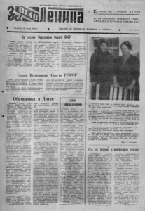 П Р О Л Е Т А Р И И RCEX С Т Р А Н , С О ЕДИ НЯ ЙТЕС Ь ! 19 ЯНВАРЯ 1991 г . , СУББОТА, № 9 ( 6 7 0 1 ) ОРГАН СЕВЕРНОГО РАЙОННОГО СОВЕТА НАР ОДНЫХ ДЕПУТАТОВ И РАЙКОМА КПСС ♦ О с н о в а н а 20 и ю л я 1 9 3 5 г. ♦ ВЫХОДИТ ПО В Т О РН И К А М , Ч Е Т В Е Р Г А М И СУ Б БОТАМ Цена 5 коп. На сессии Верховного Совета СССР Москва. (ТАСС) . Вопрос о новом министре иностранных дел был рассмотрен 15 я н в а р я на сессии Верховного Совета СС С Р . Он обсуждался в рамк ах формирования каби нета министров страны. Взявший слово Президент С С С Р М. С. Горбачев сообщ ил , что в его беседах с Э. А. Ш е в а р дн ад зе тот н а с т о я тельно подтвердил свою просьбу об отставке. Президент в ы с к а з а л в адрес Э. А. Ш е в а р д надзе с л о в а признательности з а самоотверженный т в о р ч е с кий труд и п р е д л о ж и л на пост министра иностранных д е л СС С Р к а н д и д ат у р у нынешнего посла С С С Р в США А. А. Бессм ер тных . Ре ком е п . д у я кандидата членом Союзного п а р л ам ен та . Пре зидент подчеркнул его большой проф ессионализм, отм етив , что это челов ек широких в з г л я дов и высокой к у л ь т у р ы . Верховный Совет д а л сог ласи е на н а зн а че н и е А. А Б е ссм ер т ны х министром иностранных дел. На этом же з а с ед а н и и было дано с о гл ас и е на назначение Б. К. Пуго министром внутренних д е л с тр а н ы . Участники сессии з а в е рш и ли об суждени е основ законо дательстп а Сою за С С Р о з а нятости н а с ел е н и я . Депутаты приняли этот правовой акт . ко торый п ри зв ан обеспечить со циальную з а щ и т у советских гр аж д а н при переходе к р ы ночной экономике . Созыв Верховного Совета РСФСР Т р еть я сессия Верховного Со в е т а Р С Ф С Р будет со зван а 2 9 я н в а р я . Т а ко е решение принято н а состоявшем ся 15 я н в а р я о ч ер е д ном заседании Президиум а Верховного Совета республики. В повестку дня сессии р еком ендовано вк лю чить около 4 0 важнейших за кон оп ро е к то в и постановлений по вопросам реор гани зации о р ганов государственной в л а с ти и введения поста П р е з и д е н т а Р С Ф С Р , экономической р е ф о р м ы , социального ра зви т и я и социальной за щ и т ы г р аж д а н при п ереходе к рынку, рев л и зации программы в о зрож де н и я российской д е р ев н и и р а зви т и я агропромышленного компл е к с а , правовой реформы. (ТАСС) Обстановка в Литве Вильнюс. (Спец. корр. ТАСС). Р е з к о обострилась ситуаци я в стране. Н а г н е т а е мая в течение последних дней руководством республики об щ е л к а н о - политическая обстановк а привела к тому, что власти потеряли кон троль над положением в Вильнюсе и Каунасе В этой связи во и з б ежание массовых б е спор я д ков. созданный накануне Комитет национального спасения Литвы вынужден был принять меры но стабилизации о б ста новки. Поскольку по ка н а л ам национального телевидения и радио постоянно велись а н ти со в е тс ки е передачи, з вуч а л и нападки па С С С Р , ру ко в одство Комитета национального с п а се ни я приняло решение взя т ь под контроль г о с у д ар с т в е н н ы е , телевидение и радио. .‘В ночь на 13 я н в а р я по просьбе Комитета н а ц и он а ль ного спасени я подра зделени я десантников и милиции за н я л и телевизионный центр реснуб. лики. Дежуривш и е у з д ани я т ел ец ен тр а сторонники «Саю- днеа» пытались п р еп ятство вать нм. К несчастью, в р е з у л ь т а т е происшедшего с т о л к новения имеются ж ертвы. Б о л ьш а я часть людей постр а д ал а в р е зу л ьтате давки , возникшей после п р ед упр ед