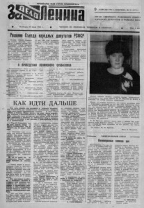 ПРОЛЕТАРИИ ВСЕХ СТРАН, СОЕДИНЯЙТЕСЬ! 9 А П Р Е Л Я Н>91 г. В Т О Р Н И К , № 43 (6735) О Р Г А Н С Е В Е Р Н О Г О Р А Й О Н Н О Г О С О В Е Т А Н А Р О Д Н Ы Х Д Е П У Т А Т О В И Р А Й К О М А К П С С О с н о в а н а 20 июля 1035 г. В Ы Х О Д И Т П О В Т О Р Н И К А М , Ч Е Т В Е Р Г А М И С У Б Б О Т А М Цена 5 коп. Решение Съезда народных депутатов РСФСР ешо м ч и е М л р с в е о я а д с ж н к 5 о н в й а ы а ) . х пр ( С е р Т л ъ е А я ш е С з е д С т н р ) и е . й т н П и а р й р и о з н д а (в н я в н т ы е и р е х р д а е ц п и ут и а . то О в ди Р н осс и и з йс д к о о к й уме Ф н е т д о е в дн р— уы ед м е п и в л о ые с н с т о иш а р и н г и а о м н в п и л а о м е л н и н и о е м г Р о о о с С ч у и Фд п й а е С р р Р с е т р м в а д е е с л жн п я осуществления н зыы в х а ме о р ч . ер У ед тв н е о р г жо де а С н н ъ т е и с з р к д о р а к из с и —о с н 2 а 1 м д а а я та 19 в 9 ы 1 бо г р о о д в а, п у р с е т з а и н д о е в н л т е а Р С Ф С Р — 12 июня 1991 г ч о и д л В а о е . с ч ь еро о мбсужв де п н я и тн е ицу о з с а т к а о л н ь ных вопросов повестки дня в—енно о м на у ц ст и р о о н й а с л т ь в н е о-г ос Р у С д Фар С ст Р (о Федеративном договорз), об итогах реф ерендума з Р е С Ф су С ве Р ре и нн о ых до р го ес в п о у р б е ли о к. С о Р ю е т с ш а а е мн н о о в з л а е п н о р и с и й н н о я в т у ь п , о п п о р э р о т у е и ч к м и т в ы в д о о п п о р о а о с - б ту от Г а Р е т н С ь е Ф р и а С л х Р ь . н В ы е м рховн п о р м ок у ур С о о р в о е м пР а С С н Фко С з в Р а . кл у ю тв ч е и р т ж ел д ь е н н ым В . с Г л . о С в т о е м д п а а те С л ъ ь е зде Вер в х ы о с в т н у о п г и о л П С р о е в д е с т е а Р С Ф С Р Б . I I . Ельцин. О ПРОВЕДЕНИИ ЛЕНИНСКОГО СУББОТНКИА Постановлением ного комитета партии бю о р т о 2 С В ев мер а нрт о а го ра 1 й 9 о 9 н 1 года решено: п честь 121-й годовщины В. И . Лепина провести в районе 20 апреля 1991 года ленинский субботник . Д л я подготовки и проведения создать штаб в следующем составе: , Ф едул о в А . Я. — 1-й секрет арь райкома К П С С , начальник штаба. Л у кь япч у к В. И . — зам. председателя райисполкома. Зырянов Г . Г — председатель Р А Н О . Ф едорова Г. Д . — зам . председате ш райисполкома. Зарубина Н . Т . — у пр авляющ ая агро промбанком. Новикова 3 . И . — старший инспектор Ц С У . Краснов А . II — 1 й секретарь райкома В Л К С М . Д ер гач А . Н . — председатель райкома профсоюза работников А П К . Коновалов А . I I . — редактор газеты .«За Дело Л е н и н а » . М аляреви ч Г. райкома К П С С . Д . — ответорганизатор ган Р и е з к а о ц м и е я н м дов с а о т в ь ме п ст е н рв о ичны с м ад п мар и т н и и й с н т ыра м цие о й р , профсоюзными комитетами создать штабы для проведения субботника. В день суббот т н и и н к Р г а е и д . а в кц т и р и удо г в а ы зе х ты ко « л З л а ект д и е в л а о х Л п е р н о и ве н с а т » и , м ми е с т т о н вк о иму и ра п д р и о о в в е е д щен а и н я ию суб о б с о в т е н щи а к т а ь . ход подгоК А К И Д Т И Д А Л Ь Ш Е К а к жить дальше , как сохранить и упрочить хозяйст во , как использовать его потенциальные возможности, тояло оно в новых экономических у словиях — об этомчто се б г ы од у н с я б н в д е а ы у н т м х ь н а о юв п о т о р п с и р т в х р о о с о к д о о и в о л т н х с в и я оз п с е в р т о о о « я и с Н т з н в о о о п в в д а а н с я о т п м в о же в н и е н н с з а о т н к й ь с е » о и , б д с г н т с д я о в е ц е н и с п е н а й о л ы к ч ь е а а н с о с , й и м к л о н с ы ф г о д г е а и о р е р н р . а е е с И р з с е е ч р ш и о в е с т ы о н ы . О б этом н состоялся у нас разговор с председателем колхоза С . А . И З Ю Р О В Ы М . бы — ид С т е и р г е д й аль А шл е е , к с е н е у в ж и н 