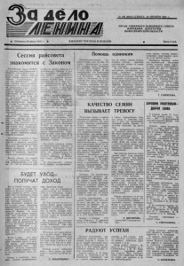 ■Nv 12 6 ( 6 9 1 8 ) С У Б Б О Т А 19 О К Т Я Б Р Я 1991 i . ОРГАН СЕ ВЕР НОГ О РАЙОННОГО СОВЕТА НАРОДНЫХ ДЕПУТАТОВ НОВОСИБ ИР СКОЙ ОБЛАСТИ ♦ Основана 20 июля 1935 г. ♦ ВЫХОДИТ ТРИ РАЗА В НЕДЕЛЮ. ♦ Цена 5 коп. Сессия райсовета знакомится с Законом Опуб л ико в ан З а к о н Р С Ф С Р «О местном с а м о у п р а в л е н и и в Р С Ф С Р » . Он в ош е л в си л у , а поэтому в с я работа Советов будет о тны н е с т р о и т ь с я по его с т а т ь я м и п о л ож ени ям . До сих пор д е я т е л ь н о с т ь с о в е т ских о р г а н о в вл а с ти р е г л а м е н т и р о в а л а с ь в основном у к а з а ми с е м и д е с я т ы х годов о п о с е л ковых, »город ских и с е л ь ск и х Советах н а р о д ны х депутатов . Естеств ен но , з а минувшее д е с я т и л е т н е — д а ж е более чем з а д е с я т и л е т и е — в о б щ е с т венной ж и з н и с т р а н ы п р о и з о шли з н а ч и т е л ь н ы е п е р ем ены . Да и с а м а Р о с с и й с к а я Ф е д е р а ция с т а н о в и т с я иной. С л е д о ва т ел ьн о , п о я в л е н и е этого З а кона пр о д и к то в а н о врем е н ем и си ту аци ей . А п о с к о л ь к у З а к о н нов и неи звестен ш и ро ком у к р у г у д е п у т а то в , п р еж д е всего .местных, с е л ь с к и х , Советов, то и !>ешено б ы л о п ро в ести сессию районного Со в ета , на которую п р и гл а сил и всех п р е д с е д а т е лей с е л ь с к и х Советов, р у к о в о ди телей п р е д п р и я т и й и к о л х о зо в. ч л е н о в ра йонной и з б и р а т ел ьной комиссии . Основным вопросом и с т а л о о б с у ж д е н и е , а точ н ее — з н а ком ство с З а к о н о м р е с п у б л и ки о м естном с ам о у п р а в л е н и и . П р о к у р о р район а В. В. Пет рищ ев п о с т а р а л с я подробно р а с с к а з а т ь о новом, что вносит З а к о н в принципы районного и с е л ь с к о г о с а м о у п р а в л е н и я . Нового н ем а л о , но г л а в н о е — вв е де н и е и н сти ту та м е с т ной а д м и н и с т р а ц и и и ее г л а вы. Это у ж е не исполком р а й с о в е т а , но многое в з я т о и з его д е я т е л ь н о с т и . От л и чи е в т о м , что исполком — к о л л е г и а л ь ный о р га н с с о в е щ а т е л ь н ы м го л о сом , а у м естной а д м и н и с т р а ц и и б о л ьш е п р а в , б о л ьш е о б я з а н н о с т е й , да и г л а в е м е с т ной а дмини стр ации д ано п р а во е д и н о н ач а л и я . В. В. П е т ри щ е в и пояснил , в чем б у д е т з а к л ю ч а т ь с я р о л ь нового д о л жно стно го лица. З а к о н о местном с а м о у п р а в л е н и и в Р С Ф С Р т р е б у е т д е т а л ь н о г о и зуч ени я в д а л ь н е й шем. Видимо, т а к у ю уч еб у необходимо про води т ь к а к в районном м асш т аб е , т а к и н е поср е дс т в е н н о на м ест ах . Г ла в а местной а д м и н и с т р а ц и и б у д е т и з б и р а т ь с я на о с н о ве всеобщего р а вн о г о п р а в а п р и тайном голосовании . Это о п р е д е л я е т новый З а к о н . П р е д в а р и т е л ь н о вы б оры н а з н а ч е н ы на 8 д е к а б р я (если Пр е зи д е н т Р С Ф С Р не н а л о ж и т вето на п о стано вл ени е Верховного Сов е т а Р С Ф С Р о н а з н а ч е н и и в ы б оро в ) . С л е д о в а т е л ьн о , под го т о в к у к ним у ж е пора н а ч и н ат ь . И об этом го во р и л а И. И. Д ь я к о в а , с е к р е т а р ь С ев ерно го районного Совета. На сессии р е ш а л с я вопрос об и з б и р а т е л ь н ы х о к р у г а х и ком и с си я х . Подготовку и п р о ведени е выборов по р у ч ен о провести тем и з б и р а т е л ь н ы м ком и сси ям , которы е вы б р а н ы в с в я з и с вы б о р ам и в В е р х о в ный Со в ет Р С Ф С Р на п ять л ет . По о б с у ж д а е м о м у вопросу б ы л о п р и н я то поста н о вл е н и е . Б УД Е Т У Х О Д - П О Л У Ч А Т Д О Х О Д Вот и п е р вы е осенние з а м о р о зки . И у ж к о л ь лет