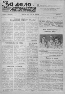 29Ф Е В Р А Л Я 1 9 9 2 г. С У Б Б О Т А № 2 6 ( 6 9 7 4 ) . ОРГАЦ. СЕВЕРНОГО РАЙОННОГО СОВЕТА НАРОДНЫХ ДЕПУТАТОВ НОВОСИБИРСКОЙ ОБЛАСТИ Основана 20 июля 1935 г. -> ‘ ВЫХОДИТ ТРИ РАЗА В НЕДЕЛЮ. Цена 5 коп. .iп ина'та - В колхозах района — В районном Совете ПОЛЕВОДЫ СТРОЯТ ПЛАНЫ М е х а н и з а т о ры ко л х о за « В о сход* у ж е н а чали д у м а т ь о по- севной. Чтобы она прошла б е з з а д е р ж к и , н уж н о горючее. С т о ит оно нынче очень дорого , но б е з пего т е х н и к а б у д е т стоять . Вот и п е р е ч и с л и л о хо зя й с т во на него 100 ты с я ч рублей. Н ач а л а с ь п вы во зк а . К с о жален ию , свой б ензов о з попал в а в а р ию и д о с т а вк а бензина п р е к р а т и л а с ь . Пришлось о б р а т и т ь с я з а пом ощ ью к соседям , в кол х о з « З а в е т ы И льи ча» . Отсюда нашли в о зм ож н о с ть в ы д ел и т ь бензово з . Помог в этом вопросе и «Агроиром- т р а н с » , т а к что е с т ь у в е р е н нос ть в том , что горючее б у дет з а в е з е н о в срок. Пока е го им ее тс я в наличии около 2 0 тонн, но у ж е в ближ айш ую г е . делю Витн нск б уд ет полностью обеспечен, потом з а в о з пойдет з Чебаки. Хорошие с вя зи сохр ан и ли с ь Н е с м о т р я на сегодняшнюю пов семестную наполитизн роваи - ность, з е м л е д е л ь ц ы нашего ра йона о вес енн ем с е в е не з а б ы вают. Уже сейча с в х о з я й с т вах н а ч а л а с ь подготовка к э т о му о т в е т с т в ен н о м у периоду , н а м е ч а ю т с я планы полевых ра бот, о г о в ар и в аю т с я о р г а н и з а ц п ' онные в о п р о с ы .» Т а к , з е м л е д е л ь цы к о л х о з а « Б о р ь б а з а мир» уж е с е г о дн я решили: в н а с т у пившем году необходимо с о к р а т и т ь площади посева п о д со л неч ни к а , а в з ам ен р а з м е с т и т ь д р у ги е к у л ь т у р ы . Есть ж е л а ние д о с т а т ь сем е на гречихи , но к у п и т ь их — пока н е п р е д о с т а в л я е т с я во зможности . О с е м е н а х з ер н о вы х п о л е в о ды по за бо т и ли с ь з а р а н е е , д в а жды п ров ери в их в семенной л аб о р а т о р и и на к ач ество , з а с о ренность и в схож е сть. А н а л и зы п о к а з а л и , что все им ею щ и е с я с ем е н а кондиционны и выП еко торо с вр ем я н а з а д в Веселовской бригаде ко л х о за «П у ть к к омм уни зму» прош л о собр ан ие , на котором кол хо з ники долго суд и ли -р яд и ли , к а к нм ж и т ь дал ьш е : р аб о т а т ь на |(ашне поро зн ь, к аж д о м у на св е ем н а д е л е , или п о -п р еж н е му бы т ь _в м есте , единым к о л лективом . ' Р еш и л и , что р а з ъ е динение ни к чем у хорошему нс* при ведет . З а многие годы Люди п ри выкли к общему д е л у . к общ ем у т р у д у . Эту же мы сл ь п о д т в ерж д аю т и к о л х о зники д р у ги х брига д. Что ж, р а б о т а т ь вместе все- т аки л е г ч е , в едь пока м е х а н и з а ц и я всех процессов д а л е к о не на вы сш ем уровн е . Хотя не ср а в н иш ь т р у д д о я р о к двадца - т н л е т н е й давности с ны н еш н и ми. Но предс тои т еще многое с д е л а т ь д л я того, чтобы не н о си ли они т я ж е л ы х ведер, а от коровы надаивали но пя ть- ш е с ть ты с я ч кил о гр амм ов м о л о к а . Пока э т о т ол ько меч ты , и д л я их о с ущ е с т в л ен и я д е л а е т с я вес возможное ; д о яр к и бр и г а ды добросовестно т р у д я т - у хо з я й с т в а и с э к сп ед и ц и ей . Р а н е е это были ш еф ы к о л х о з а , п т е п е р ь по во зм ож н о с ти вы д с . л я ю т ко е-какую т е х н и к у . П р и о б р е т а т ь что-то повое к о л х о з нынче не нам е р ен . На т а к и е покупки нс р а с с ч и та н а к а з н а ■хозяйства. Впрочем , и с т р о и т ь ны н че т о ж е ничего не б у д у т . Д л я этого надо и м е т ь огром иую п ри был ь, а у н