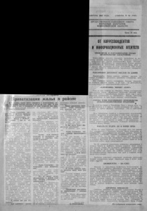 АВГУСТА 1992 ГОДА. С У Б Б О Т А № 9 2 (70-40) ОР ГАН СЕВЕРНОГО Р А Й О Н Н О Г О СОВЕТА НАРОДНЫХ ДЕПУТАТ ОВ НОВОСИБ И Р СКОЙ ОБ ЛАС Т И Цена 25 коп. ОТ КОРРЕСПОНДЕНТОВ И ИНФОРМАЦИОННЫХ АГЕНТСТВ Приватизация жилья в районе В ) следне е вр ем я много говори тс я о п ри в атизац ии ж и л ья. Р а шчиые бытуют мнения и слухи на этот счет . А как обстоят тел а у нас в С еверном? С этим вопросом м ы обратились к пр едс ед ателю комиссии по приватизации ж и л ь я Л. С. К О Н Д Р А Ш К И Н О И . — Л и д и я Семеновна , прошел год со времен и при нятия Верховным Советом Р С Ф С Р « З ак о н а о приватизации ж и лищного фонда в Р С Ф С Р » . Что сд е л а н о у нас за это в р е м я ? ^ — Дей ствительно , з ак о н о п ри в атизац ии ж и л ь я в России при н я т в на ч ал е июля 1991 года. Однако в нашем р а й о не о ценоч ная комиссия по п р и в а т и з ац и и ж илищного ф о нда с о з д а н а лишь в середине ф е в р а л я этого года р еш ен и ем сессии районного Совета н а р о дн ы х депутатов. Состоит ' она из 9 человек. В нее в х о д я т п р е дс та вители б ан к а , с а н эп идстанции. райкома п р о ф с о юза работников сельского х о з я й с т в а . милиции , о тд ел а а р х и т ек т у ры , народные д е п у т а ты. Первые полтора м е с я ц а к омис сия з а н и м а л а с ь о р г а н и зац ионными вопросами. Р а б о т а т а к а я проводится в п ер вы е , поэтому было очень много вопросов и неясн остей . Приш л о сь вы е з ж а т ь в Н овосибирск и соседние рай оны д л я п е р е н я т а я опыта, у з н а ть необходимые нормативные д о кументы . Р а з р а б о т а н о « П о л о ж ен ие о приватизации ж и л и щного фонда в Северном р а й оне», З а к лю ч е н ы договора с адм и н и с т р а ц и я м и предп риятий и ор г ан и зац и й на п р и в а т и з а цию ведомственных квартир . З а это в р е м я был сд ел ан а н а л и з всего имеющегося ж и лого фонда местных Советов и ведомственного , ст о ящ е г о на б а л а н с е предприятий и ор ган изац ий . Собраны с в е д е ния о балансовой и о с т а т о ч ной стоимости общей и ж и лой площади всех к в ар т и р , начислен процент износа. На основании этих данных о п р е д е л е н а величина стоимости 1 к вадратн ого метра общей п л о щади ж и л ь я среднего уровн я к а ч е с т в а (б азов ая стоимость). — И к акова она д л я С е верного? — Д л я районного цен т р а она со с т а в л я е т 481 рубль. (Д л я каждого на селенного п у нкта э та цифра будет своя). — Какой р а з м е р площади при при ватизац ии п е р е д а е т с я бесплатно? Сессией районного С о в е т а народных д епу татов у с тановлен норм ати в б есп ла тн о передаваемых в собственность гр аж д ан ж и лы х помещений в р а з м е р е 24 кв. м е т ров на ч е л о в е к а плюс 2 4 кв. м е т р а на семью. — З н а ч и т , если пл ощ ад ь к в ар т и ры не п р е вы ш а е т эти к в ад р а ты , то к в а р т и р а п е р е д а е т с я бесп ла тн о? — Нет. это вовсе не о з н а чае т. что е сли п л о щ а д ь п р и вати зи руемой к в а р т и р ы м е н ь ше норматива б е сп л а тн о п е редаваемого ж и л ь я , то к в а р тира п е р е д а е т с я беспла тно . Частично при дется вы к у п а т ь и зак о н ны е 2 4 кв. м е т р а , е с ли к в ар т и р а имеет п о в ы ш е н ные потр еби те ль ски е к а ч е с т ва (вы сок а я б а л а н с о в а я с т о имость. низкий процент и з н о са. на личие б л а г о у с т р о й с тв а , расположение в цен т р е н т. д ). — Лидия С ем ен овна , что необходимо д л я п р и в а т и з а ции? — Согл асие всех с о в е р шеннолетних членов семьи. Ну и, кончно, наличие п р о писки в этом доме. — Все ли ч лены семьи, проживающие в данной к
