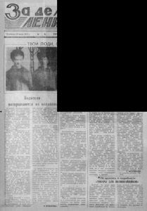 3 ноября 1992 года. № 132 ( 7 0 8 0 ) # « З А Д Е Л О Л Е Н И Н А » 3 стр. СТУПЕНЬКА К СУДЬБЕ О, это б ы л о давно, аж четыре года назад. На одном из первых ур ок о в у Галины Дмитриевны Багровой весь 5 « в » писал необычное сочинение: в Прошел год. Ч то изм енилось во м н е » . Т е п е р ь , быть может, каждый из них выдал бы учителю тр авильные , но неправдивые исповеди, а тогда, в 10— 11 л е т . писалось так как д ум а л о с ь . И . т и п о л у ч и лось: « В у ч е б е у меня не очень важно, но я как-то изменился с т а л маленьк о за ниматься... - « П р о ш е л год, я стал немного л у ч ш е учиться. ..*. « Н а ур ока х я вел себя плохо: р азговаривал с товарищем но п а р те . ..* . Обычные признания обыч ных маль чиш ек ? Вероятно , да. В ед ь каждый из нас и впрямь не « а н г е л не бе с ный » . Места « н а К а м ч а т к е * , подальше от у ч и т е л ь с к о г о стола привычные. И не о них ли сказано у Пушкина: « М ы все учи ли сь понемногу, чему-нибуд ь » '.' Во всяком с л у ч а е т е перь они это признают — М о г л и бы учиться л у ч ше, да не х о т е л о с ь Вспоминаю встречу с Галине й Дмитриевной Вагро- вой. кот рзя покину ла своих « в эш н и к о в » накануне их вы- и у с -а из средней школы На сто ле п".д с т е к л о м леж и т фотография ее класса, и там в третьем (и л и четвертом? ) ряд у стоят рядом Во л о дя Х ло - потов. Саша Ф е дя ев , Володя Тар асенк о — три друга , а в торы давнишнего сочинения, с которого и начал я свой рассказ о них. Сашку, как и обоим В л а д и мирам, сейчас 15 л е т Об^эту пору городские его ровесники страдают проблемами, о которых показывает « Д о 16 и с т а р ш е » , др у ги е молодежны е программы Т В , говорят по радио, а у не го многое бы ло уже о п р е д е л е н о тем, что он бы л парнем деревенским, к т ом у же старшим в сем ье с ы ном, у которого есть первоклассник Славка, братишка, и тринадцатилетняя Анюта, с ес тра. И мама, Нина Ивановна. А вес они — Ф е дя евы . По отцу Сашок — Анатольевич . — М а ть р аботает в Р У С е , у нее х л оп о т много. Я все д елаю по дом,у, — коротко расс к а за л о себе Сашок. — Вилы из (рук не у п ущ у , топор не уроню. Не б ою сь домашней работы. Впрочем, э т о же самое м о жет сказать и В о л о д я Х л о - потоь, и В о л о д я Тарасенко . В чем-то, ест ественно, будет Что бы ни говорили о погоде. а октябрь подарил всем нам н е плохие осенние д е н ь ки. И с ол н ц е свет и ло , и небо го лу би зн ой нежной радовало. И как хорошо в такие дни пройтись по знакомым с детства у лицам , встретиться с т е ми. с кем вырос, ходил в т о л у . А ещ е прекраснее видеть рядом маму, отца, всех своих Родных. — Мне п ов ез л о , — говорил ряд<тюй М а н уй л в. — Ч ер ез н е б о л ьш ую неприятность повезло. З аводи л р укояткой машину, а сна « с ы г р а л а » — и по р уке . Водить машину, е с тественно. не могу. Д а ли отпуск. Но не из- за руки, конечно. М о г л и в части оставить и ходи там. За с л у ж б у отпуск предоставили. Поощ рительный , значит. Иван М а н уй л о в с луж и т в Сибирском военном округе. В принципе, н е да л ек о от Новосибирской о б ла ст и и от дома, значит. Водит « у а з и к » , возит полковников. подполковников — нача льство то есть. И, с од. н й стороны можно уверенно - М о л о д е ж ь в с т у п а е т в ж и з н ь « н е т а к » , но в принципе — схоже. Не знаю, каков б ы л Саша в д е т с ш е — сухощавым, п о л ным или не очень, а вот В о л о д я Х ло п о т о в был то л с тов ат д л я своих-то лет. Это сейчас он вы тяну лся , выравнялся , с тал крепышом среднего р о с та. Каж ется, в росте и отца обогнал.