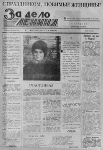 ПРАЗДНИКОМ, ЛЮБИМЫЕ ЖЕНЩИНЫ! 3 М А Р Т А 199 3 Г О Д А . П О Н Е Д Е Л Ь Н И К .N4 2 5 ( 7 1 2 9 ) С е в е р н а я районная газета О с н о в а н а 20 и ю л я 1935 г . ф ф В Ы Х О Д И Т Д В А Р А З А В Н Е Д Е Л Ю \ Ц е н а 50 к о п . ■i m h—i» Hulin н и m ge. * ^ V У ^ Л Л Л Л Л Л A Л У W ^ A / W ^ ✓ ^ Л A Л Л Л Л Л / W ^ ✓ v v : ■ ? Н а ч а л о в е сн ы и о б н о в - £ л е н и я — все д о б р о е и \ | с в е т л о е с в я з а н о с в а ш и м ; и м е н е м , д о р о г и е ж е т ц и - ч | м ы ! I М ы в е р и м в в а ш у м у д - ^ с т ь и з д р а в ы й с м ы с л , ^ в в а ш у л ю б о в ь к ж и з н и ! ^ : В а ш и м п л е н и т е л ь н ы м S s ро I с в е т о м о з а р е н а вся н а ш а ж и з н ь . В с е х в а с , з а м е ч а т е л ь н ы х м а м и б а б у ш е к , д о - 1 ^ ч е р е й , л ю б и м ы х и н е н о в ? т о р и м ы х , п о з д р а в л я е м с > М е ж д у н а р о д н ы м ж е н - ;; с к и м д н е м 3 м а р т а ! З д о - > ;■ р о вья в а м , т е п л а , б е с к о - ? ^ н е ч н о г о о б а я н и я и м о л о - !> г д о с т и ! ? С е в е р н ы й р а й о н н ы й С о в е т н а р о д н ы х | д е п у т а т о в . А д м и н и с т р а ц и я С е в е р н о г о р а й о н а . г * '/ Ч \ Л Л / 'Л / \ А Л Л / \ Л Л А А Л А Л Л Л А Л Л Л А А Л А Л А » Самый лучший под а р о к К а к дети ж д у т новогоднего пр а зд н и к а , так и ж е нщ и ны , н ав е рн ое , ж д у т 8 М а р т а — свой ж е н с к и й день . Какой же подарок они хотят получить и исполнение как о го ж е л а нн я Н ? . Ю С о к о л о в а , 2 3 года, безр або тн ая : — Самое бо ьшое мое ж е лание найти ра боту , А какой по даро к ? Б у л е г ц ветов, ш о колад п с ам о е главное сн и мани е . Е. А . Возник, домохозяйка 35 лет: — Х о т е л о с ь бы поехать за' г р а н и ц у . по смотреть, к а к жи пут в д р у г и х с т р а н а х А в к а . чостр.е по да рк а я бы не о т к а . зал ась от ш убы натуральной. рка А г : ~ . А З д . о Д р о о в р ь о е ф , е б е о в л а ь , ш п е ен н с и и ч о е н г е о и не надо . А в подарок сы н мне уже принес большой букет цветов. Л . И О с т а н и н а , экономист райпо, 4 4 года: — Х о т е л о с ь бы, чтоб цены сни зились на 5 0 процентов. И л учшим по дарком для меня ст ал бы цветной т е ле ви зо р . Т . А . М и н а е в а 3 6 лет , кон дитер: — Х о ч у , чтоб было ровье, бл аго пол учи е у дет зд ей о , мир в ‘ с ем ь е . К о н еч но , никто мне не подарит , чего ж е л а е т д выу шй а з , о н л о от я ой быпер х с о т т е е н л ь а и к р х о а р с и о . Ш ую Ш а п к у . О л я А н д р е е в а , 7 кл а сс : — К онф еты а с с ор т и . А по др уж к и С в е т а Го рл t a и таюМ т а р о ин к а у к К л Б а е е л с и Б е н д а и о р н в б а а и л . а обе м е ч О . Т У К М А К О В А . е ном К а к р и ай е о к н р е ас ж и е в н ы щ е и в ны! С е в Э е т р у ф р а з у не раз доводилось слы ш ат ь от п р и е з ж и х . З н а _ чит, и вправду н ашим жи ^ т е л я м есть чем гордиться. Х о д я т но у ли цам настоящи е т к н р а а я с ав п и о ц х ы о д ; к а я . рк Л и е е н а л и ц Б а е , р е с ж т а кова — одна из н и х . У ч и т с я д е в у ш к а в С П Т У , решила с ц т а ат у ь че п б р ы о да ей вц о д м а , л е н к о о . до Л к е о н н а р азм ен я л а пока только свой первый год в у ч и л и щ е , а впереди е щ е два года . П о . т ф о е м с с б и у я де и т у бо н л е ь е ш х а о я р о и ш н а т я е р п е р с о , пая жи знь . ко в Н а а . с ни м к е : Ленц Береж Фото С . Ф е д о р о в а . С Ч А С Т Л И В А Я П о ж а л у й , никто е щ е не вн дел эту ж е нщ и н у удрученной или озабоченной М о ж е т быть, все это запрятано глубоко в Душе , но лицо Татьяны П е т р о вны С а в ч е н к о всегда озарено счастливой у лы бк ой . Р а б о т а е т она п народном с у д е с е к р е т а , рем су дебного за с е д а н и я , н так нлн иначе ко свенно вершит судьбы людей. — Татьяна П е т р о в н а , как вы относитесь к своей не ордннар ной работе? — Мне 