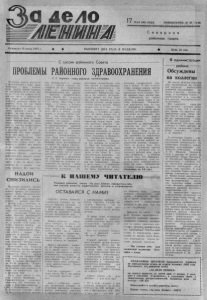 ПОНЕДЕЛЬНИК J * 15 ( 7 1 4 9 ) Основана 20 июля 1935 г. В Ы Х О Д И Т Д В А РАЗА В Н Е Д Е Л Ю . Цена 50 кон. М А Я 1 9 9 3 Г О Д А . С е в е р н а я районная газета -------- — --------- с сессии районного Совета — ------------------- ------------ ПРОБЛЕМЫ РАЙОННОГО ЗДРАВООХРАНЕНИЯ Г. Г. З ы р я н о в глава рай онн ой администрации. В администрации ------ района ----- Обсуждены на коллегии О с н о в н а я задача д е п у т а т о в и и с полнителей в л ице а д м и нистрации дать в о з м о ж н о с т ь нашим л ю д ям н орм ал ь но т р у д и т ь с я . И в э т о м плане х о т е л о с ь б ы с к а з а т ь о т ом . как мы з д е с ь , в а д м и н и с т р а ции, ви дим д а л ь н е й ш у ю пер цпектнву развития нашей м е дицины. Если псе м ы б у д е м так ти чн о и о б ъ е к т и в н о к э т о му п о д х о д и т ь , т о м н о гие в о про сы сд в ин ем с м е с т а . И п ервое , на чем х о т е л бы о с тан о в и ть с я , э т о кадры. Не м ож е т б ы т ь н речи о н о рм а льном м еди ц и н с к ом о б с л у ж и ванни. х о т е л и бы мы э т о г о или не х о т е л и , когда с о о т н о шение цифр, 17 к 3 2 : 17 в наличии врачей, 3 2 пон орм атив у . В с е э тим ск а з ан о . Если они д а ж е не б у д у т вы х о д и т ь из б о л ь н и цы , навряд ли в с е функции с м о г у т выполнить . Слава б о г у , д е фицита в кадрах как т а к о в о го не с у щ е с т в у е т . Д и п л ом и р о в ан н ы х сп е ц и а л и с т о в д о с т а т о ч и о . Д р у г а я пробл ем а д е й с т в и т е л ь н о з а в и с и т т о л ь к о о т нас : з а к р епл ен ие кадров з д е с ь , у пас, па м е с т е , о б е с печение их, к п е р в у ю о ч е редь, ж и л ь ем . Е го н а д о с т р о НДДОИ ~] СНИЗИЛИСЬ К о л х о за м ж и в е т с я т р у д н о . 1 но, т ем не мен ее , п р о и з в е д е т ! венный п р о ц е с с не о с т а н а в л и в а е т ся . Л ю ди е ж е д н е в н о при- | х о д я т на ф е р м ы , в м а с т е р с к ие , значит, п р о и з в о д я т п р о д у к ц и ю м о л о к о , м я с о . Так. с начала год а и к о л х о з а х па д о е н о 3 6 3 1 5 ц е н т н е р о в м о л о на. В с р а вн ени и с п рош лым годом э т о з н а чи т е л ь н о м е н ь ш е . — с о с т а в л я е т 7 3 , 8 4 п р о цента. К о н е ч н о , п р о и з в о д с т в о молока в о вс ех к о л х о з а х с н и з и л о с ь п о -р а зн ом у . К прим е ру, в к о л х з е « V I I с ъ е з д С о и с т о в » н а д о е н о м ол ок а немногим мен ьше , чем в 1 9 9 2 г од у , а и а к ц и о н е р н ом о б щ е с т в е « Л у ч » — т о л ь к о 5 6 , 5 п роцента о т у р о в н я ми н у в ш е го года. Б о л ь ш о е с н и ж е ние п р о и з о ш л о в а к ц и о н е р ном о б щ е с т в е « Р о с с и я » , имени Калинина, « П а ш а Р о д и н а » . Е с т е с т в е н н о , ч т о с н иж е н щ п р о и з в о д с т в а м о л о к а не м о г л о не с к а з а т ь с я на е г о п р о д а ж е г о с у д а р с т в у . В с е г о с начала года х о з я й с т в а продали 2 7 0 5 5 ц е нтн еров .молока, ч т о с о с т а иляет к у р о в н ю м и н у вш е г о г о да 6 9 . 4 9 п р оц ента . Т о л ь к о а к ц и о н е р н о е о б щ е с т в о « З а в е ты И л ь и ч а » пок а д е р ж и т с я на таких ж е п о к а з а т е л я х , как и Б П РОШ Л О М ГОДУ . С в о ю л епту в н о ся т п с е л ь с к и е С о в е т ы . Например , в Г р аж д а н ц е в с к ом с е л ь с о в е т е з а к у п л е н о 2 1 7 ц е н т н е р о в м о лока. в В е р х -К р а с н о я р с к о м — - 2 0 0 , в Ч е б а к о в с к о м 126. В о с т а л ь н ы х С о в е т а х м о л о ка за к у ш е д о . н амн о г о мен ьше . ить. П о в е р н у т ь с я к врачам е щ е и с д р у г о й с т о р о н ы . Пос м о т р е т ь па их з а р а б о т н у ю плату , я п роанал изи ровал п р е д о с та в л е н ны е мне данные з арплата м е д р а б о т н и к о в оч ень низкая . П о с е л ь с к и м С о в е т ам в с р е д н ем но району 6 3 7 1 р у б л ь . При э т о м в Ос- т яцк е - 9 т ы с я ч , в Чеб аках — 4 7 0 0 . Ра зн иц 