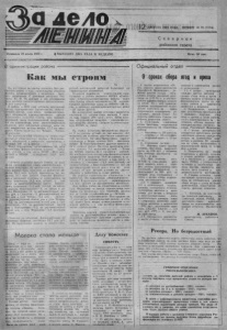 Основана 20 июля 1935 г. $ В Ы Х О Д И Т Д В А РАЗА В Н Е Д Е Л Ю Цена 50 коп. I 2 а в г УСТА 1993 ГОДА. Ч Е Т В Е Р Г № 70 ( 7 1 7 4 ) С е в е р н а я районная газета Официальный о т д е л----------------------------------- — О сроках сбора ягод и ореха В администрации района К а к мы строим На последнем заседании коллегии был р а с смотрен вопрос о ходе строительства объектов жилого, промышленного и ку л ь турно - быто вого назначения. С докладом выступил Р е з ников Ю. Ф. По докладу и его обсуждению было принято соотв етствующее постановление. В нем говорится: . В районе в 1 9 9 3 году согласно титульному списку планировалось строи т ел ьст во общественного центра, трех школ, п роф илактори я , двух общежитий, административного здания Бпазпнского сельского Сов ета , трех гаражей, котельной , цеха цельномолочной продукции, 3 , 6 км водопровода, пяти животноводческих корпусов, двух напольных сушилок, пять т ы сяч квадратных метров ж и л ь я , 17,5 км ав то дорог, благоустройство сел Чуваши, Чебаки, Нивотроицк. . Из перечисленных объектов не начато с тр о ительство общественного центра в Федоровне, Двух общежитий в райцентре, водопровода в Остяцке, 7 0 0 кв. м ж и л ь я . Всего подрядными организациями по всем источникам финансировани я освоено 124 ,2 млн. рублей, в том числе НГДУ —4 6 , 4 млн. рублей и МПМК «С ев ерн ая» —5 2 , 6 млн. рублей. ’ Согласно решению малого Совета, на основании р аспор яж ени я гл авы администрации в нервом полугодии на капитальное стр о и т ел ь ство должно быть выделено из районного бюджета 5 0 , 2 млн. рублей, фактически же вы делено 3 1 , 7 млн. рублей. Отделом фин ан совой и налоговой политики не допоставлено на счета з а к а з ч и к о в 18 ,5 млн. рублен, в том числе на административное здание Биа зин- ско го сельсовета — 1.5 млн. руб л ей , на школу в д еревне Повоникольск—4, па школу в д е ревне М алино в к а— 6, на двухкв артирный жилой >том в С ев ерном— 3. двухкв артирный ж и лой дом в селе Ч е б а к и—0 , 2 млн. рублей, на двухкв артирный жил ой дом в селе Чуваши — 3 .2 , на двухкв артирный жилой дом в Оре- дне ичинске— 0 , 2 , на двухкв артирный жилой дом в Н овотроицк е—0 , 2 , на двухкв артирный жилой дом в с еле Ф ед оро вн а— 0 . 6 миллиона р\ блей. | Освоение по объект ам , финансируемым из районного бюджета , сос т а вл я е т 5 3 ,7 млн. рублей. Из выделенных средств не освоен 1 млн. руб л ей нейтральной районной больницей на строи т ел ьст во общежития. Основной подрядной строительной о р г а низацией в районе ш л я е т с я МПМК « С е в ер ная» . Строителыногмонтажные работы ведут пя ть бригад общей численностью 30 человек. Средняя за р а бо т н а я плата по. МПМК— 28 т ы сяч, а рабочего строительно-монтажных работ — 25 ты сяч рубле!'!. Но кирпичному за во д у суточная выработка составила 3,1 тысячи п п у к кирпича. С н а ч а ла года вы дано 2 6 8 ты сяч штук. Из-за поломки оборудования зачастую пр е кр ащ а ет ся производство кирпича. Средств на рекон стру к цию МПМК не имеет. На первое полугодие предприятию вы д ел е н о П миллионов рублей, и з них освоено 4 . 3 миллиона, иа которые приобретен стр о и т ел ь ный м атериал . Иа административное здание с ель со в ета в Би а зе освоено 10 .5 миллиона рублей. В Верх-Красноярке в едется пристрой, ка к средней школе. На этом маленьком о б ъ екте освоено 3 .5 миллиона рублей- Всего же МПМК освоено 2 1 , 3 миллиона рублей. Из внебюджетных источников финансирования предприятию выделено 3 0 ,8 миллиона, а освоено 3 7 ,2 м