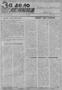 2 стр. «ЗА Д Е Л О Л Е Н И Н А » Далекое — близкое----- А М Ы Т О Ж Е К О В А Л И П О Б Е Д У Это были сч астл ивы е н чо ут н ыке : , мн р е а , бо м т о н л и о ц д е енько в й оенн д м о е г и в о з г а р в а о д д е а , Ро в д р и у н ч ы али п м о е ч д ет а н л у ь ю « н З а а победа’ над Ге рманией в ликой Отечест венной кой В н е е н 1 ы9 4 е 1 э —то 1 й 94 р 5 адо г с г т . » ь . ю , И м , ы о з —ар е я н н л С л и и т е с ь шсф а в о о т Т о о в г м с р е а а шф л и е у в р ч с о ш к в е а а е я т , ь с — ч я т . о р б е О ы шд л и е о т п о о г г д и а . , ла н д а н ч о ис с т и и д л я и пщхр е ом н о а в ны о е га с х а , и через какой-то час встали перед объективом фотоаппа р а т а . И вот теперь нет-нет да р гл о я к ну ше н с а то с г н о и . м Кок ак да м л н е о к г о о го л с е о т у р шеж л и о то с ! т Т е е х п п е о р р ь ! у И ж ск и ол с а ь мк о а п н е е зн аю , как оценить эти годы: счастливые Ли они бы ли, или нет? К а ж е т с я , именно в моем возрасте начинаешь понимать, что не ценили в молодости то, чем была она бо гата . ле Р о Ч д е и б л ак а н сь . я В и 19 в 4 ы 2 рос г л од а у в н с а е с — Я ш у К у л и к о в а , С т е ш у маш е в ск ую . Раю К р а сно в у Т о и меня — мобилизовали в Ф З О , в ремесленное у ч и л и щ е то есть , а по-нынешнему в П Т У . Мы должны были ти го родск ую, з а в о д с к п у р юиоб с р п е е с - . циальность. ' Д о Куйбышева нас везл а л о м и с о о , я зн а м а а в я м ал а —а . Д т о н о р е г о о г п , о л й а ч к т в а о с л е а : п с л к а о к р н а о е мама меня о ставит, и мы не [ с к о р о встретимся в родном дом Д е о . б р али сь до з а е з ж е г о д о ма (до гостиницы то е с т ь ) , остановились там ночевать , а у д т у ро д м омо м й а , м а а в с ы к а з о а с л т а а н : е « т И ес ь п в о о е т л с те а р э , т о о ч м й то Ф т З « е О э т т е а й от » т . з е а т П в я о о » з д ж а б е ы№л я а у 6 м з 3 н а 5 а с . ш л н Я а о е в , п и д о а л о б и г е н с п ж ь а о т а т ь л в о с м а е м а з и м а м е у с н с о , ь а в ша н с е я е .к м м о и и н , и м х е о с н т т ь а е л и сь . Я села на снег и с с к та р л ы а п га ла т к а ать с ! а м П а о я дн т я е л т а я - мм е а н с т я ер с . о с Т н а е к шко л Н о м о н г е о р р а в е з п . в е е рв т ы о е ль в ко жи к з о ни п м р н и е одной! Д етей моего возраст а бш ы и л П х о о р сл а м й е н о о н о г о к о в о , . н с ч о ан в и с я е х Ф б З л О иж а м й ы все работали на том за в о де . Он находился в 1 7 -километрах от Нов о сиб ир ск а , на станции З а в о д с к о й , теперь — П а ш и н о . к р Р и а а к б . е о Ж . та и И л л и и вс п п ю о о в 4 1 о 6 0 йн ч ч у а е с л о о я в ве в к пи в с с а у б л т а а д м т о о а п р м иы е т й , ог ч о о т с о т с а т ж л а а с к я л ан к о а в ммд н е о н е л ь о т к о а г , м о ое к н г о е о отъезда на ст о л е . С е й ч а с даж е с ам о й смешно : в жм с и д е а —мы от и т т о г р г л д о а а т з и а б л , ы а и , ли к р о у о т к р о и р а , н ы жим е о в мд ы е ы наполняли с н а р я д ы . Работали на два по т ок а , у к а ж д о г о— св о й м а с т е р . Вот с м д к о а у в с : те з « р а У п ч в а ы а к с в о ! е » в с . а и н т А о л в 1 и т 0 с о т 0 р о 0 о к й н с н а с т а р р д я е о л р м е е и к в т т н с и о я в в о ан б н о а и й ю т 1 , и 1 0 н с 0 а о с п т с е р н р а а н и р и в я к а д а я о в п . о ко с о л н го ы н Р х а я м д п и о у : м т я ' с х ю с д с ц а т е о х и * г т > р м у п з н я а а т ро п в с о о н д з а ъ р с е я з д в д ыа р и яд с ыу п п а о —к т о о в к ы а о , н в и а и ю д с т о л с я я с к в « л К а а д т а я ю . щ шС и и н ки » а ! . И мы . девчонки, ст а р а л и сь обязательно письмо на фронт в ящик положить . О себе р а с с к а з а т ь , сол дату здоровья и у с п е х о в в бою пожелать . А д р е с » свои давал и . А потом от солдат ответы полу