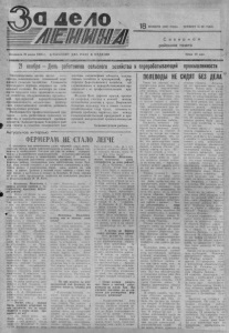 18 ноября 1993 г о д а .® № 9 8 ( 7202 ) ПРОФЕССИЯ ПО Д У Ш Е ( / « З А Д Е Л О Л Е Н И Н А » 3 с тр. С Л О В О О ВЕТЕРАНЕ Об инженерной службе колхозов, ее роли в жизни хозяйств .стабильной или наоборот, неорганизованной работе всего парка машин и тракторов мы говорим мало. Вроде, от инженера и не з а висит. как идет уборка или вспашка зяби. А вот нынешняя осенняя страда в полной мере высветила службу инженеров. И доказательство тому — качество и сроки уборки. Погодные условия для всех были одинаковы, но полностью справились с ней только два хозяйства: колхоз «Память Ленина* и акционерное общество «Россия» . Сегодня мы скажем доброе слово в адрес инженера из «Памяти Леина» С. городова. Он еще молод, и впереди ц е л ая трудовая жизнь, а в должность инженера Сергей Федорович вступил лет пять назад. Впрочем, и до этого технический парк хозяйства знал наперечет, потому что работал шофером , был механиком. З н а л , что взв алив ает на себя тяж елое бремя , но решился, и лю ди в нем не ошиблись. Между ним и механизаторами ус тановилось взаимопонимание, которое, прежде всего, основано на деловых контактах. Может быть, поэтому в га р а ж е хозяйств а всегда порядок, техника , запчасти — на своих местах. Наверное, если бы механизаторы небрежно относились к своей м аст ерской, ее давно бы не было, ведь построили здание еще в далекие 3 0 —40 годы. Большинство из них — люди созн ательные, они и с а ми знают, к а к сберечь технику, но и слово инженера у в а жают. Сергей Федорович никогда не повышает голоса, он ум еет ровным и спокойным голосом дока зат ь , то, что требуется. Чер е з некоторое время проверит, все ли в порядке. И дело ладится, тем более, что вместе с ним о сохранности техники, разумной расстановке сил заботятся заведующий мастерской В. В. Смык, б| - гадир С. Д. Казанцев, м *' ник авт опарка К). С. Со. <- ьев. Нынче, например, во ь, я жатвы механизаторы рабе и двумя группами, по сем| и пять комбайнов. З д е сь же, на поле, д ежурило обслуживающее звено, в котором был сварочный агрегат , так что потеря времени при поломках была минимальной. Когда позво л я л а погода, люди работа ли по ночам, и хлеб не остался в поле. Не подвел никто из двенадцати механизаторов . Среди лучших комбайнеров хозяйства С. Ф. Кайгородов называет достойные имена: В. М. Смык. А. Д. Плотников. С. П. Пичков, В. Г. Ничков, В. Н. Шеин, В. Г. Лушов, В. Г. Миронченко, В. Н. Белов все они имеют солидный стаж и настоящую, хозяйскую тревогу за судьбу урож ая . Как всегда, пришел на помощь и пенсионер В. И. Саадзюк. Он никогда не остается в стороне от жатвы. В полной мере участником уборки можно назвать и С. Ф. Кайгородова. Для него это была самая тр удная страда из тех, что остались позади. По он знал , что профессия инженера нелегка, однако, не отступился. Чер е з десят ь лет после окончания школы поступил Сергей Федорович в институт. Учился заочно. Трудно им приходилось, тем более, что и жена, Галина Михаиловна, тоже у ч и л а с ь заочно. Поочередно ездили на сессии, а в семье под раст ала дочка. Теперь у них двое ребят и забот добавилось, но и колхозные проблемы С. Ф. Кайгородов не оставляет на второй план. Павеоное, потому. что профессию выбрал по душе и работа ет с удовольствием. Николай Иванович Шичкин сейчас живет в Северном. Он на пенсии и здоровьем не может похвалиться: постоянно носит при себе ингалятор, чтобы изб авиться от очередного приступа астмы. 