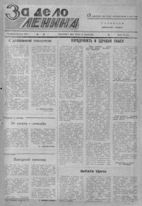 Основана 20 июля 1935 г. тпг ...........ШИ III 1И ЧНИМ ❖ В Ы Х О Д И Т Д В А Р А З А В Н Е Д Е Л Ю . Ц е н а 5 0 к о п . С ДУШ ЕВНОЙ ТЕПЛОТОЙ ПОРЯДОЧНОСТЬ И ЗДРАВЫЙ СМЫСЛ 4 (По телефону). Вечер, посвященный тр у ж е н и к а м ж и вотноводства. провели в Че- | баках рабо тники местного Дома к у л ь т у р ы — Любовь Мак- ■ ¡ с и м о в н а Т.рибуиалова, Луи за Ивановна Ефимова и флопа •V.- Разумела, С поздравлением выступил Василий Анатол ьевич Семенов — главный зоо те хн ик х о зяйства. Он ж е рассказа л и об итогах работы. Затем председатель хозяйства Василий Ильич Д р а га н и главный ветврач Н и колай Иванович Гон чаренко пожелали всем здоровья, счастья, успехов и благ. Н о особенно хочется отметить выступление а гитбри гады в составе учителей: Га- [ ляпы Владимировны Горчаковой, Любови Васильевны Ваштасвой, Галины Николаев ны Красновой , Розы Василь- 4 1 свны Маевой, воспитателя ^ детского сада Галины Евгеньевны Тихоновой, медицинского работника Татьяны Павловны Павловой и почта льона И р и ны Филипповны Во- ; локитиной. С к а к о й любовью, огоньком и задором, душевной теплотой и щедростью и спол няли они песни «На горе к о л хоз», «Я блонь ка» , « И в у ш к а » и многие другие. Не повери те, но многие даже прослезились... А с к о л ь ко внимания в этот вечер уделено тем, юго проработал в животноводстве 20 лет и более! Зал был переполнен... А после концерта ор ганизаторы пригласили нас на чаепитие, где было столько вы печки, что в двух словах не расскажешь. И все это ж е н щины приготовили в основном своими рукам и . Потом — та нцы .. . Словом, веселились ЧУть ли не до утра! Хочется от всей душ и поил а I одари ть организаторов этого замечательного праздника за то, что вспомнили про в еликих т р у ж е н и ц деревни — доярок, с к о тн иков . К т о , к а к не они, встают на селе раньше всех, с первыми потехами? К т о , к а к н е они, познают тя готы т я ж е л о го ’ физического труда? К т о , к а к не они, находятся в постоянном напряжении от забот и все- во зм ож ны х неожиданностей? Спасибо вам всем за тепло- и внимание, за душевное исполнение с та ринны х песен, которые по-особому нравятся деревенским ж и телям , Желаем всем т в орческих Успехов, здоровья вам и вашим семьям, благополучия и надеемся, что та кие встречи повторятся. М. Т Р И Б У Н А Л О В А , ветфельдшер. Письмо в н о м е р ------- — -------- —— \ За школу — спасибо К онец октября у нас в Ново ни кол ьске ознамен овале я событием районного масштаба — за кончилось с тр ои тельство ш колы , и она была сдана в э ксплуатацию . Н а к о нец, •наши дети получили возм ожность заниматься в своих просторных классах , у р о к и ф и з к у л ь т у р ы проводить в спортивном зале. Мы очень бла- -годариы за новую школу' главе районной администрации Г. Г. Зырянову, всем строителям и электрикам. А особенно хочется поблагодарить гл аву сельской администрации В. М. Паеько за его заботу, энергию, настойчивость, к о т о рые помогли в быстрейшем завершении строительства. Огромное всем спасибо! И. Н И К И Ф О Р О В А . Культура — --------- -— Выездной Не напрасно был прож и т последний день ноября к л у б ными рабо тниками района: они провели выездной семинар по программе « В о з р о ж дение» на базе цражданцев- с к о г о се льского Дома к у л ь т у ры. О т к э ы л семинар Ю. Г. Гла- маздин. Затем представил гостью из Новосибирска А л е к с а н д р у Петровну А л е хи ну — заместителя председателя областного комитета по к у л ь т 