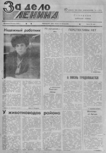 лело 10 Я Н В А Р Я 1994 Г О Д А . П О Н Е Д Е Л Ь Н И К № 3 ( 7 2 1 7 ) С а п е р н а я районная газета Основана 20 июля 1935 г. с г а г а й д Ё В Ы Х О Д И Т Д В А 1’ ЛЗА В Н Е Д Е Л Ю . Цена 50 к о п . 1 Надежный работник ПЕРСПЕКТИВЫ НЕТ Н а к аж д ом предприятии е т с о т р ь ых та м к о и ж е н о раб п о о т л н о и ж к и и т , ь н ся а кои быть уверенным в том, что порученн ую работу этот ловек выполнит на с о в е с т ч ь е . в В от Ино М во К дст п в о а м е к хан ч и и с з л ац у ии та жки и х людей принадлежит га зоэлек- т рос в а рщ и к Н . И . Кондинс - кий— . Е с л и за что-то в з я л с я , с д елано буд ет капитально . И в ж т у о . ро —го т т а а к к ого о я х ар з а д к е т с е ь р и н з е о в в а и л его м астер , А II Похлебин . я — нин А , е щ ст е а р а эт е о т ся хоро о ш б и ес й пе с ч е и м т ь ь н с л е о ж м к е Н . ь н е ю л , ь п з о я г я д в е и н т е у ь с п я н р е и г в з о т н о а р с т о к ь й о р м о р у е ж д б е о е с д т н в о о е Н и и к т о у л м а я анн—ое в вр ст е о м л я ь т р н у е каждый о тважитс я пополнить сем ью . Кром е того, этот человек г —да-т б о а , л а л г е у т р 1 и 5— в 2 е 0 с е л н ь а ч з а а к д . , К ег о о имя гремело на зу н к у й с к ом мосту — « К о л я Кондинский и ст г н р а а я ет мна оло г д и е т ж ар ь е» . В с х с о я д и о л к а р с е ь с ю ? а по сл уш ать з а р еч ен ск о го « с о л о в ь я » . И се й ч а с иногда в минуты д о с у г а возьмет б Н и и м к ы ол й ай) ин И ст в р а у н м ов ен и т ч , свой удар л и ю т по с т р у н а м , и вернется мять в безвозвратно ш у ю , но такую п р е к р а с н у у ш ю е п д а и б ез об лач н ую по р у . Фото С . Ф едо ро ва . На а у к ц и о н е - лее Т а к у ж п о л у чи л о сь , что Се в е р ны й л е с х о з теперь д д е ч т ин н ен ах и о и д . ить Е с с я л и в р д а в н ой ьшно е м э б п т у о о бы ло только Ново сибирск ое упр а вл ен и е л ес ам и , то сейчас распр еделением л есосечно го ф онда буд ет заниматься ад министрация района . Т ак ое решение вполне объяснимо: на м е с т а х виднее Н аш район первый , который со гласился п н р а ед д е а л н е н н ы и й е э л к е с с п а ери с ме а н у т к : ци о р н а а с . Э т о забытое с т а р о е , но вновь в о з в р а щ а ю щ е е с я , решено п н р и о я вод р и а т й ь онн с ог ц о ел б ь юю дж п е о т п а ол н е и чтобы сбить поток л е с о з а г о - ! т внов е Н . и а т м е е л ч е е й н , о п р т и ор е г з и ж аю п щ ро и в х оди и т з ь о к с т н а о ж , я д л н ы с а я й к ч т о е о т т л о в ь р е к ы р о й г . о в Нд ы и о с н та п в о л к а я а у л к и ц с с и о ь восемь л е с о с е к . У ч ас т в о в али в чал н ь е н м ая чет цы е р н е а х о з п я р й е с д т л в а а г . ал Н ас а ь 7 ре 0 з 0 ы р и уб о л с е и й ны з а и к 2 у 0 б 0 о 0 мет р р убл б е е й за к убометр хвойных пород . Э т о — для иногородних. Д ля с н в о о в А е л у г е о к н ц а и ж о е н н ап р о а с л й о о о с в н т и а о н я у л ц с е я н н : и а же у . с 8 т 1 а 0 кубометров л е с а н т го о а в . л Ч я у т л ь ы м хо а зя З й д с в тв и о нс б к и у о з д г е о т Н и р з ж а а й н г о о е Е с т ь б о л ьш а я н а д еж д а , что подобное новшество р з у авд в а ы ет жи с т е ь б я : в п т о р м у о д ж н е ы т х л у е с с л х о о о п виях и позволит со хранить главное богатство района — лес О . Н И К О Л А Е В А . Вывозят зерно Х л е б оп р и ем н о е тие — основной п п о р с е т д а п вщри и я к ф у р а ж н о г о зерна из нашего района . В с л е д за убо ркой у р о ж а я отсюда начинается отгр узка зе рн а в город. Это бы ло сд е ла н о и нынче . Но вывозка идет медленно по т ю е т м жна е л п юри б ч о и е нам п , ро ч и т з о вод в с л т и в я о . П о к а вы везена примерно т щ р е е г т о ья отп ч р ас а т в ь ке . з е р н а , по д л еж а тве Н н а 