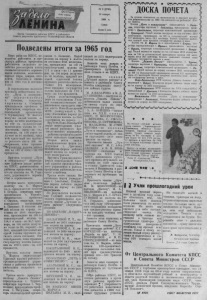 Орган Северного райкома К П С С и районного С о в е т а депутатов трудящихся Новосибирской области № 8 (2798) 19 января 1966 г. Среда Ц ена 2 коп. Подведены итоги зд 1965 год Бюро райкэма К П С С , исполкома райсовета и президиум райкома профсоюза работников сельского хозяйства рассмотрели итоги социалистического соревнования колхозов, молочнотоварных ферм, доярок, скотников, телятниц и свинарок за 1965 год и постановили: В соревновании колхозов признать победителем колхоз „ П у т ь к коммуниз- м у “ (п р е д с е д а т е л ь т. Еемелев, секрета)] и а р т к о ма т. Столетов, председатель профкома т.- Крестьянов, секретарь комсомольской организации т. Кузнецова). В колхозе получен надой молока н. корову по 2253 килограмма, на 100 га сельхозугодш произведено молока но 111 центнеров, мяса —по 14,1 центнера, на 100 коров получено по 91 телёнку, средний сдаточный вес крупного рогатого скота 266 ки лограммов, план продажи "‘Государству молока выполнен на 105 и м яса— на 107 процентов. В р у ч и т ь колхозу „ П у т ь к коммунизму" переходящее Красное знамя райкома К П С С , райисполкома и райкома профсоюза, отозвав его из колхоза им. М. Г о р ь кого, у к а т и в ш е г о первенство в соревновании. Второе место присудить колхозу им. К . Маркса (и. о. председателя колхоза т. Егоров, секретарь парторганизации т. Юревич, председатель профкома т. Окунев, секретарь комсомольской организации т. Петрова). В колхозе наядой молока на корову составил по 2013 килограммов, произведено на 100 га сельхозугодий молока по 158,4 и м яса—по 30,7 центнера, на 100 маток п олу че но телят по 94, поросят—по 2831, средний сдаточный вес одной головы крупного рогатого скота составил 259 килограммов, план продажи государству молока выполнен на 109 и мяса — на 150 процентов. В р у ч и т ь колхозу имени К . Маркса переходящий Кр а с н ы й вымпел районного производственного уп р авления и райкома профсоюза работников сельского хозяйства. Третье место присудить колхозу „ П а м я т ь Ленина" (председатель т. Чуркин, секретарь парткома т. Чер- ношвец, председатель профкома т. Петухова, секретарь комсомольской организации т. Зеленин). Надой молока на корову в колхозе составил 2 0 43 килограмма, произведено на 100 га сельхозугодий молока по 111 и м я с а— по 11 центнеров, на 100 коров получено по 9 3 телёнка, средний вес одной сдаточной головы крупного рогатого скота составил 2 7 4 килограмма, план продажи государству молока выполнен на 110 и м я с а - н а 1оо процентов. Среди молочнотоварных (терм по выполнению У с л о вий социалистического со ревнования присудить первое место Ново-Никольской V IТ Ф (заведующий т. По- (ов). Коллектив фермы д о- h i лея надоя молока по 2563 килограмма на корову. ; Вр у ч ить Ново-Н икольской (>ерме переходящее Кр ас юе знамя районного про- юводствениого управленш 1 райкома профсоюза работников сельского хозяйства Второе место занял. Гражданцевская ферма ( з а ведующая т. Дрючина). Коллектив фермы добило; надоя молока, на корову ж 2410 килограммов. В р у ч и т ь Гражданцевско! £ерме переходящий Крае- 1ый вымпел производственного управлении и райком; профсоюза работников сельского" хозяйства. Третье место заняла Ве селовская ферма (заведующая т. Акатьева). Ко ллек тив фермы добился надоя молока на корову по 24 0 3 килограмма. По результатам выполнения У с л о в и и социалистического соревнования присвоить звание „ Л у ч ш а я доярка района" следующим до