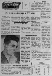 '/■ у О р г а н С е в е р н о г о р а й к о м а К ПС С и р а й о н н о г о С о в е т а д е п у т а т о в т р у д я щ и х с я Н о в о с и б и р с к о й о бла с т и № 17 (2807) 8 ф е в р а л я 1966 г. Вт орник Ц е н а 2 коп. З а новые достижения в 1966 году ^ ^ а к о н ч и л с я я н в а р ь — п е р в ы й м е с я ц н о в о й п я т и л е т к и . П о д в е д е н ы и т о г и , У м а с л о д е л о в э т и и т о г и н е * х а к у ж п л о х и е . l o o п р о ц е н т о в — т а к о й п о к а з а т е л ь п о в ы р а б о т к е в а л о в о й п р о д у к ц и и . М а с л а з а в о д д а л з а м е с я ц 2 1 8 ц е н т н е р о в в м е с т о 1 4 0 — п л а н п е р е к р ы т в п о л т о р а р а з а . В ы п о л н е н т а к ж е п л а н п о и з г о т о в л е н и ю ц е л ь н о - м о л о ч н о й п р о д у к ц и и . Д о б р о е с л о в о с л е д у е т с к а з а т ь о м а с т е р е г о л о в н о г о м а с л о з а в о д а Н и к о л а е П е т р о в и ч е С е р г е е в е . Р а б о т а е т о н у н а с в с е г о н е с к о л ь к о м е с я ц е в , н о з а р е к о м е н д о в а л с е б я с п о л о ж и т е л ь н о й с т о р о н ы . Б о л ы ц о е в н и м а н и е у д е л я е т к а ч е с т в у п р о д у к ц и и , о р г а н и з а ц и и т р у д а в к о л л е к т и в е , р а з р а б о т а л н о в у ю т е х н о л о г и ю в ы р а б о т к и м а с л а в ы с ш и х с о р т о в . Ц е х н а м н о г о п е р е к р ы л я н в а р с к о е з а д а н и е . Н а х о р о ш е м с ч е т у з а в е - Перевоэка продукции со сливкоотделений на маслозаводы у нас сопряжена с большими трудностями. Расстояние 50—60 километров. А вот шофер Иван Михайлович Кондинский ежедневно Сообщение Т А С С П о с л е у с п е ш н о г о за в е р ш е н и я мягкой п о с а дки на п о в е р х н о с т ь . Л у н ы с о с т ан ци ей « Л у н а - 9 » у с т а н о в л е на н а д ё ж н а я р а д и о с в я з ь . 4 ф е в р а л я с о с танци ей бы л о п р о в е д е н о четыре с е а н с а р а д и о с в я з и общ ей п р о должи тельн остью три ч а с а 2 0 м и н у т . Во время э ти х сеан сов со с т а н ц и и п о л у ч е н а т е л е метрическая и н ф о р м а ц и я , к оторая п о дт в е р ди л а нормальное ф у н к ц и о н и р о в а н и е е ё бортовых си стем . П о к ом ан д е с З е м л и 4 ф е в р а л я в 4 часа 5 0 мин ут по м осковскому вр ем ени с танци я « Л у н а - 9 » н ачала о б з о р л у н н о г о л а н д ш а ф т а и ‘п е р е д а ч у е г о и з о б р а ж е н и я на Зем лю . П о л у ч а е м а я со с т анции и н ф о р м а ц и я о б р а б а т ы в а е т с я и и з у ч а е т с я . У с п е ш н о е вы полнение программы с т а н ц и ей « Л у н а - 9 » я в л я е т с я р е з у л ь т а том п о с л е д о в а т е л ь н о г о вы п о л н ен и я намеч е н н о г о плана и с с л е д о в а н и я Л у н ы . и т р а к т о р н ы й п а р к в с е г д а в и с п р а в н о с т и и в л ю б о е в р е мя с у т о к м о ж н о в ы е з ж а т ь , б о л ь ш а я з а с л у г а а в т о м е х а н и к а В а с и л и я С е р г е е в и ч а А л е х и н а . У м а ш и н е г о м о ж н о в и д е т ь и у т р о м р а н о и М А С Л О Д Е Л Ы — С Т Р А Н Е д у ю щ а я В и т и н с к и м с л и в к о - о т д е л е н и е м Т а и с и я Е в г е н ь е в н а М а т в е е в а . В о т д е л е н и и у н е е в с е г д а ч и с т о , с о б л ю д а ю т с я в с е с а н и т а р н ы е т р е б о в а н и я . С л и в к и с д а е т с а м о г о в ы с о к о г о к а ч е с т в а , н и з к о й к и с л о т н о с т и . П л а н я н в а р я п о з а к у п у м о л о к а т . М а т в е е в а н а м н о г о п е р е в ы п о л н и л а . п р е о д о л е в а е т 9 0 к и л о м е т р о в , | в е ч е р о м п о з д н о . Х о р о ш о р а б о т а л и м а с л о д е л ы в я н в а р е . П о в ы ш е н н ы е о б я з а т е л ь с т в а в з я л и о н и и н а ф е в р а л ь , ч т о б ы д о с т о й н о в с т р е т и т ь п р е д с т о я щ и й с ъ е з д н а ш е й п а р т и и . Н о р а б о т н и к а м с л и в к о о т д е л е н и й и м а с л о з а в о д о в н а д о о с о б о е в н и м а 