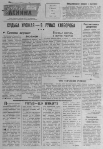О р г а н С е в е р н о г о р а й к о м а К ПС С и р а й о н н о г о С о в е т а д е п у т а т о в т р у д я щ и х с я Н о в о с и б и р с к о й об ла с т и № 21 (2811) 17 ф е в р а л я 1966 г. Ч е т в е р г Ц е н а 2 коп. Международные ярмарки и выставки З а п о с л е в о е н н ы е г оды С С С Р у ч а с т в о в а л б о л е е ч е м в 200 з а р у б е ж н ы х в ыс т а в к а х и я р м а р к а х . З а э т о т ж е п е р и о д в н а ше й с т р а н е б ыл о о р г а н и з о в а н о о к о л о 300 н а д и о н а л ь н ых и с п е ц и а л и з и р о в а н н ы х в ы с т а в о к , г де были п р е д с т а в л е н ы мн о г и е с т р а н ы мира . В э т о м г о д у с о в е т с к и е п а в и л ь о н ы о т к р о ют с я на т р а д и ц и о н ных я р м а р к а х в Л е й п ц и г е , Б у д а п е ш т е , По з н а н и , Д а м а с к е , И з м и р е , Бр н о , Пл о в д и в е , З а г р е б е , У т р е х т е , А л ж и р е . П о с е т и т е л и с о в е т с к и х п а в и л ь о н о в с м о г у т о з н а к о м и т ь с я с с а мыми р а з н о о б р а з н ым и э к с п о н а т а м и , с в и д е т е л ь с т в у ю щи м и об у с п е х а х С С С Р в р а з л и ч н ы х о б л а с т я х н а р о д н о г о х о з я й с т в а и к у л ь т у р ы . М е ж д у н а р о д н ы е и з а р у б е ж н ы е в ыс т а в к и о т к р о ю т с я и в СС СР * С УД Ь Б АУ Р О Ж А Я - В РУКАХ ХЛЕБОРОБА ♦ ♦ ♦ Семена д е р ж а т экзамен Приближае тс я весна. Ко л хозам района п р е д с т о и т по с еять дес ятки тысяч гектаров яровых ку ль т у р . Чтобы каждый из н и х дал высокий у р о жа й , т р е б у е т с я положить в землю с о р т о вые, высококондиционн ы е семена. Сейчас в конт рольно - с е менную лабораторию е ж е дневно поступают из колхозов образцы р а з ных ку ль т у р и сортов. З д е с ь с е м е на д е р ж а т экзамен на в с х о же с ть , чистоту, влажность и д р у г и е посевные к а че с т ва. Хо з я й с т в а получают у д о с т о в е р е ни я н а п р а в о выс ева с еме нног о материала. На агрономов колхоз а л о жи т с я большая ответственность, так как от правильности отбора ими образцов завис ит качество п роведе ния лабораторных анализов. Но не в с е ещё агрономы придают этому д о лжн о е внимание. В янва ре, например, п о с т у п ил и образцы из сельхоз артели „Новая ж и з н ь “. Агроном т. Ильдеров гарантировал, что семена у них в с е очищены и н а х о д я т с я в х о р о шем сост оянии. Побле анал из а они -были отнесены по всем показателям к т ре т ье м у клас су . Казалось- ' бы, что в с ё в порядке , семена вполне приг одны для высева. Но когд^г з з я л и в х о з я й с т в е контрольные образцы, выя с н и л о с ь , что в Ал ё ши н - ской б р и г а д е 6 0 0 цент не ров семенной пшеницы, считавшейся очищенной, не прошли по з а с о р е н н о с т и . Влажность её равна почти 1 9 процентам. З е р н о одной контрольной еди н ицы весом 1 0 0 — 1 5 0 центнеров было засыпано на хране ние тонким слоем и промерзло. В ре з у льт а т е в с х о ж е с т ь ее с низ ил а с ь до 80 процентов. .200 центнеров овса также оказ ались неочищенными. В одном килограмме его с о д е р ж и т с я до 4 0 0 семян с о рняков. Вс ё это доказывает, что семена в колхоз е брошены на произвол. А вместо тщательной подготовки и х к п о с е в у , руководители артели стали на путь обмана, не понимая того, что они обманывают сами себя. В на с т о яще е время н у ж но промерзшие семена пше ницы отделить, а при на ст уплении тё плых , дне й организовать их очистку и п р о с у ш к у . А г р о н о м у т. Ил ь д е р о ву и к ла д о вщи кам с л е д у е т в е с т и п о в с е дневное на б люд е н и е за с о стоянием хране ния с е м е н ного материала. М. М и т р а н о в а , з а в е д у ю щ а я к о н т р о л ь н о - с е м е нн о й 