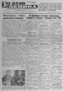 П р о л е т а р и и в с е х ст р а н , с о е д и н я й т е с ь ! О р г а н С е в е р н о г о р а й к о м а К ПС С и р а й о н н о г о С о в е т а д е п у т а т о в т р у д я щи х с я Н о в о с и б и р с к о й об ла с т и № 5 2 ( 2 8 4 2 ) 29 а п р е л я 1966 г. Пя т ница Ц е н а 2 к о п . Т р у д я щ и е с я С ов ет ск о г о Союза! А к ти вн о у ч а с т в у й т е в и з б и р а т е л ь - ной кампании! П р о в е д ём выборы в В ерховный Совет СССР п о д з н а ком борьбы з а вы п о л н е н и е р е ш е ни й X X I I I с ъ е з д а КПСС! ( Из П р и з ы в о в Ц К К П С С к 1 Ма я ) Н а в с т р е ч у 1 М а ю « « З А В Е Р Ш А Я З И М О В К У К о л л е к т и в Б о л ы и е - К у л и к о в - с к о й ф е р м ы с о т л и ч н ы м и п о к а з а т е л я м и з а в е р ш а е т з и м о в к у с к о т а . П о н а д о ю м о л о к а з а п е р в ы й к в а р т а л ф е р м а з а н я л а п е р в о е м е с т о н е т о л ь к о по к о л х о з у , н о и в р а й о н е . Д о я р к и б о р ю т с я и з а в ы с о к у ю п р о д у к т и в н о с т ь к о р о в , з а ч и с т о т у и п о р я д о к н а ф е р м е . О с о б е н н о в ы с о к и х р е з у л ь т а т о в д о б и л и с ь т а к и е д о я р к и , к а к д е п у т а т о б л а с т н о г о С о в е т а д е п у т а т о в т р у д я щ и х с я В а р в а р а Е г о р о в н а К ы ш т ы м о в а . О н а н а д о и л а з а т р и м е с я ц а н а о д н у к о р о в у п о 7 4 9 к и л о г р а м м о в . В с е г о н а д в а к и л о г р а м м а н и ж е п о к а з а т е л ь у С е р а ф и м ы Н и к о л а е в н ы Х л о п о т о - в о й . П о 7 1 4 к и л о г р а м м о в н а к о р о в у н а д о и л и О л ь г а И в а н о в н а П ы с и н а и А н н а М и х а й л о в н а Х у д я к о в а . В е р а П е т р о в н а Л у ш о в а р а з д а и в а е т п е р в о т ё л о к . Н о и о т н и х о н а д о б и л а с ь н а д о я п о 7 4 6 к и л о г р а м м о в з а т р и м е с я ц а . Х о р о ш о т р у д я т с я с к о т н и к и А . П . К ы ш т ы м о в и А . И . Я к о в л е в , к о т о р ы е у х а ж и в а ю т з а м о л о д н я к о м . О н и н е и м е ю т ни о д н о г о с л у ч а я п а д е ж а ж и в о т н ы х . А у н и х г р у п п а т е л я т 1 26 г о л о в . В б р и г а д е п о д о б р а н ы п а с т у х и н а в с е г у р т ы с к о т а . М е с т а д л я п а с т ь б ы у ж е о т в е д е н ы . Колхоз Г . Б а г р о в а „ П а м я т ь Л е н и н а ”. с е л ь к о р . 06образовании участковых избирательных комисийпо выборам в ВернхоывйСовет СССР Р е ш е н и е N s 9 1 и с п о л к о м а р а й о н н о г о С о в е т а д е п у т а т о в т р у д я щ и х с я о т 2 6 а п р е л я 1 9 6 6 г. К Р А С Н О В П е т р П е т р о в и ч — о т г р а ж д а н д е р е в н и А л е ш и н к а . И з би ра т ел ь ны й И зб и ра т ел ь н ы й у ч а ст ок № 2 37 - 900 Х О Р О Ш И Й С Т А Р Т П о и т о г а м с о р е в н о в а н и я з а п е р в ы й к в а р т а л п е р в о е м е с т о в к о л х о з е „ В о с х о д " п о - п р е ж н е м у з а н и м а е т к о л л е к т и в Ч е - б а к о в с к о й ф е р м ы . З а т р и п р о ш е д ш и х м е с я ц а з д е с ь п о л у ч е н о п о 5 3 3 , в т о м ч и с л е в м а р т е — п о 2 0 2 к и л о г р а м м а м о л о к а о т к а ж д о й к о р о в ы . Э г о н а п о л т о р а с л и ш н и м ц е н т н е р а б о л ь ш е , ч е м в п е р в о м к в а р т а л е п р о ш л о г о г о д а . А п е р е д о в ы е д о я р к и ф е р м ы А н н а А ф а н а с ь е в а , Н а д е ж д а Б а р к о в а и Д а р ь я Л а р и о н о в а д о б и л и с ь е щ ё л у ч ш и х п о к а з а т е л е й . В э т о м н е м а л а я з а с л у г а з а в е д у ю щ е г о п р о и з в о д с т в е н н ы м у ч а с т к о м В. Б а р а н о в а и е г о п о м о щ н и к а В . Ш и н к а р е н к о , к о т о р ы е х о р о ш о о р г а н и з о в а л и т р у д ж и в о т н о в о д о в , в н и м а т е л ь н о и ч у т к о о т н о с я т с я к их н у ж д а м . Н е п л о х о н а ч а л и п е р в ы й г о д п я т и л е т к и д о я р к и и с к о т н и к и В и т и н с к о й и Д о л г о - Г р и в е н с к о й ф е р м . П о - с р а в н е н и ю с э т и м ж е п е р и о д о м