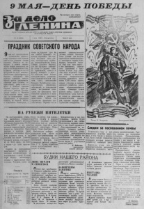 9 М А Я — ПРАЗДНИК СОВЕТСКОГО НАРОДА м а я в с ё п р о г р е с с и в н о е ч е л о в е ч е с т в о т о р ж е с т в е н н о п р а з д н у е т д е н ь в е л и к о й п о б е д ы н а д т ё м н ы м и с и л а м и ф а ш и з м а . Н и к о г д а н е п о м е р к н е т в п а м я т и ч е л о в е ч е с т в а п о д в и г с о в е т с к о г о н а р о д а и е г о В о о р у ж ё н н ы х С и л , в с т а в ш и х н е с о к р у ш и м о й п р е г р а д о й н а п у т и н е м е ц к о - ф а ш и с т с к и х п р е т е н д е н т о в на м и р о в о е г о с п о д с т в о . О н и в ы н е с л и о с н о в н у ю т я ж е с т ь б о р ь б ы п р о т и в г и т л е р о в ц е в , з а щ и т и л и с в о ю О т ч и з н у о т з а х в а т ч и к о в , р а з г р о м и л и в р а г а и п о м о г л и н а р о д а м Е в р о п ы с б р о с и т ь я р м о ф а ш и с т с к о г о р а б с т в а . И с т о р и ч е с к а я п о б е д а в В е л и к о й О т е ч е с т в е н н о й в о й н е к о в а л а с ь н а з а с н е ж е н н ы х п о л я х П о д м о с к о в ь я , в п р е д г о р ь я х К а в к а з а , н а б е р е г а х В о л г и , в о с а ж д ё н н о м Л е н и н г р а д е , в б и т в е н а ^ К у р с к о й д у г е . В о и мя п о б е д ы с р а ж а л и с ь о т в а ж н ы е п а р т и з а н ы . Е й о т д а в а л и б е с с о н н ы е н о ч и у ч ё н ы е , к о н с т р у к т о р ы , с т а л е в а р ы , м а ш и н о с т р о и т е л и У р а л а , С и б и р и , Д а л ь н е г о В о с т о к а , д л я н е ё т р у д и л и с ь х л е б о р о б ы А л т а я и С р е д н е й А з и и . Е ё п р и б л и ж а л и , п о м о г а я ф р о н т у , ж е н щ и н ы и д е т и - в с е с о в е т с к и е л ю д и . Т о л ь к о с о в е т с к и й н а р о д , р у к о в о д и м ы й К о м м у н и с т и ч е с к о й п а р т и е й , н а р о д , с о в е р ш и в ш и й В е л и к у ю О к т я б р ь с к у ю с о ц и а л и с т и ч е с к у ю р е в о л ю ц и ю , п о б е д и в ш и й в г р а ж д а н с к о й в о й н е , п о с т р о и в ш и й с о ц и а л и з м , м о г п р е в о з м о ч ь н е и м о в е р н ы е т р у д н о с т и и и с п ы т а н и я в о й н ы и р а з г р о м и т ь з а х в а т ч и к о в . П о б е д а н а д г е р м а н с к и м ф а ш и з м о м с п о с о б с т в о в а л а о б р а з о в а н и ю м и р о в о й с о ц и а л и с т и ч е с к о й с и с т е м ы , с о з д а л а б л а г о п р и ятные у с л о в и я дл я п о д ъ ё м а н а ц и о н а л ь н о - о с в о б о д и т е л ь н о г о д в и ж е н и я в с т р а н а х А з и и , А ф р и к и , Л а т и н с к о й А м е р и к и . Мир с т а л ж и т ь и н а ч е — в нём у м н о ж и л и с ь , о к р е п л и силы с о ц и а л и з м а и д е м о к р а т и и . В э т о м г о д у с о в е т с к и е л ю д и в с т р е ч а ю т П р а з д ник П о б е д ы в о б с т а н о в к е б о л ь ш о г о п а т р и о т и ч е с к о г о п о д ъ ё м а , в ы з в а н н о г о р е ш е ниями XXIII с ъ е з д а п ар ти и , новыми у с п е х а м и в развити и н а р о д н о г о х о з я й с т в а , у к р е п лени и о б о р о н о с п о с о б н о с т и с т р а н ы . О вея н ны е с л а в о й в е л и к и х п о б е д , С о в е т е к и е В о о р у ж ё н н ы е Силы б д и т е л ь н о с л е д я т з а п р о и с к а м и им п е р и а л и с т и ч е с к и х а г р е с с о р о в , о х р а н я я мирный т р у д с т р о и т е л е й к о м м у н и з м а . Н А РУ БЕЖ И ПЯТИЛЕТКИ На с о с т о я в ш е м с я о т к р ы том п а р т и й н о м с о б р а н и и т р у ж е н и к и н а ш е г о к о л х о з а о б с у д и л и Д и р е к т и в ы X X I I I с ъ е з д а КПСС и во в с е х д е т а л я х п е р е с м о т р е л и с вои п л а н ы н а п я т и л е т к у . Б ы л о р е ш е н о в п о л т о р а р а з а у в е л и ч и т ь п о г о л о в ь е к р у п ного р ог а т о г о с к о т а и н а ^ с т о л ь к о ж е коров. Д о в е с т и п р о д а ж у мо ло к а г о с у д а р с т в у до 9510, м я с а — до 2000 и з е р н а — до 5500 ц е н т н е ров. Б о р ь б а з а в ы п о л н е н и е н а м е ч е н н о г о н а ч н ё т с я с вые з д ом м е х а н и з а т о р о в и к о л х о з н и к о в в поле . К этой поре в е л а с ь з
