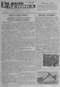 2 1 и ю н я 1 9 6 6 г о д а З А Д Е Л О Л Е Н И Н А » 3 ОБЯЗАТЕЛЬСТВА ВЫПОЛНЕНЫ Т р у ж е н и к и Б о л ь ш е - Р к овекой бр и г а д ы з а „ П а м я т ь Л е н и - в ч е с т ь выб оров в " в е р х о в н ы й С о в е т СС СР б ра ли о б я з а т е л ь с т в о — орг а н и з о в а н н о п р о в е с т и в е с е нн ий с е в — с е в перв ой в е с н ы новой п я т и л е т к и . Об еща н ие в ы п о л н е н о с ч е с т ь ю . Н а в е с е н н е й с е в е о т л и ч но т р у д и л и с ь т р а к т о р и с т ы Дорофе й Л у ш о в , М и х а и л Б а й д а г у л о в , С е р г е й Б у х т и я р о в , Ефим Л у - n g f b n д р у г и е . На их ма- ш Ж ] ярко г о р е л и ф л а ж ки п е р е до в и к о в с е в а . По д в о дя и т о г и с е в а , п р а в л е ние к о л х о з а премировало и х д е н ь г а м и . Д о б р о с о в е с т н о на п о л е в ы х р а б о т а х т р у д и л и с ь и в с е к о л х о з н и к и , к о т орые о б с л у ж и в а л и т р а к т о р н ы е а г р е г а т ы . 11 июн я , н а к а н у н е в ы боров, в ч е с т ь л у ч ш и х т р у ж е н и к о в в к л у б е с о с т о я л с я к о нц е р т х у д о ж е с т в е н н о й с а м о д е я т е л ь н о с т и силами у ч и т е л е й и д оя р ок . На до о т м е т и т ь , ч т о н аши д о я р к и н е т о л ь ко у м е ю т х о р ошо т р у д и т ь с я , но и пе т ь с д у шой, п л я с а т ь с з адором. Особо о т л и ч и л с я у ч ё т ч и к фермы 6 3 - л е т н ий Ф . С. Н у л и к о в . Е г о п л я с к и з а - КАК УНИЧТОЖИТЬ СОРНЯКИ с л у ж и л и с а мы е г о р я ч и е а п л о д и с м е н т ы к о л х о з н и ков . А н а з а в т р а к о л х о з н и к и , м е х а н и з а т о р ы и и н т е л л и г е н ц и я с е л а д р у ж н о и о р г а н и з о в а н н о пришли н а и з б и р а т е л ь н ый у ч а с т о к , чтобы о т д а т ь с в о и г о л о с а з а к а н д и д а т о в в д е п у т а т ы В е р х о в н о г о С о в е т а н а ше й с т р а н ы . Первыми про г о ло с о в а ли А. Е . Г у - б а й д у л и н , А . Т . К у л и к о в . Зат ем о п у с т и л в у р н у б юл ле т е н и Миша Х а б и - ров . Он г о л о с о в а л п е р в ый р а з в с в о е й ж и з н и . Миша х о р ош о т р у д и т с я в к о л х о з е . Х о ч е т с я п о ж е л а т ь е м у д а л ь н е й ш и х у с п е х ов , В п р е д в ы б о р н у ю к а м п а нию у н а с х о р ошо работали мн о г и е а г и т а т о р ы . Но особо в и н т е р е с н о й форме а г и т а ц и о н н у ю р а б о т у в е л а В . В . К у л и к о ва. О н а б у д е т р а б о т а т ь на д е с я т и д в о р к е и в д а л ь н ейшем, р а з ъ я с н я т ь н а с е л е н и ю р е ш е н и я X X I I I с ъ е з д а К П С С . А у ч и т е л ь н и ц а - к о м с о м о л к а В . А . Е ф а н о в а о ч е н ь х о р ош о н а г л я д н о оформил а изби р а т е л ь н ый у ч а с т о к . С е й ч а с м е х а н и з а т о р ы и к о л х о з н и к и з а к а н ч и в а ют п о д г о т о в к у к с е н о к о с у . Ф . И в а н о в а . МЕХАНИЗИРУЮТ СКИРДОВАНИЕ СЕНА (По т е л е ф о н у ) . В к о л х о з е им. М. Г о р ь к о г о е с т ь х о р оши й п р ош л о г о д н и й о пыт м е х а н и з ир о - * в а н н о г о с к и р д о в а н и я с е н а . В м и н у в ше м г о д у з д е с ь о дн о з ве но з а г о т о в и л о о к ол о 7 т ы с я ч ц е н т н е р о в с е н а . У ч и т ы в а я опыт п р о ш л о г о г о д а , п р а в л е н и е к о л х о з а ре шил о с о з д а т ь т а кие з в е н ь я во в с е х бриг а д а х . С этой ц е л ь ю п о д г о т а в л и в а е т с я три с т о г о - мёта и ш е с т ь в о л о к у ш — по д в е н а к а ж д ы й с т о г о - мёт. З а к а н ч и в а е т с я з д е с ь и ремонт с е н о к о с и л о к и г р а б л е й . П р и эт ом к о с и л о к н ы н ч е б у д е т п ущ е н о в х о д почти в д в а р а з а б о л ь ше , ч е м в прошлом г о д у . Д е л о идет в комплексе Н а с т а л о л е т о . З а з е л е н е л и в с х о д ы х л е б о в . Б у й н о р а с т у т и с о р н я к и . О н и — с и л ь н ы е к о н к у р е н т ы к у л ь т у р н ы х р а с т е н и й . В р е з у л ь т а т е д л и т е л 